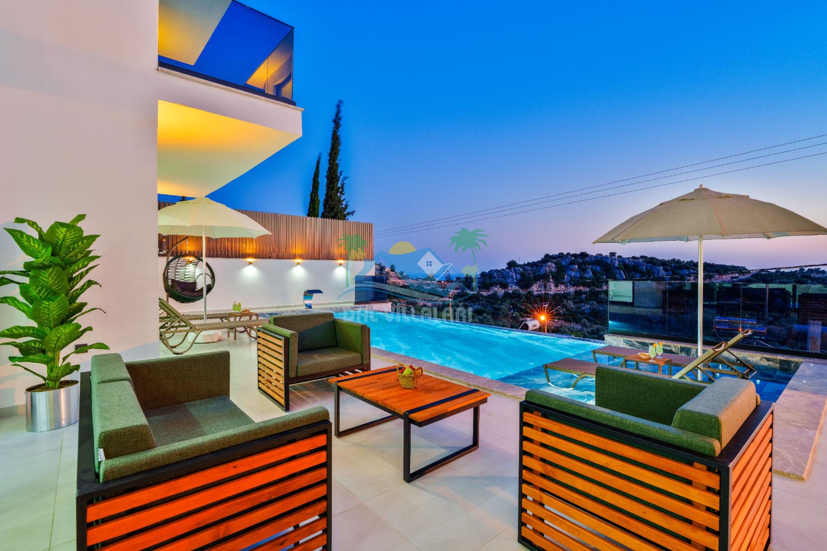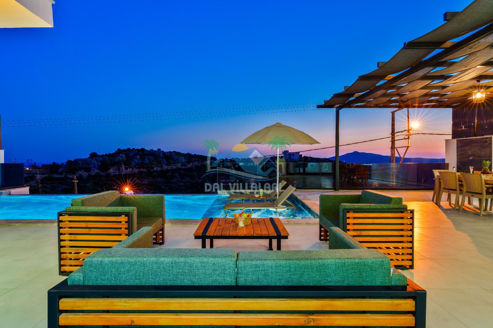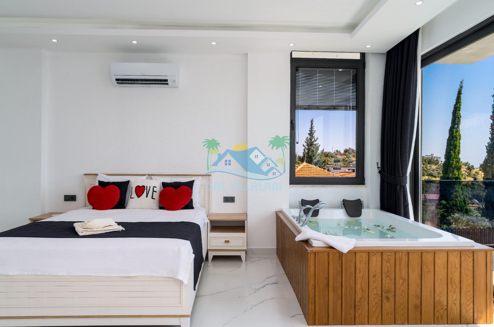 Kalkan Bezirgan’da 9 Kişilik Jakuzili Kiralık Villa