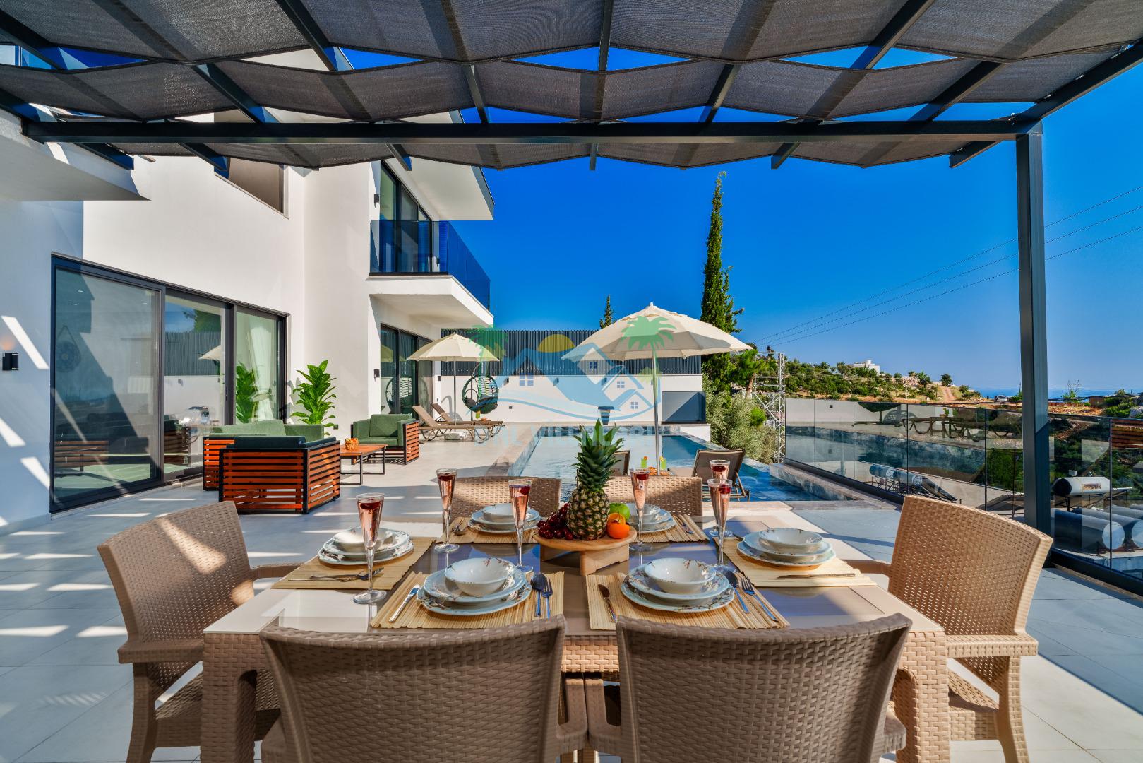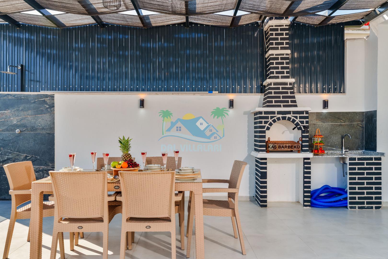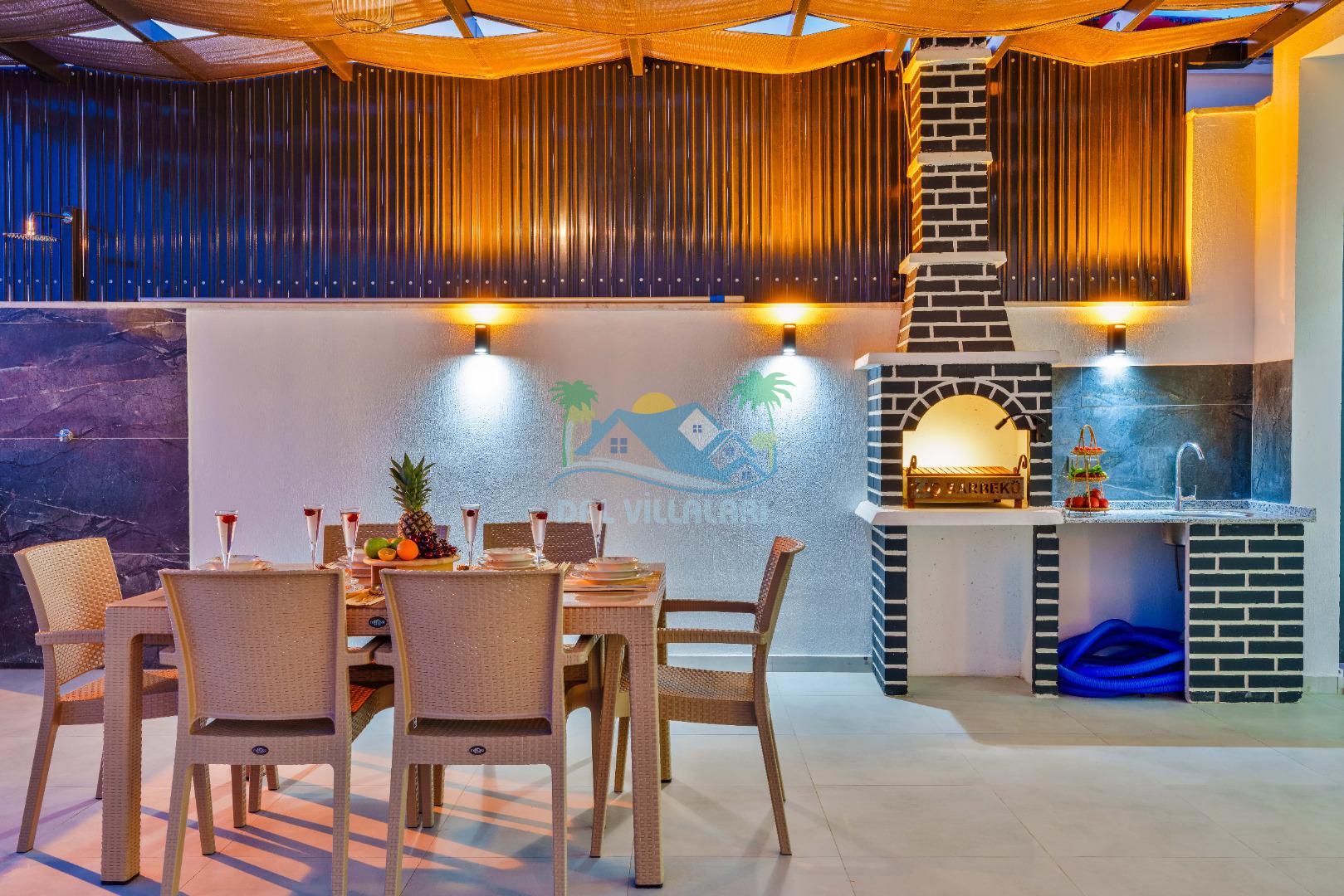 Villa dış alanında ise misafirlerin keyifli vakit geçirebileceği birçok detay düşünülmüştür. Özel yüzme havuzu, oturma alanı, barbekü ve yemek masası sayesinde açık havada ailenizle birlikte unutulmaz anlar yaşayabilirsiniz. Günün yorgunluğunu havuz başında dinlenerek atabilir, akşam saatlerinde barbekü eşliğinde sevdiklerinizle hoş sofralar kurabilirsiniz.