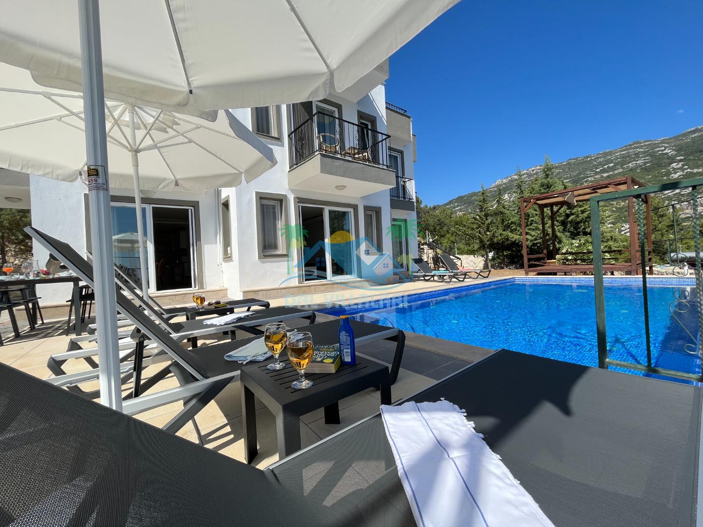 Villa Birey'in etkileyici yapılarından biri, muhteşem Kalkan deniz bağlantısına sahip olan bir sunumdur. Bu büyüleyici manzara eşliğinde günlerin kaybının arttığı, huzurlu anlar yaşayabilirsiniz. Villanın özel havuzu ise serinlemek ve keyifli vakit geçirmek için mükemmel bir seçenektir. Havuzun başındaki odalar ve oturma alanları, geniş bir şekilde yararlanabileceğiniz rahat bir ortam sunar.