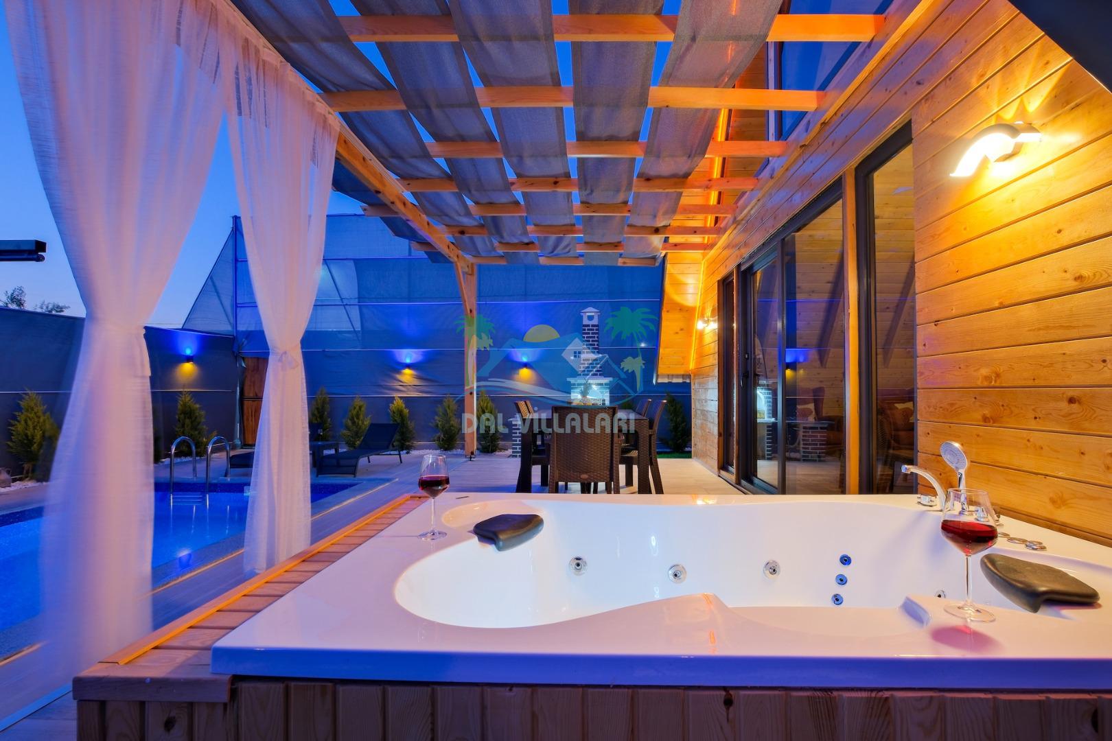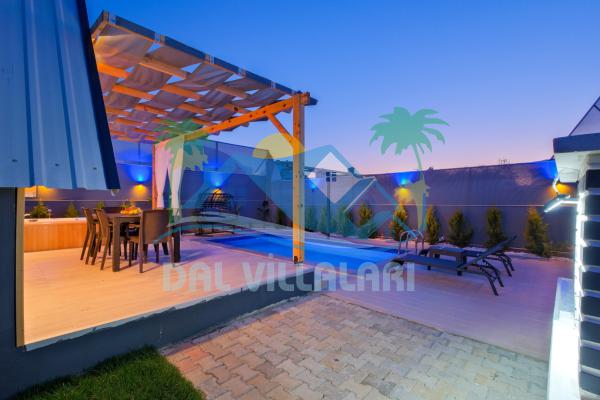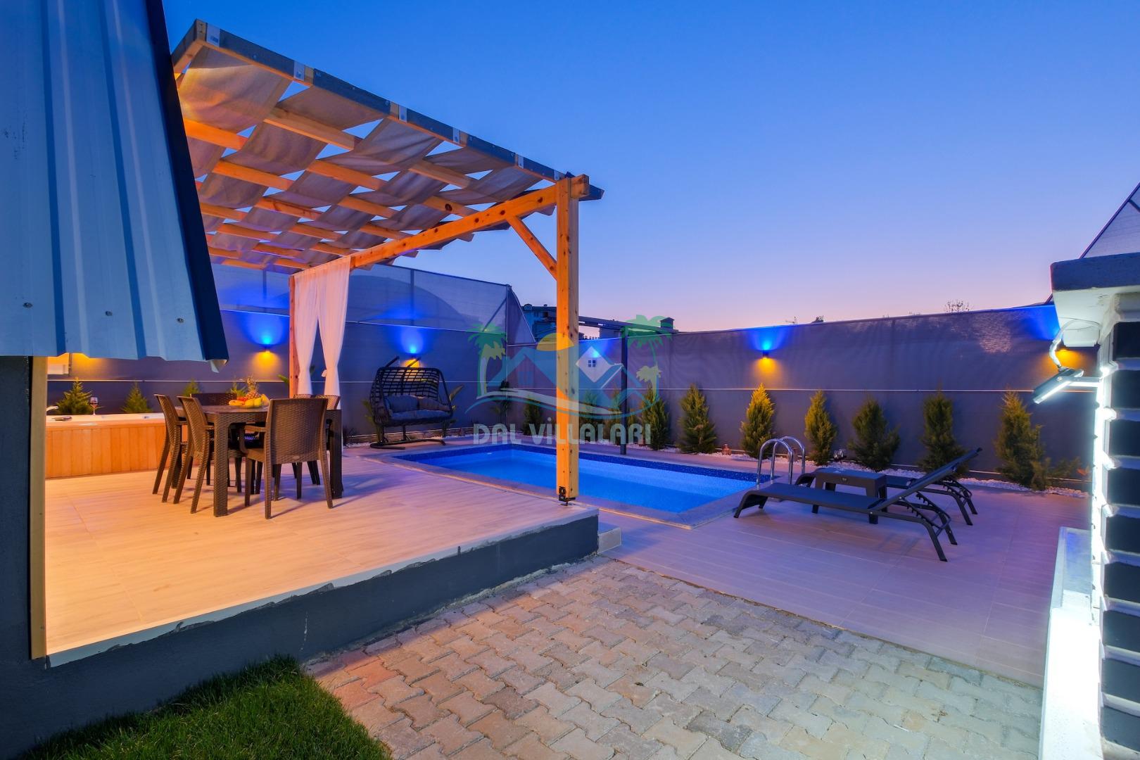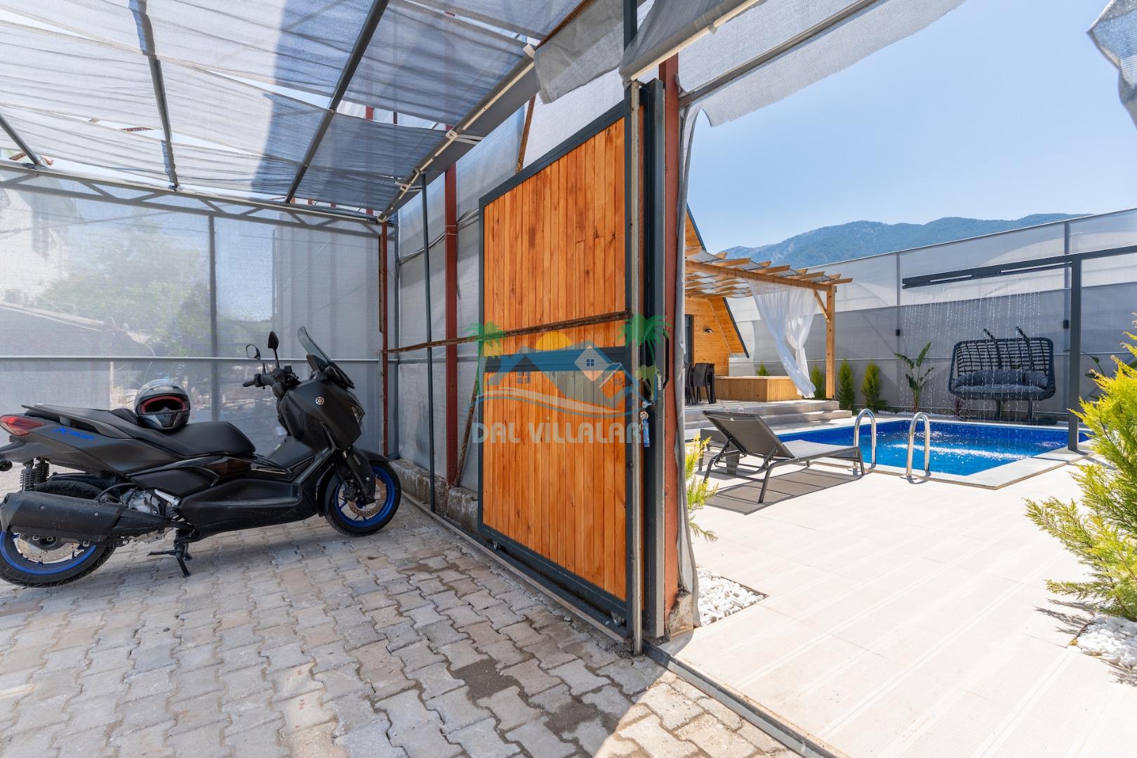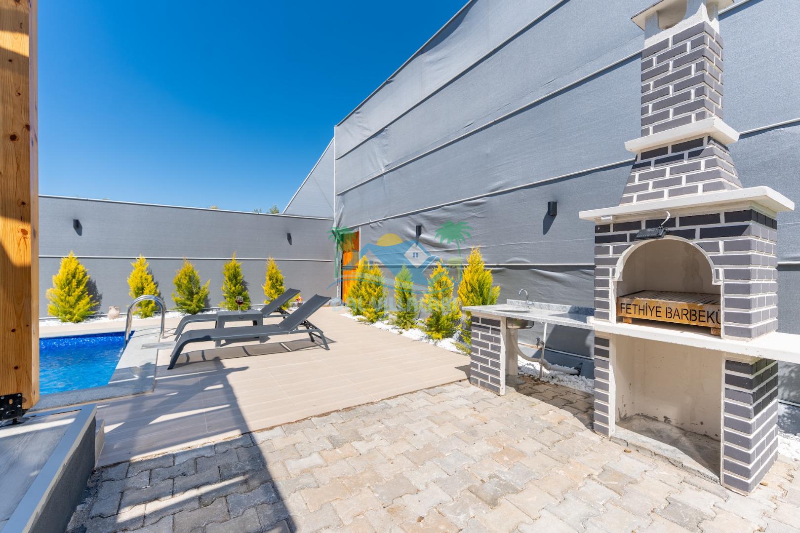 Fethiye'nin muhteşem doğasında şehir kargaşasından uzak bir tatil geçirmenizi sağlayacak olan villamızın havuz ve bahçe kısmında kapasiteye uygun oturma grubu, şezlong takımı, barbekü alanı; havuz terasına açılan, her ayrıntısı özenle tasarlanmış ferah bir oturma odası ve tam donanımlı açık mutfağı bulunmaktadır.