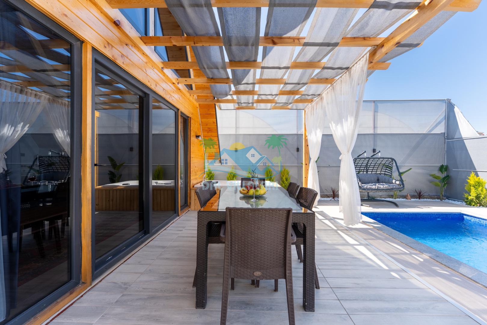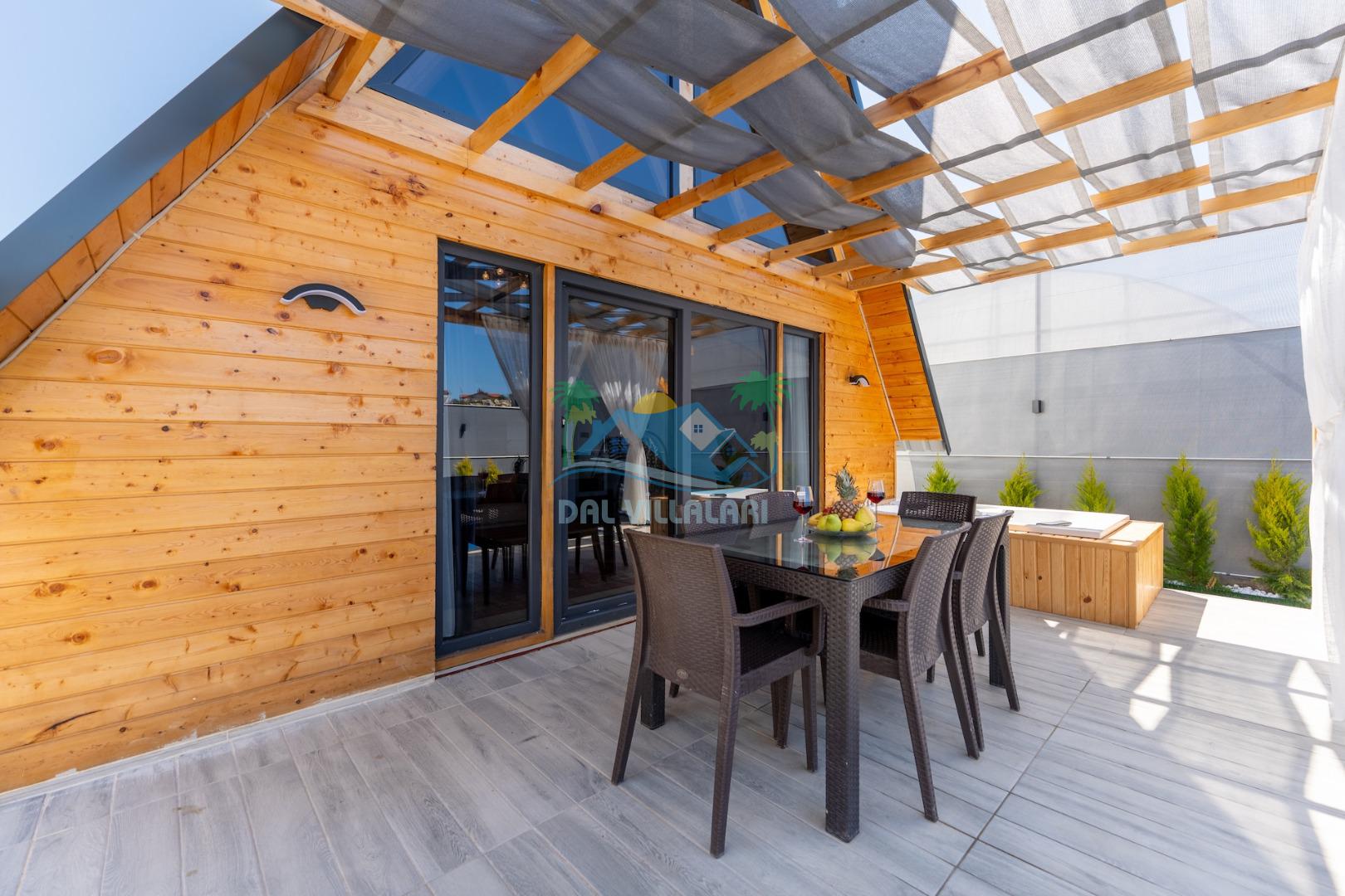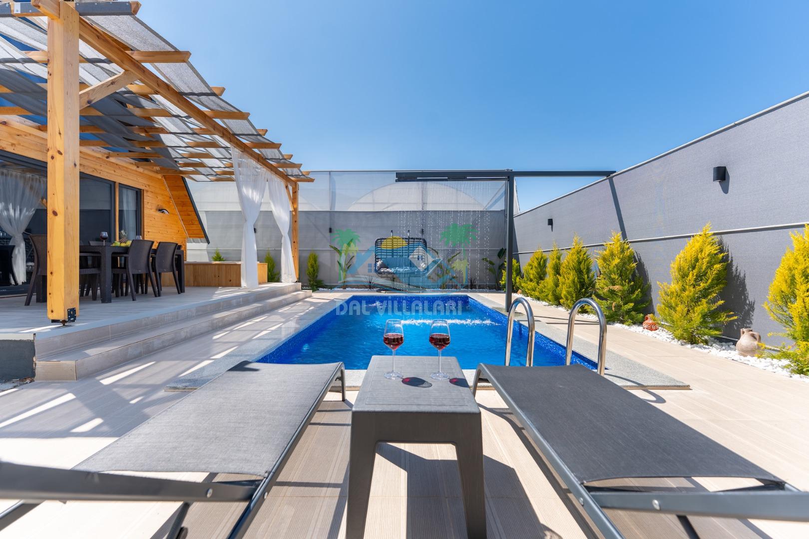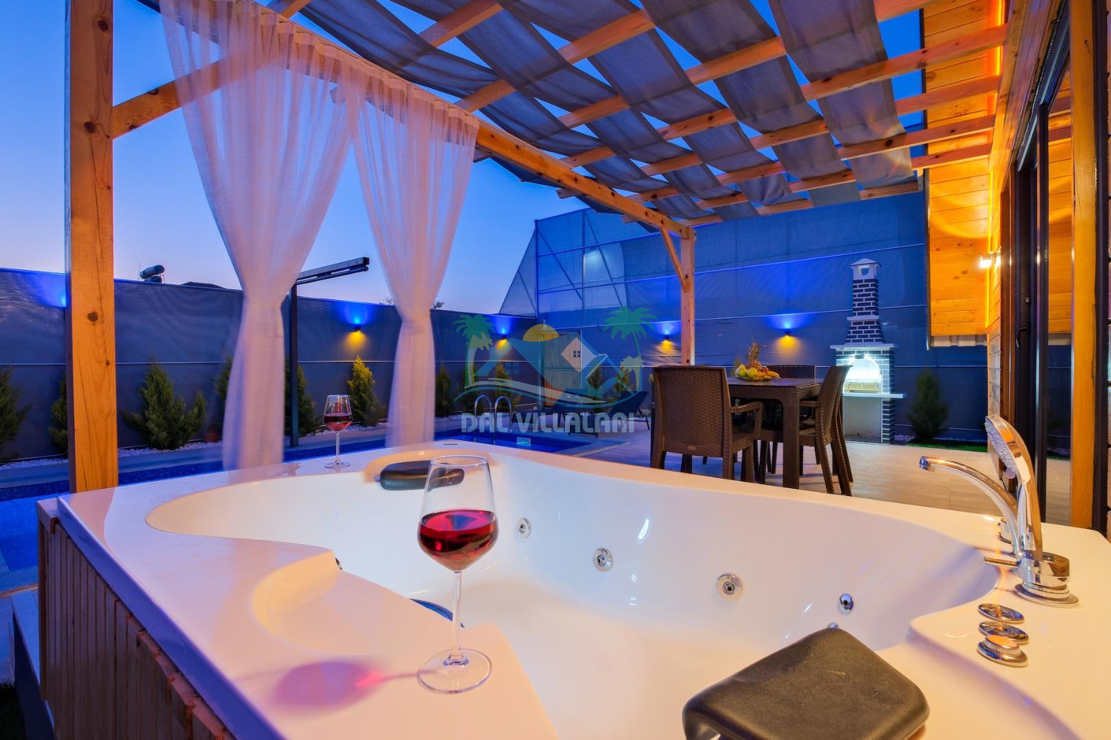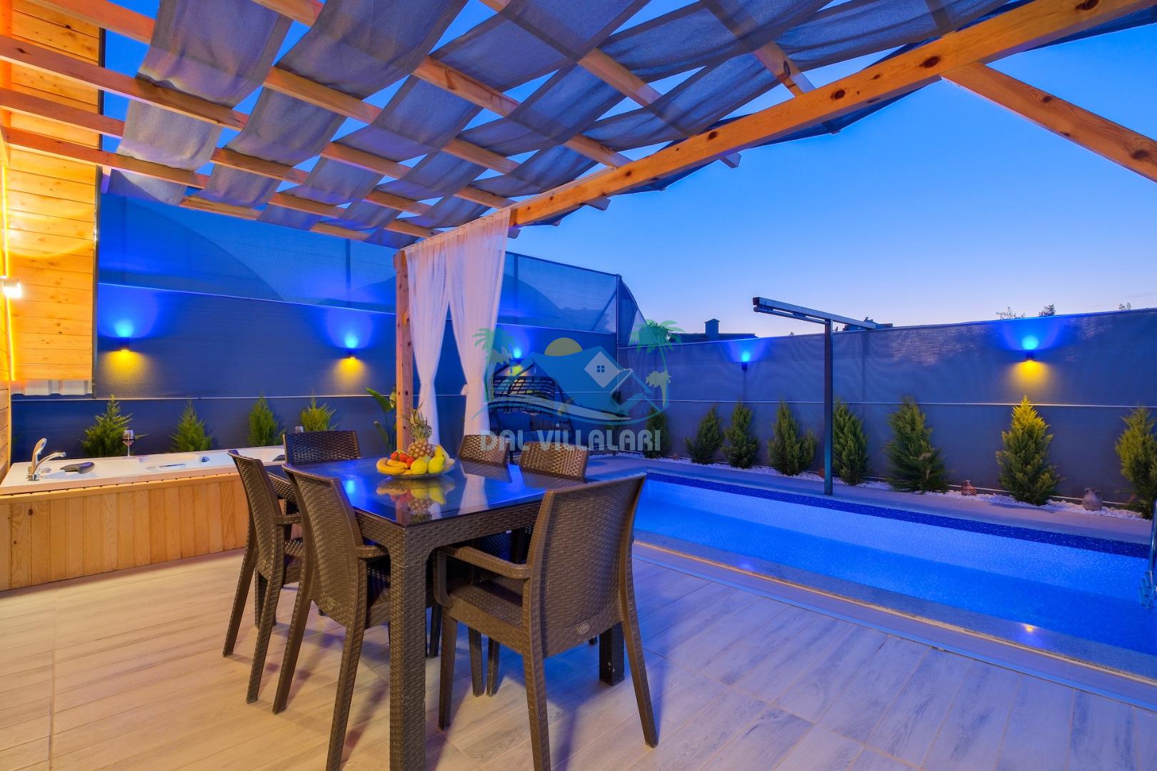Fethiye'nin muhteşem doğasında şehir kargaşasından uzak bir tatil geçirmenizi sağlayacak olan villamızın havuz ve bahçe kısmında kapasiteye uygun oturma grubu, şezlong takımı, barbekü alanı; havuz terasına açılan, her ayrıntısı özenle tasarlanmış ferah bir oturma odası ve tam donanımlı açık mutfağı bulunmaktadır.