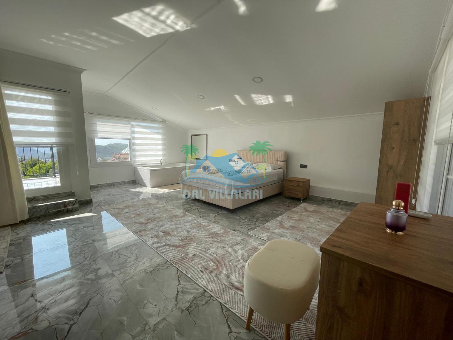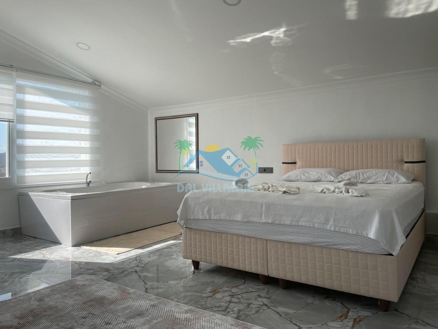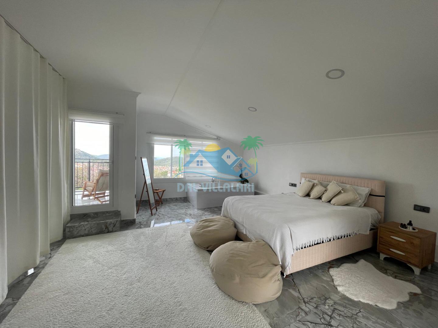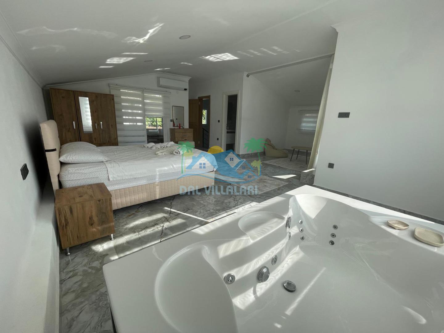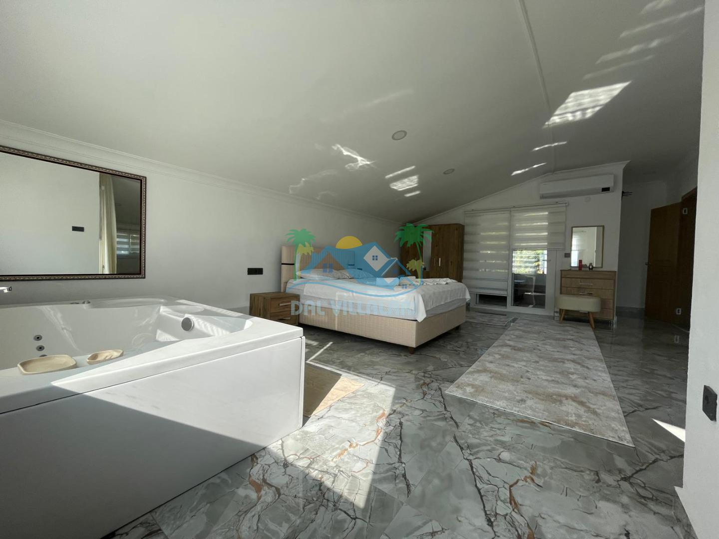 Geniş ve ferah iç mekânlarıyla dikkat çeken villamızda, modern mobilyalarla döşenmiş açık plan salon ve tam donanımlı mutfak, tatil boyunca ihtiyaç duyabileceğiniz tüm detayları sunar. Dört adet özenle hazırlanmış yatak odası ve çok sayıda banyo sayesinde kalabalık gruplar için ideal bir konaklama deneyimi yaşatır. Ana yatak odasında yer alan jakuzi, misafirlerine günün yorgunluğunu atma fırsatı sunarken, villanın özel havuzu ve güneşlenme alanı ise doğayla iç içe, dinlendirici bir atmosfer yaratır.