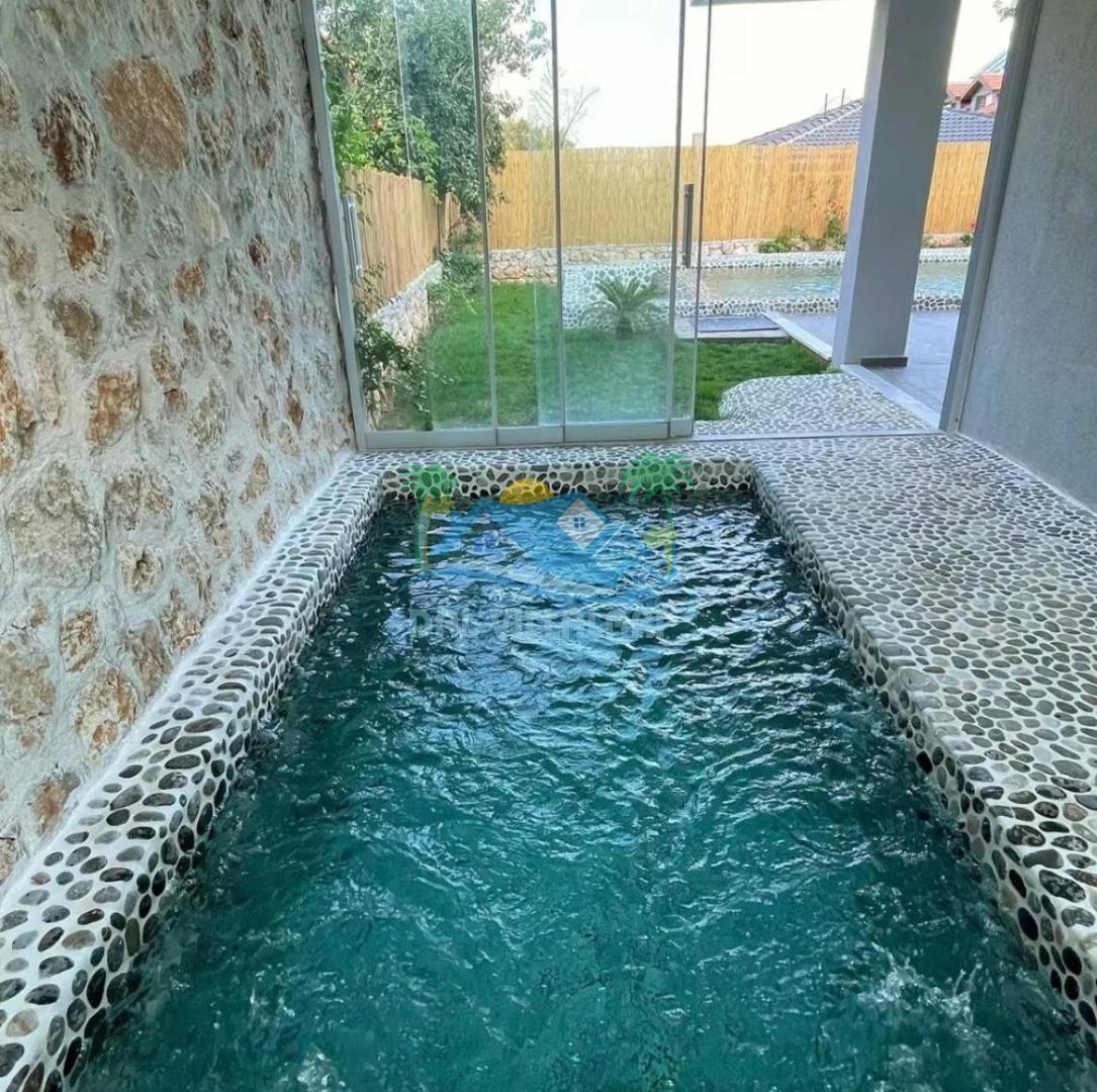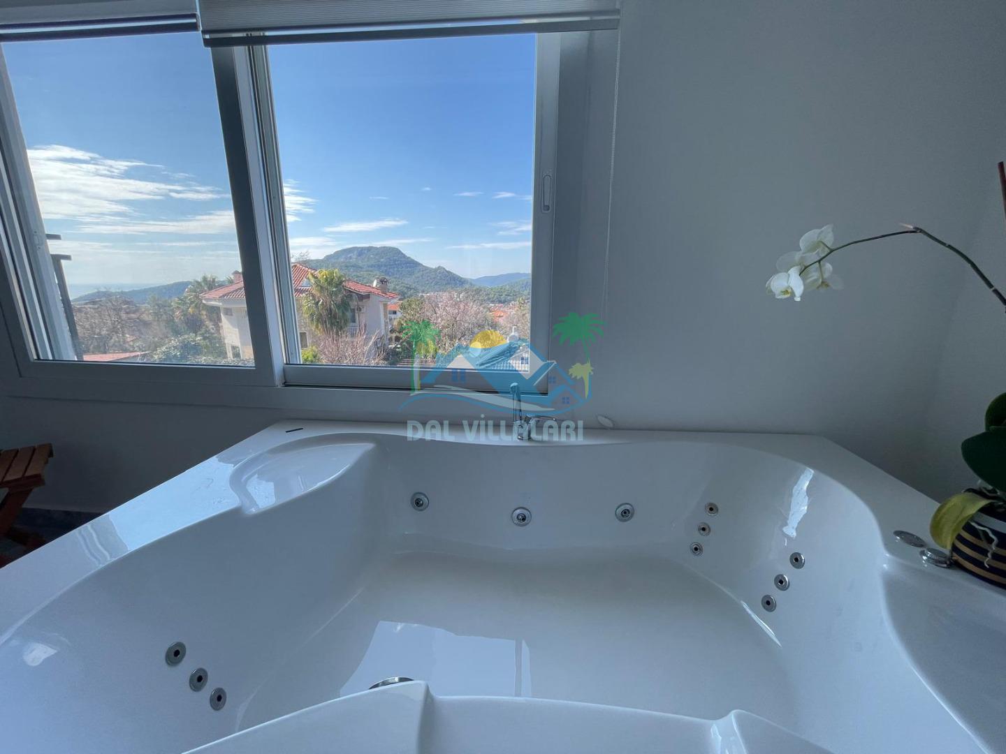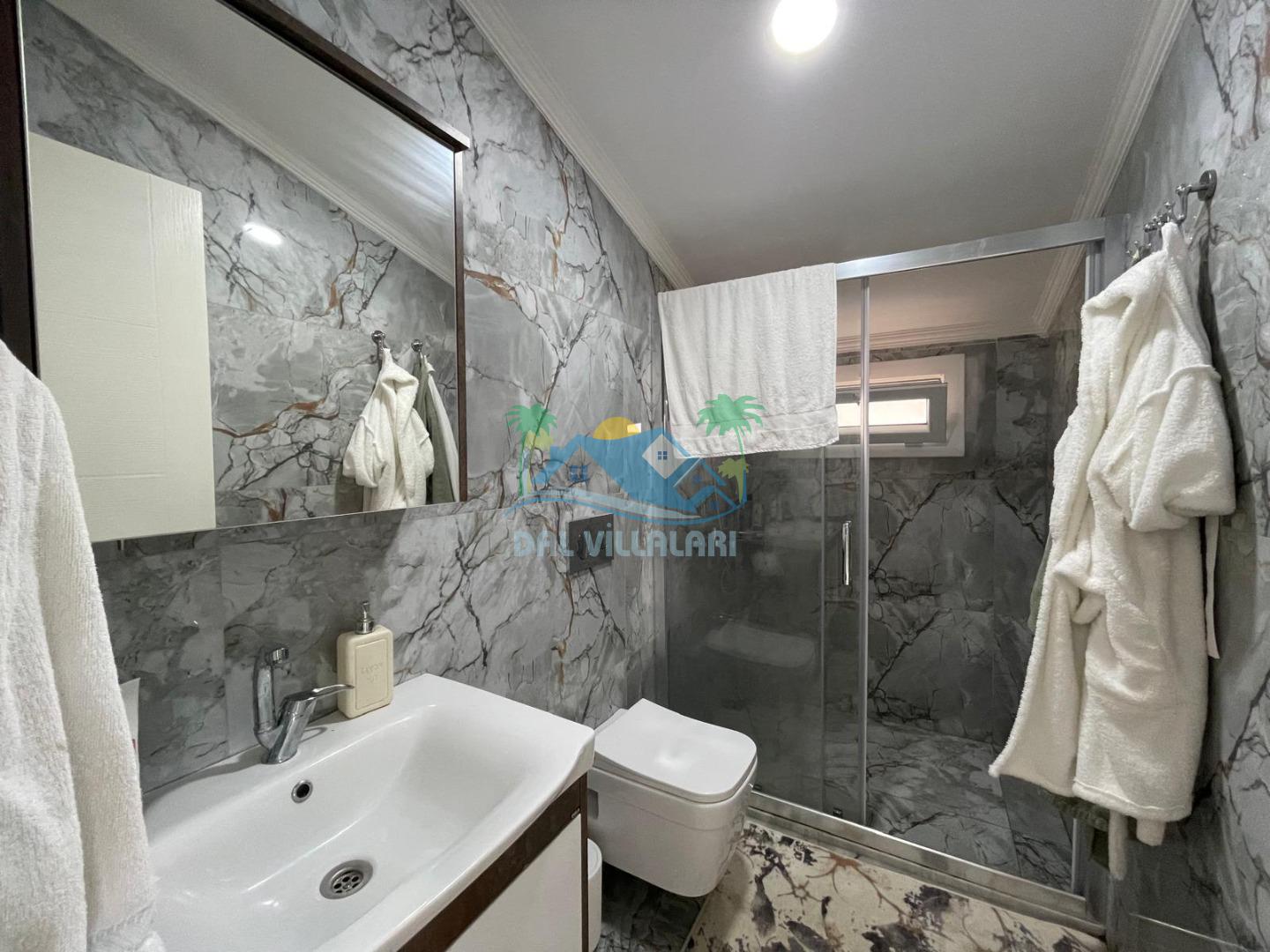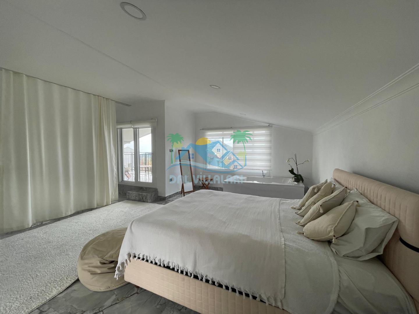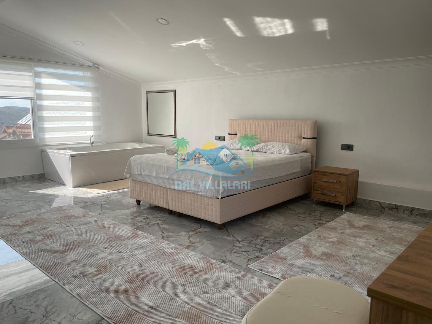 Geniş ve ferah iç mekânlarıyla dikkat çeken villamızda, modern mobilyalarla döşenmiş açık plan salon ve tam donanımlı mutfak, tatil boyunca ihtiyaç duyabileceğiniz tüm detayları sunar. Dört adet özenle hazırlanmış yatak odası ve çok sayıda banyo sayesinde kalabalık gruplar için ideal bir konaklama deneyimi yaşatır. Ana yatak odasında yer alan jakuzi, misafirlerine günün yorgunluğunu atma fırsatı sunarken, villanın özel havuzu ve güneşlenme alanı ise doğayla iç içe, dinlendirici bir atmosfer yaratır.