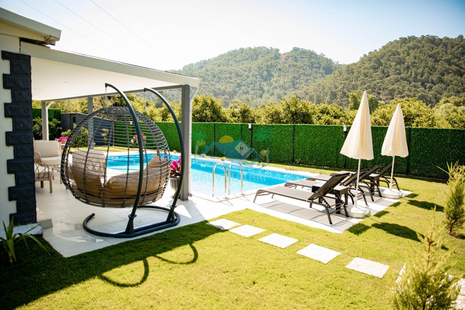 Villa Centirmen Göcek, Fethiye Göcek-İnlice Bölgesi'nde konumlanan, korunaklı özel yüzme havuzuna sahip, doğayla iç içe konumu ve geniş bahçesi sayesinde rahat ve sakin bir tatil deneyimi yaşamak isteyen balayı çiftleri ve çekirdek aileler için ideal, 4 kişi kapasiteli villalarımız arasında yer almaktadır. Yeşil bahçesinde ve verandasında bulunan barbekü, modern tarzdaki bahçe oturma grubu ve salıncak ile keyifli anlar geçirmek isteyen misafirlerimiz için son derece doğru bir tercih olacaktır.