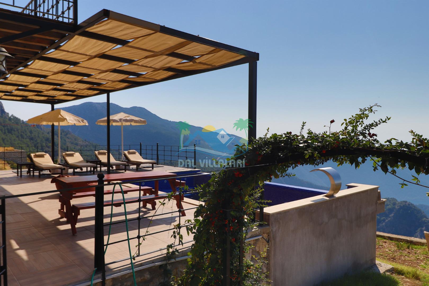 Yaklaşık olarak 700m rakımda bulunmaktadır. Sessiz sakin ve huzurlu bir tatil geçirmek isteyen misafirler için ideal bir seçimdir. Villamız en yakın merkez ve plaj olan Ölüdeniz'e 25 km mesafede olup ulaşım yolunun tamamı asfalt yoldur.