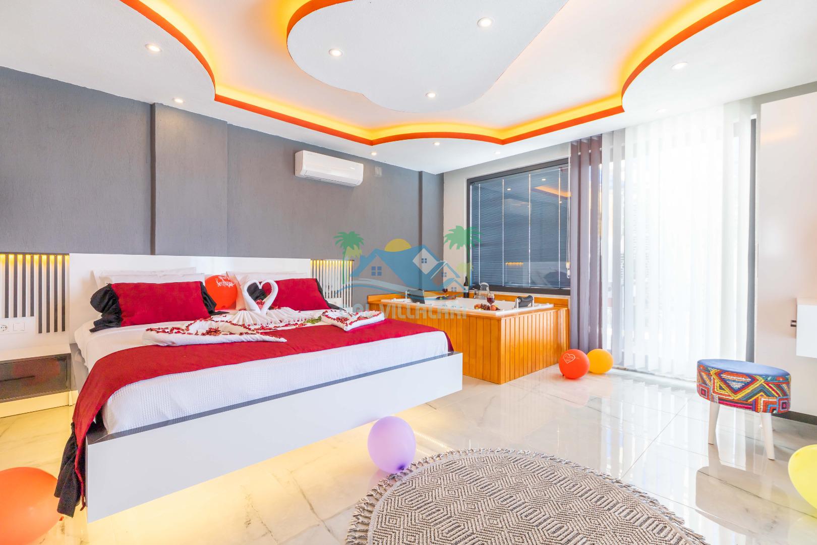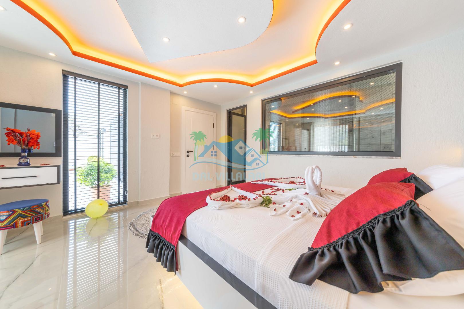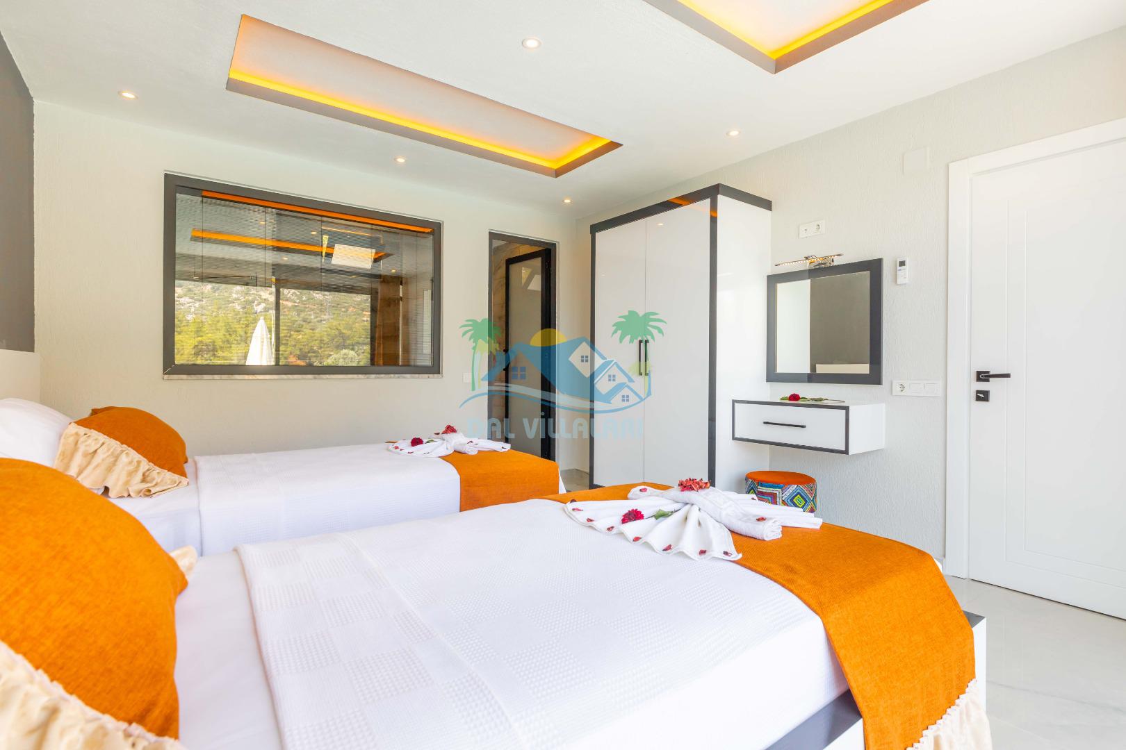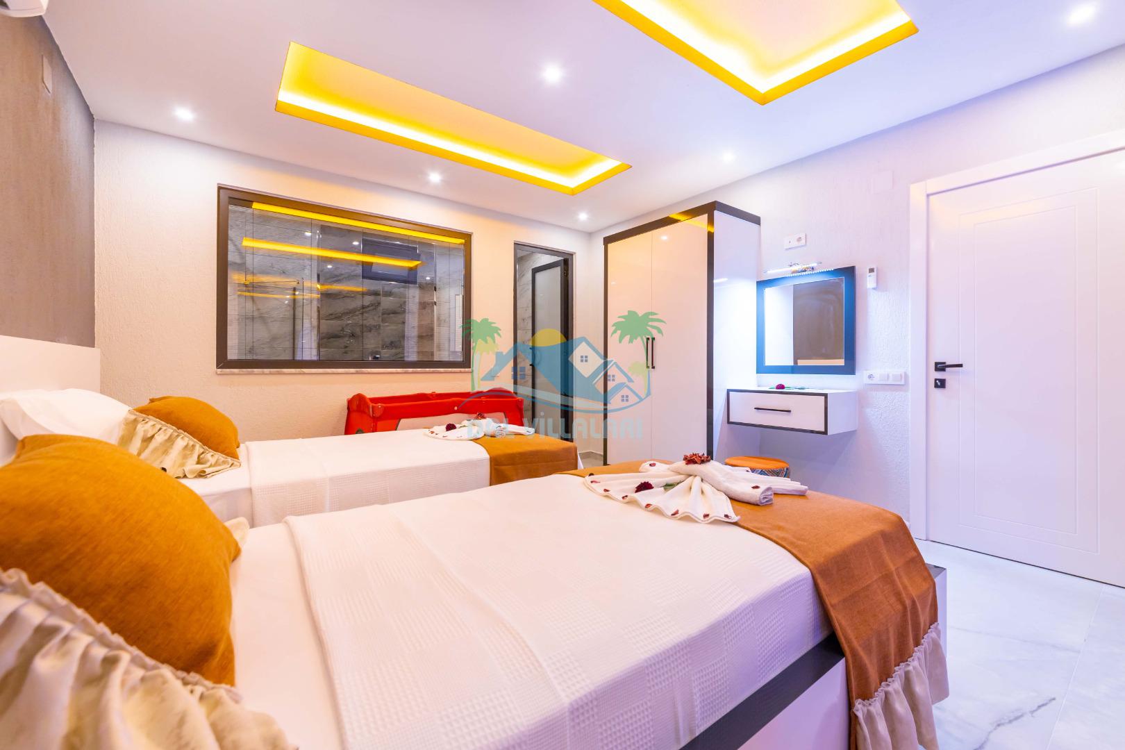 Toplam 4 kişilik konaklama kapasitesine sahip olan villada 2 yatak odası bulunmaktadır. Ebeveyn yatak odasında çift kişilik yatak ve jakuzi yer almakta olup özel banyosu mevcuttur. Diğer yatak odasında ise iki adet tek kişilik yatak bulunmaktadır ve bu odanın da kendine ait banyo ve WC alanı vardır.
