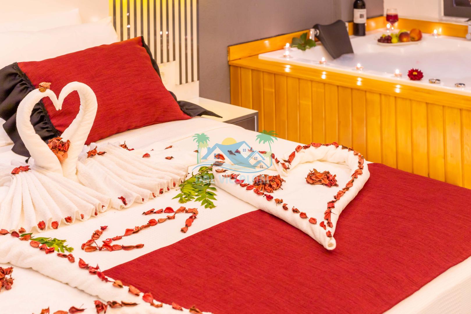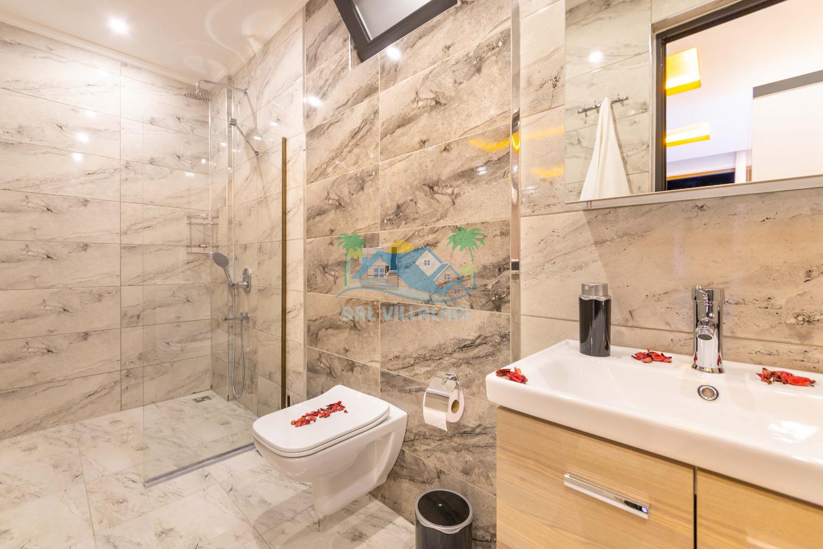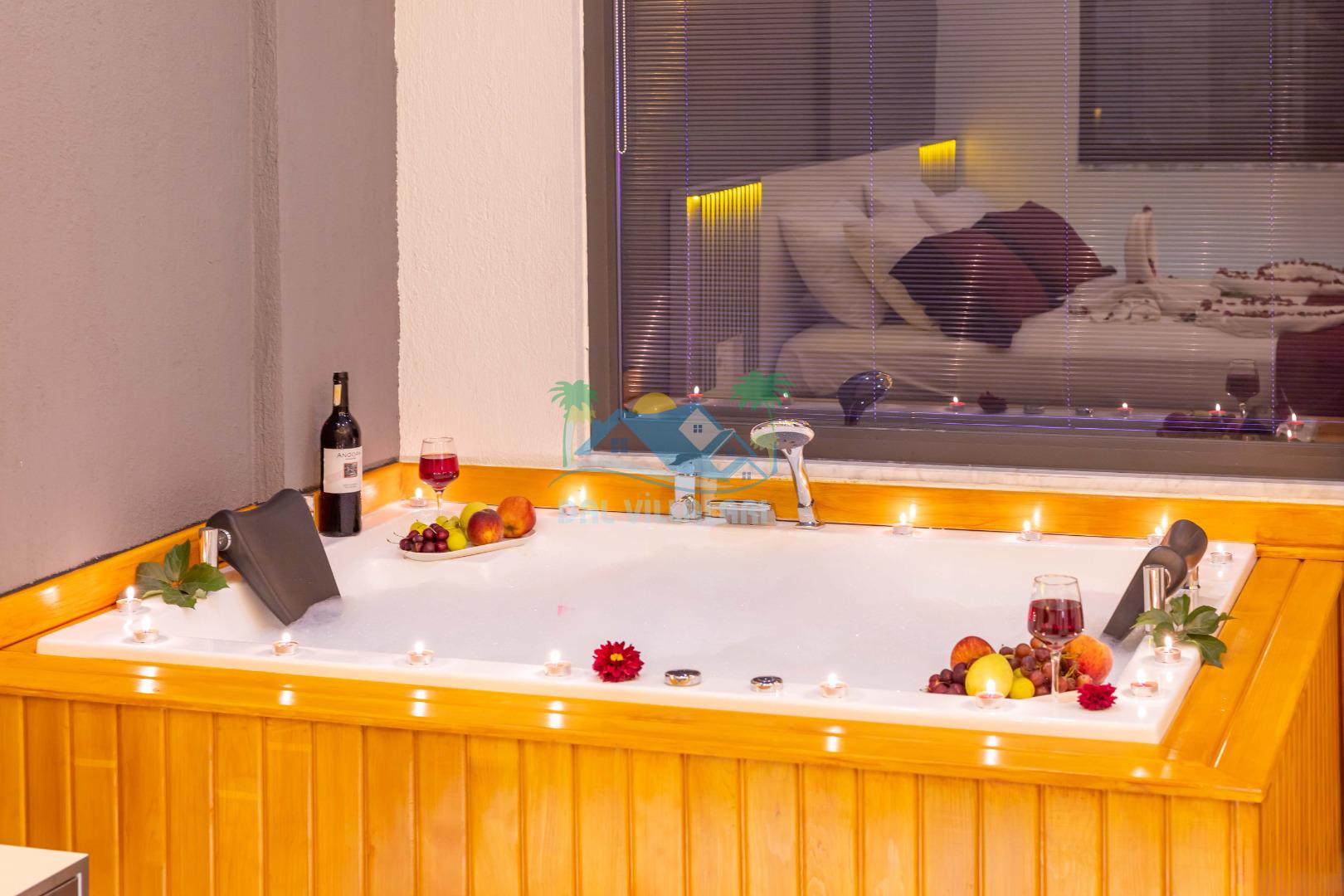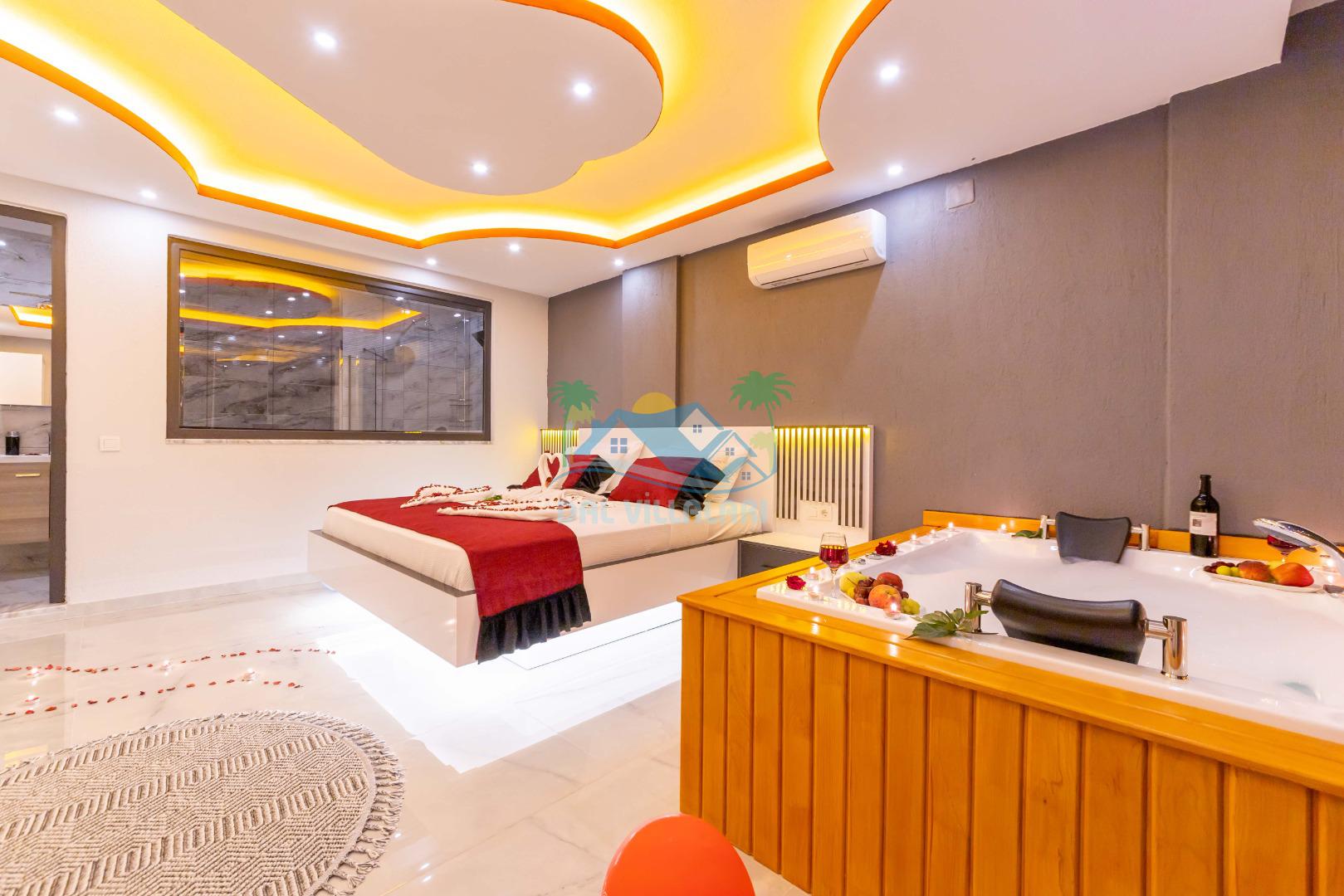 Toplam 4 kişilik konaklama kapasitesine sahip olan villada 2 yatak odası bulunmaktadır. Ebeveyn yatak odasında çift kişilik yatak ve jakuzi yer almakta olup özel banyosu mevcuttur. Diğer yatak odasında ise iki adet tek kişilik yatak bulunmaktadır ve bu odanın da kendine ait banyo ve WC alanı vardır.