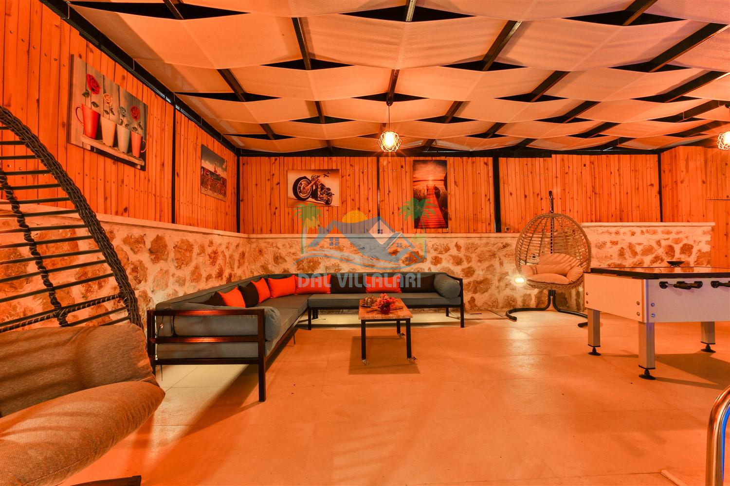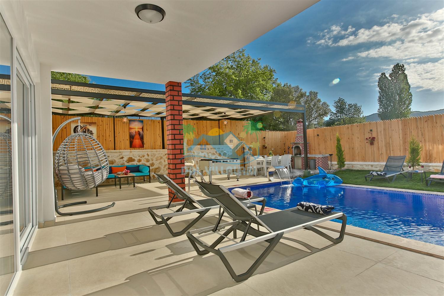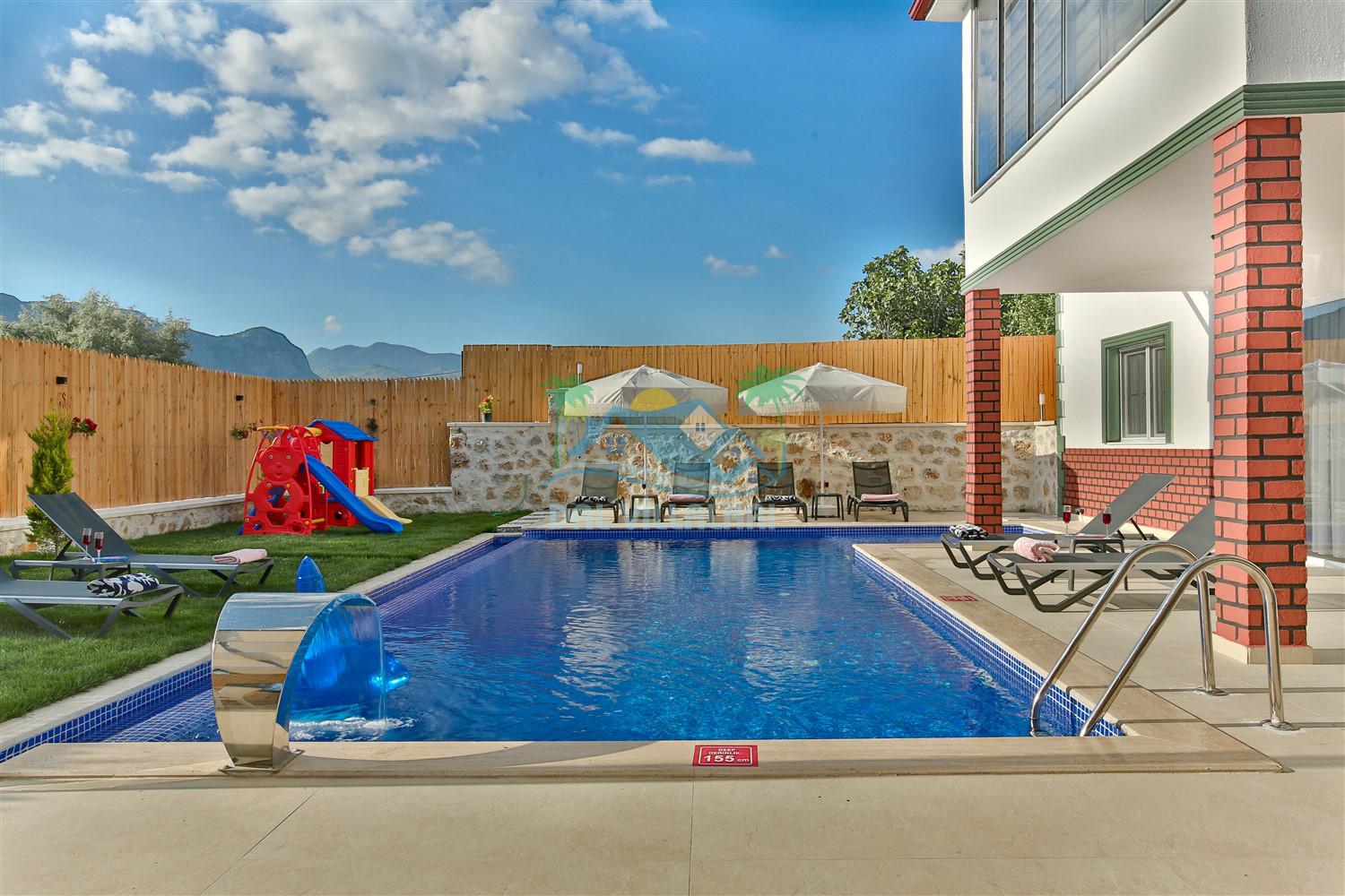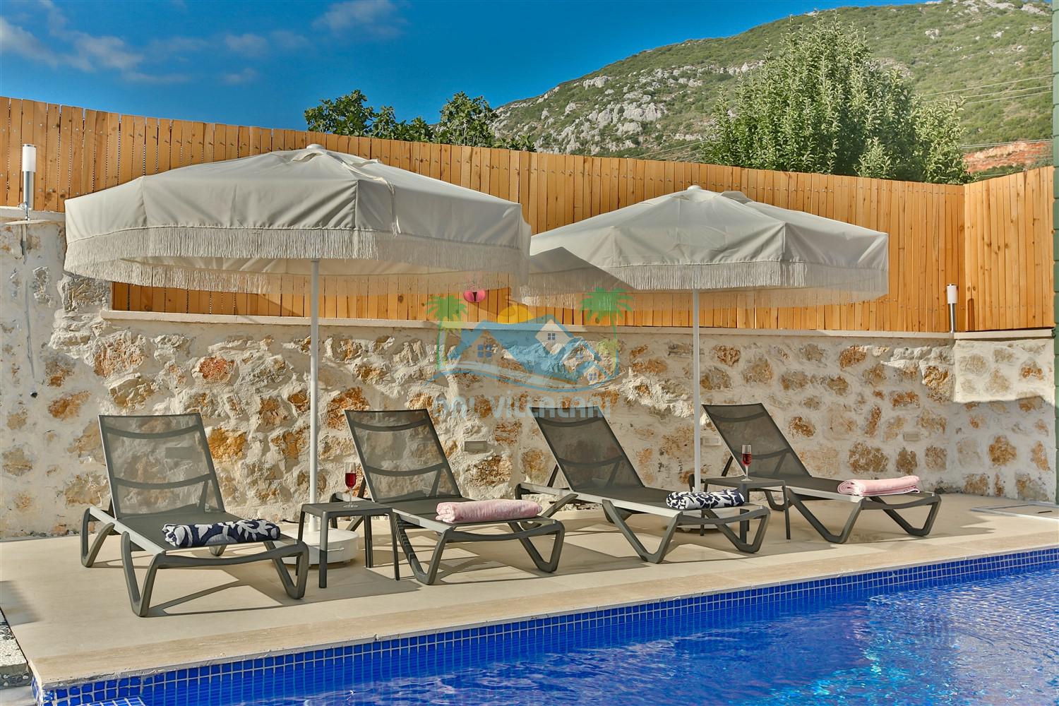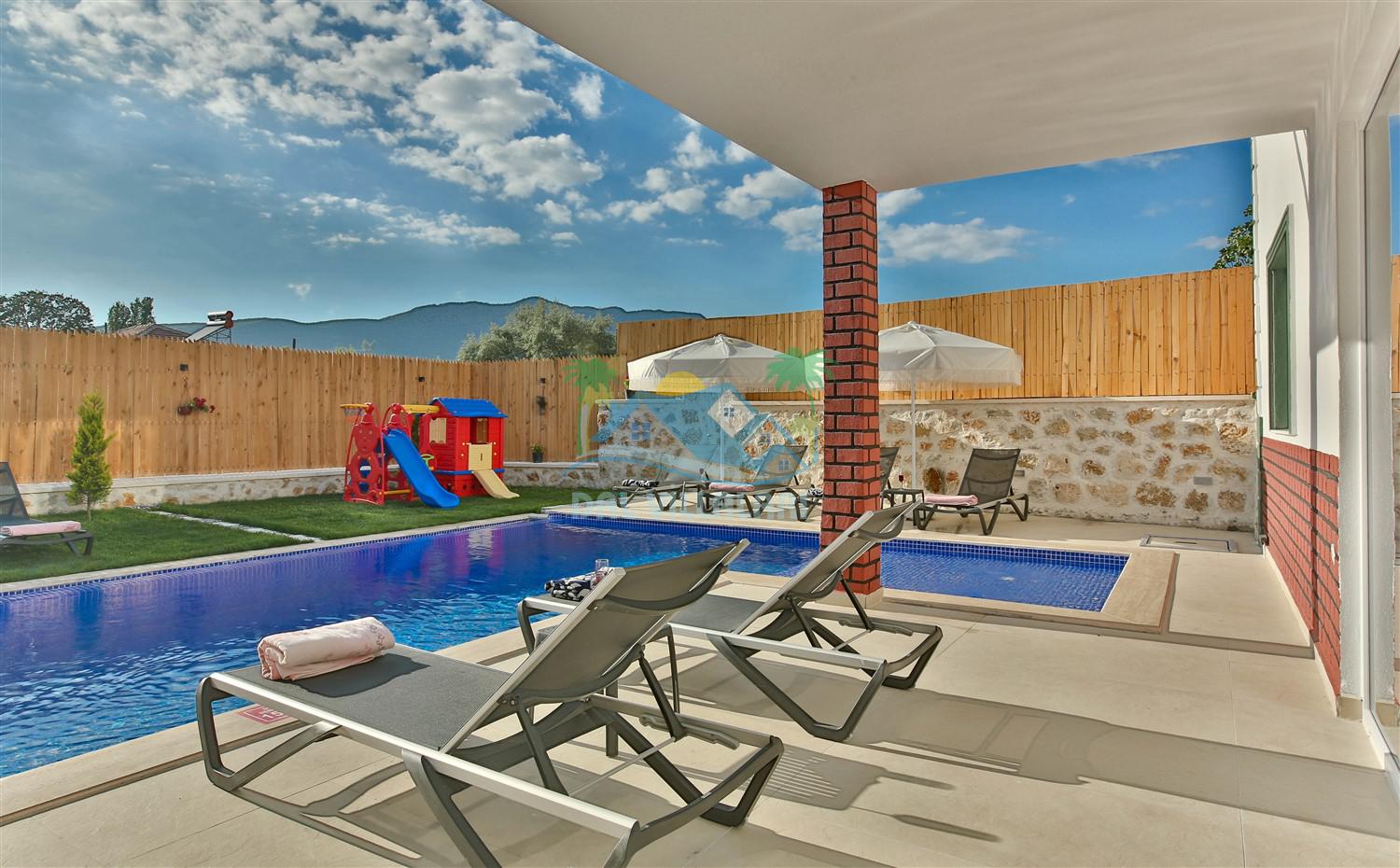 Kalkan Bezirgan köyünde bulunan kiralık balayı villası, doğa içinde, sesszi sakin bir konumda tatil isteyen ailelerimiz için oldukça uygun bir seçenektir. Muhafazakar villalar ve sinema salonlu villalar kategorisinde yer alan villamız, 4 yatak odası ile 8 kişilik konaklama kapasitesine sahiptir. Havuzu korunaklı ve bahçesi dışarıdan görünmeyen Villa Dağhan, mahremiyete önem veren ailelerimiz ve arkadaş grupları için huzur dolu bir tatil fırsatı sunuyor. Ayrıca havuz terasından yemyeşil bir bahçesi, masa tenisi, basketbol sahası, çocuklar için çocuk havuzu ve oyun parkı bulunan villamızda oldukça eğlenceli bir tatil geçirebilirsiniz.