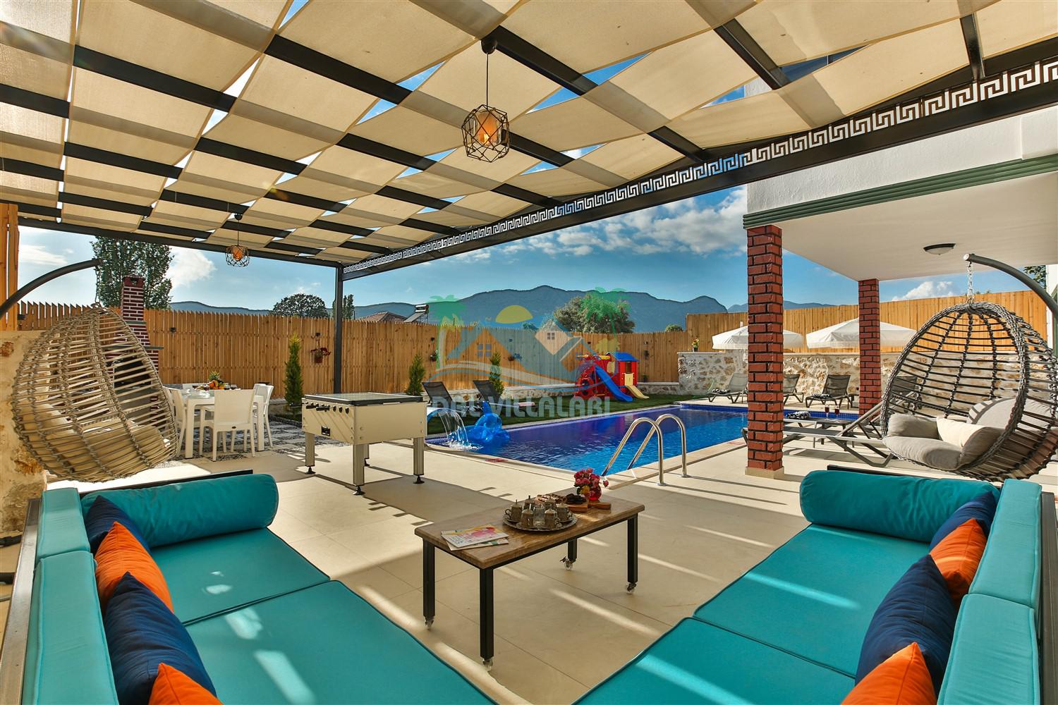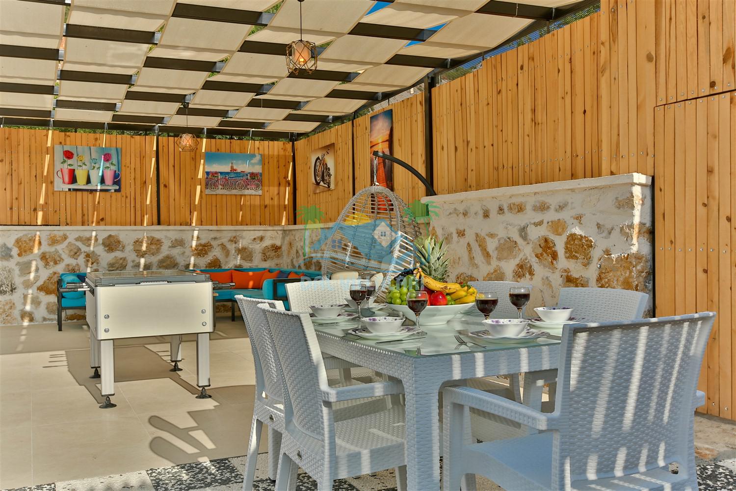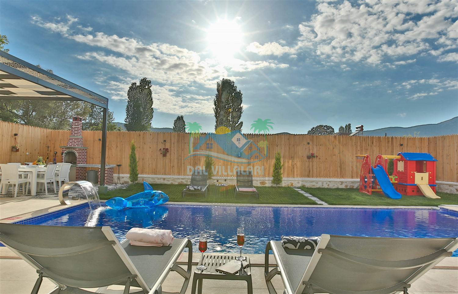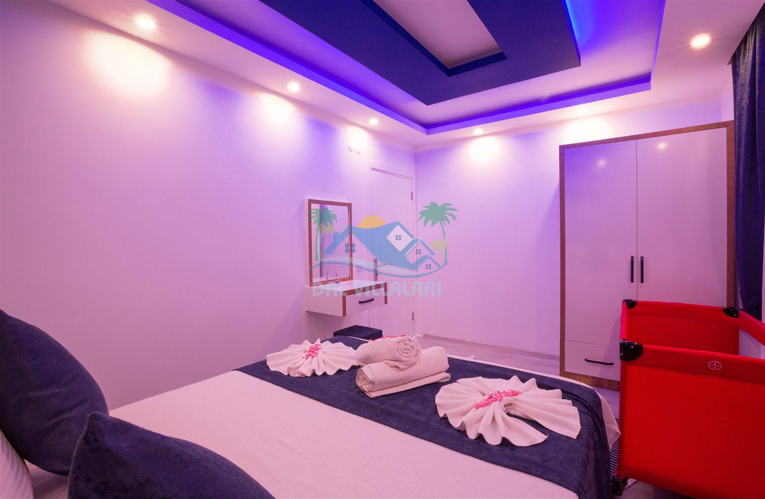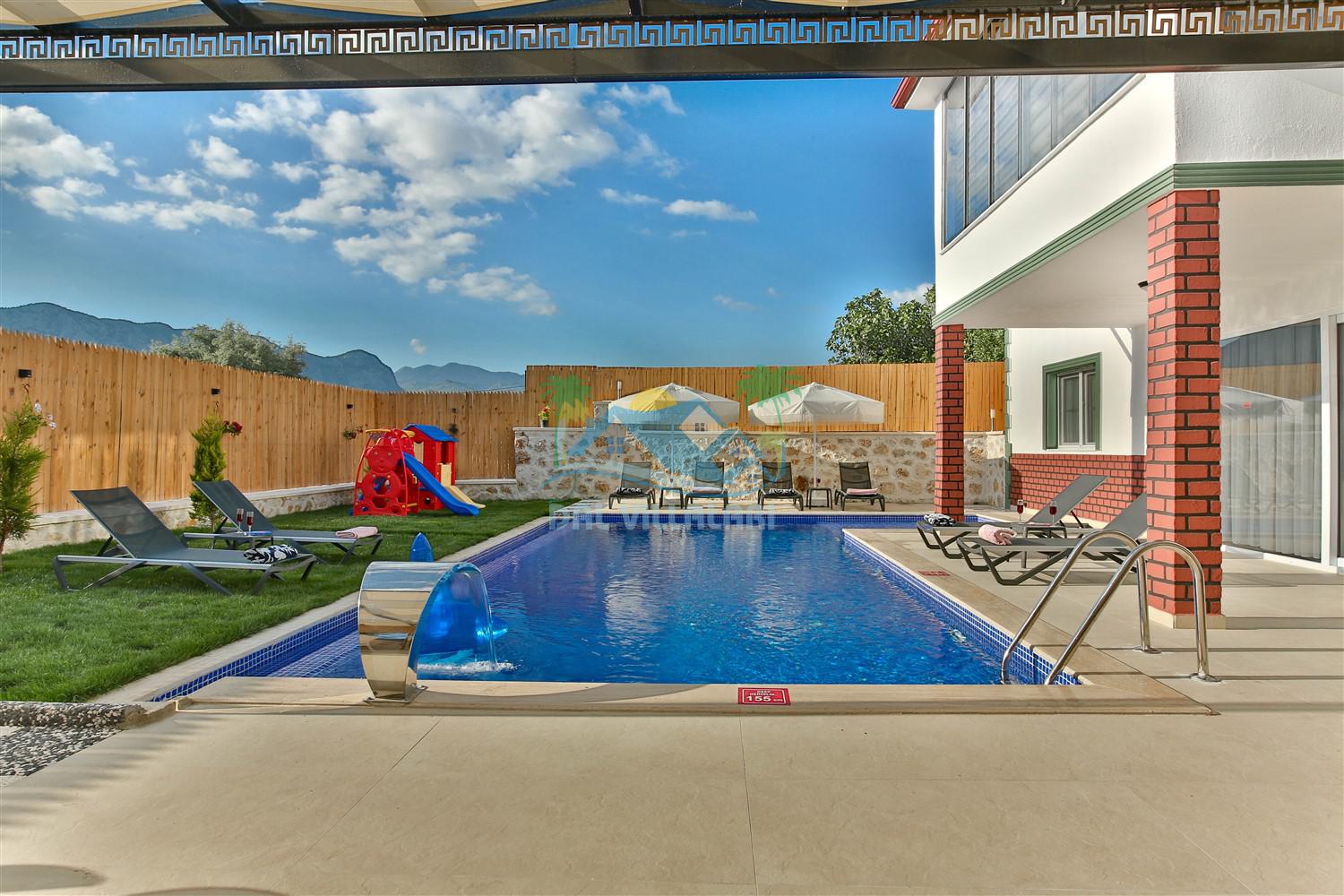 Kalkan Bezirgan köyünde bulunan kiralık balayı villası, doğa içinde, sesszi sakin bir konumda tatil isteyen ailelerimiz için oldukça uygun bir seçenektir. Muhafazakar villalar ve sinema salonlu villalar kategorisinde yer alan villamız, 4 yatak odası ile 8 kişilik konaklama kapasitesine sahiptir. Havuzu korunaklı ve bahçesi dışarıdan görünmeyen Villa Dağhan, mahremiyete önem veren ailelerimiz ve arkadaş grupları için huzur dolu bir tatil fırsatı sunuyor. Ayrıca havuz terasından yemyeşil bir bahçesi, masa tenisi, basketbol sahası, çocuklar için çocuk havuzu ve oyun parkı bulunan villamızda oldukça eğlenceli bir tatil geçirebilirsiniz.