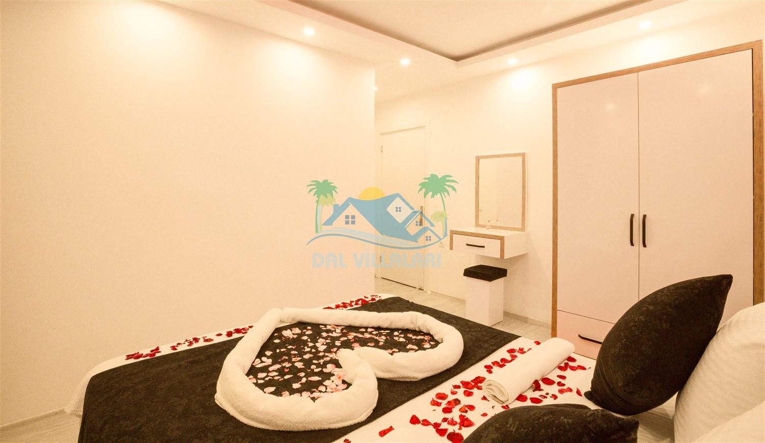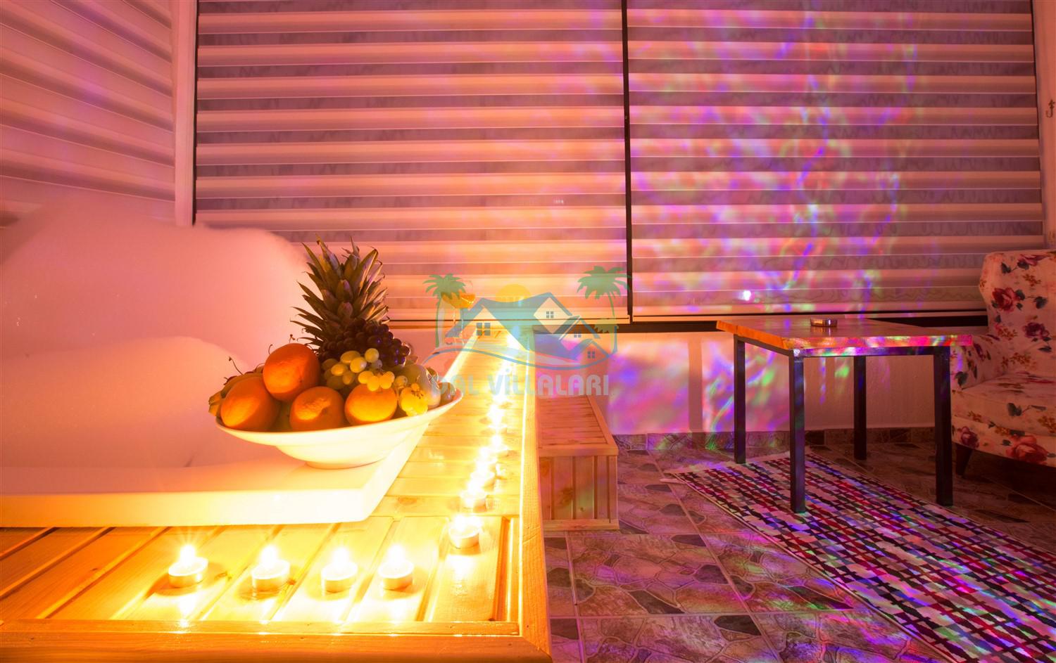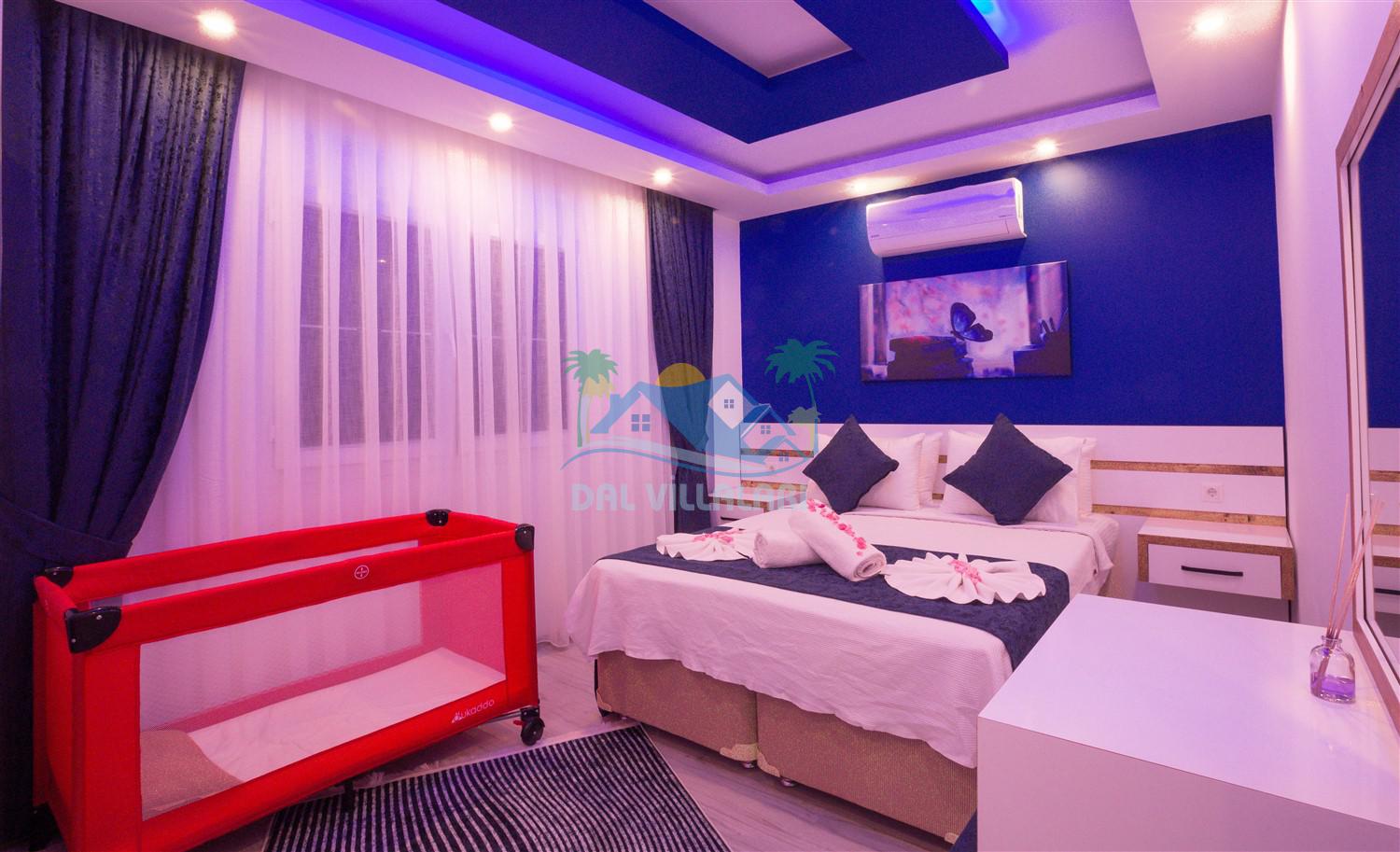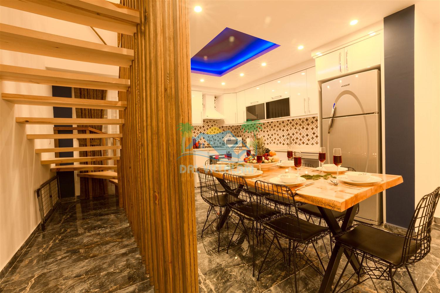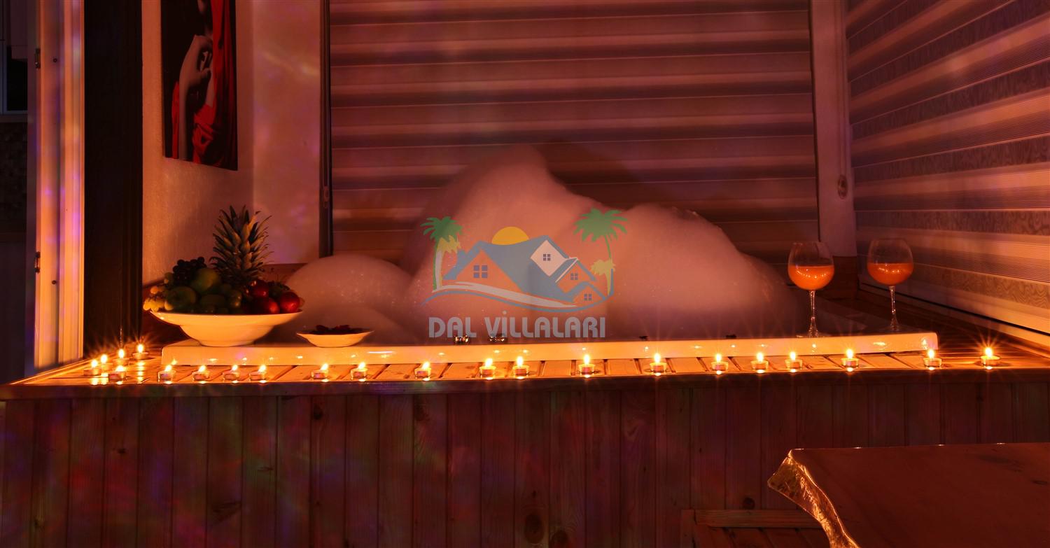 Kalkan Bezirgan köyünde bulunan kiralık balayı villası, doğa içinde, sesszi sakin bir konumda tatil isteyen ailelerimiz için oldukça uygun bir seçenektir. Muhafazakar villalar ve sinema salonlu villalar kategorisinde yer alan villamız, 4 yatak odası ile 8 kişilik konaklama kapasitesine sahiptir. Havuzu korunaklı ve bahçesi dışarıdan görünmeyen Villa Dağhan, mahremiyete önem veren ailelerimiz ve arkadaş grupları için huzur dolu bir tatil fırsatı sunuyor. Ayrıca havuz terasından yemyeşil bir bahçesi, masa tenisi, basketbol sahası, çocuklar için çocuk havuzu ve oyun parkı bulunan villamızda oldukça eğlenceli bir tatil geçirebilirsiniz.