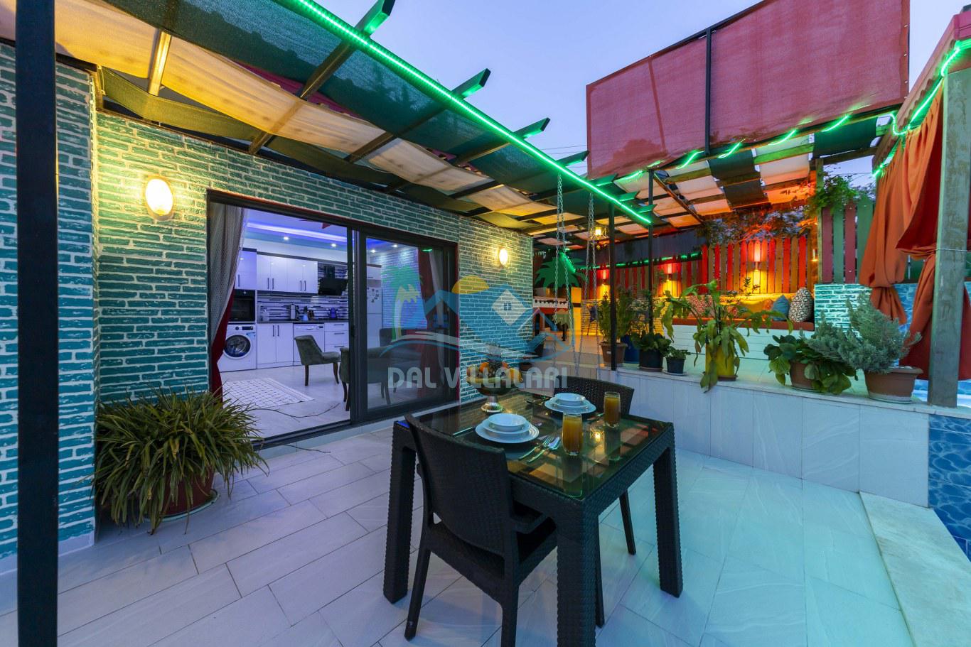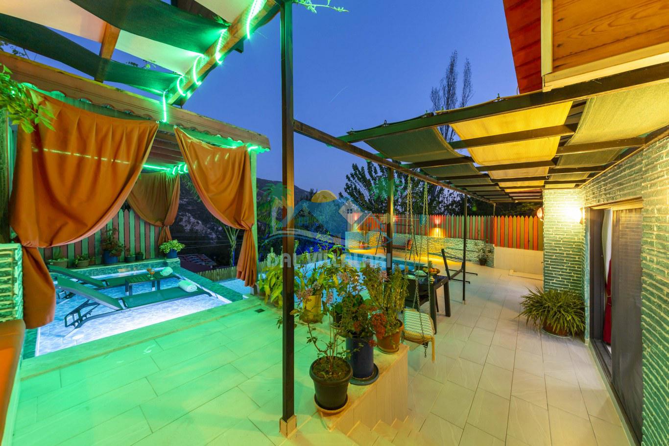 Şehir gürültüsünden uzak, kuş sesleri ve doğanın huzur verici atmosferiyle çevrili bir konumda yer alan Villamızın geniş terası, göz alıcı doğa ve vadi manzarasıyla çevrili olup, romantik bir akşam yemeğine veya sadece doğanın tadını çıkarmaya mükemmel bir ortam sunar.