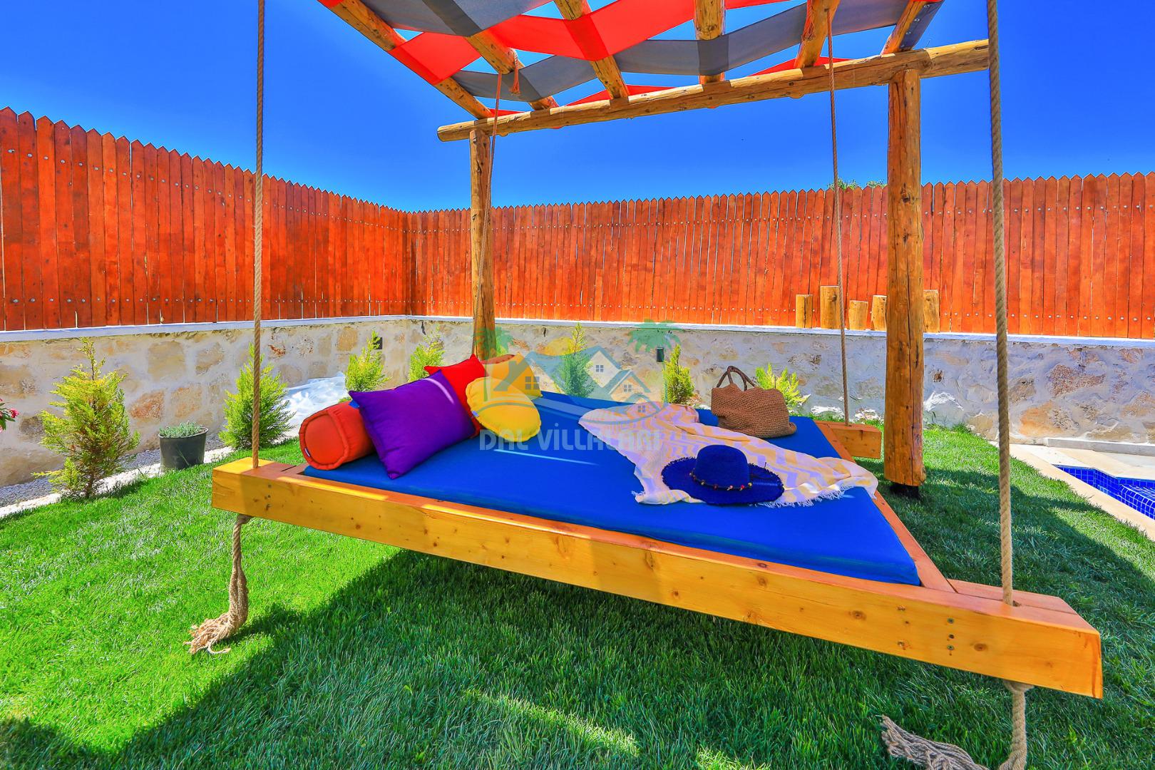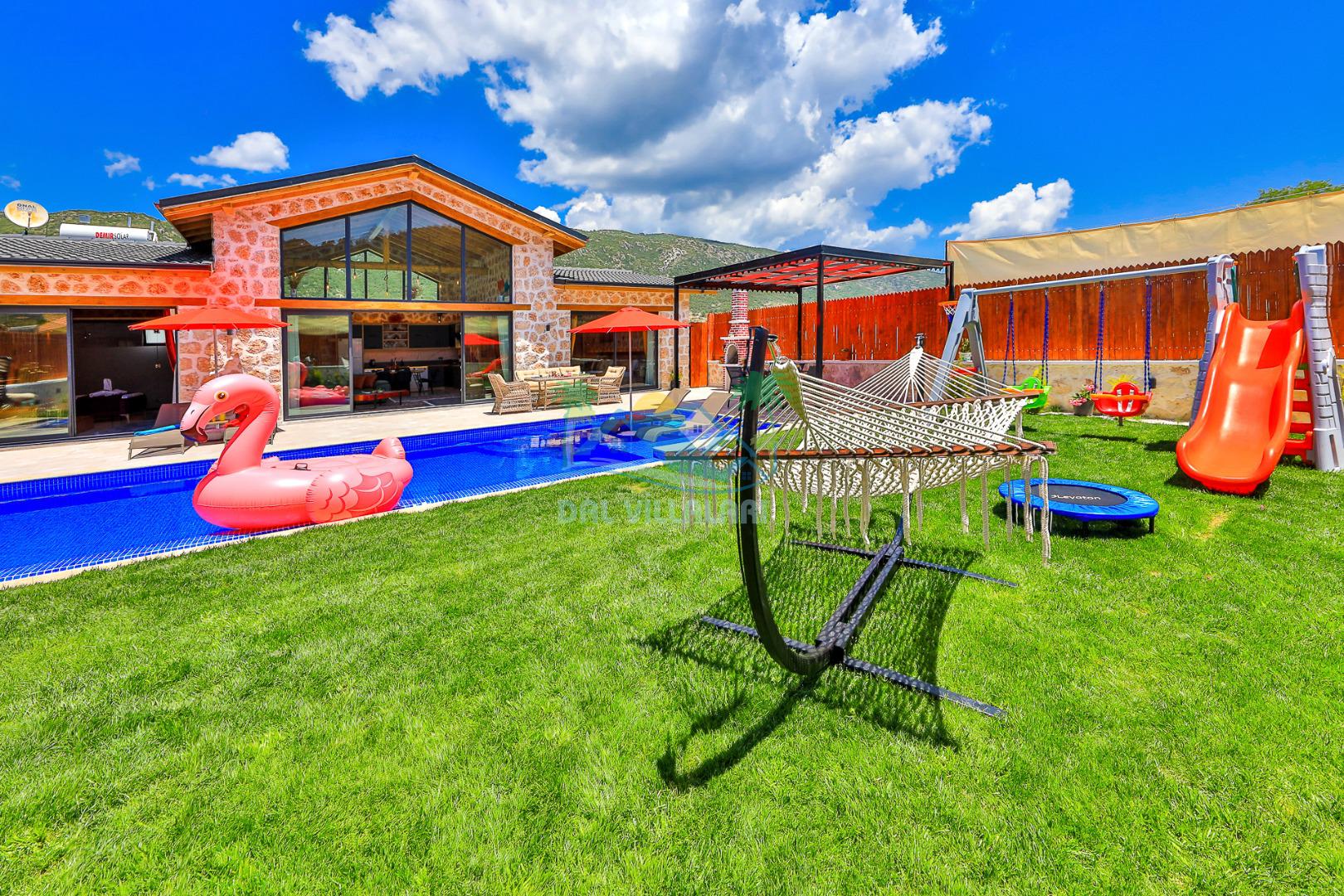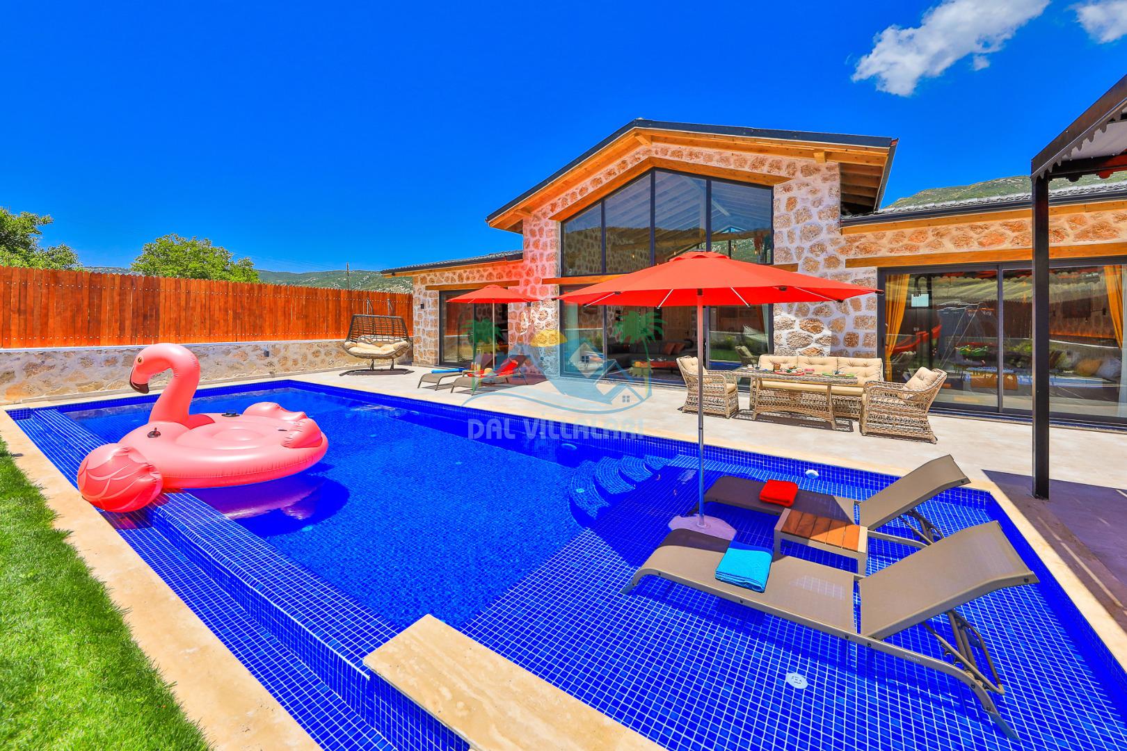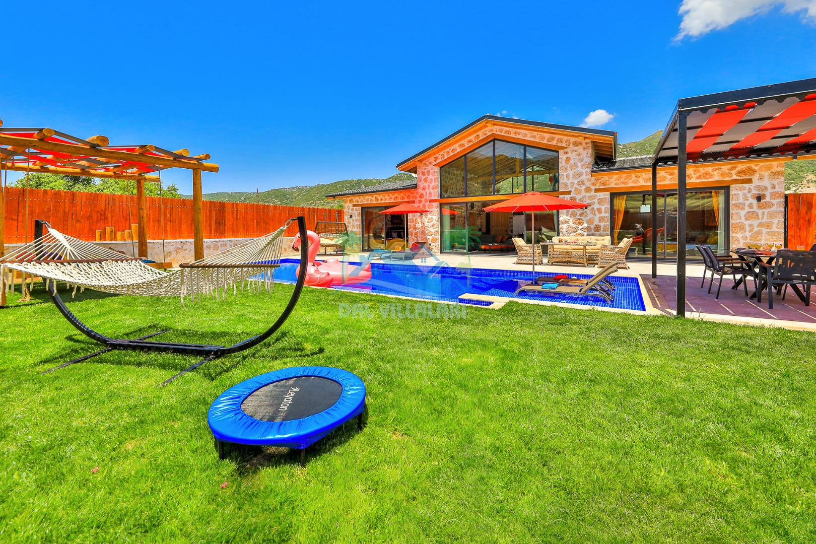 Villa Düş Diyarı , Kalkan Sarıbelen bölgesinde konumlanan 5 kişilik lüks tatil villası dır. Yemyeşil bir doğa içerisinde yer alan villamızın geniş bir bahçesi ve özel havuzu bulunmaktadır. Etrafı korunaklı ve muhafazakar aileler için idealdir. Ayrıca villamızın bahçesinde çocuk oyun parkı, hamak, şölen yatak, trambolin, perde, oturma grubu, yemek masası gibi pek çok seçenek yer almaktadır. Taş mimarisi ve şık dekorasyonuyla dikkat çeken villamızın 2 adet yatak odası bulunmaktadır. Ayrıca ebeveyn yatak odası çift kişilik jakuzi mevcuttur.
