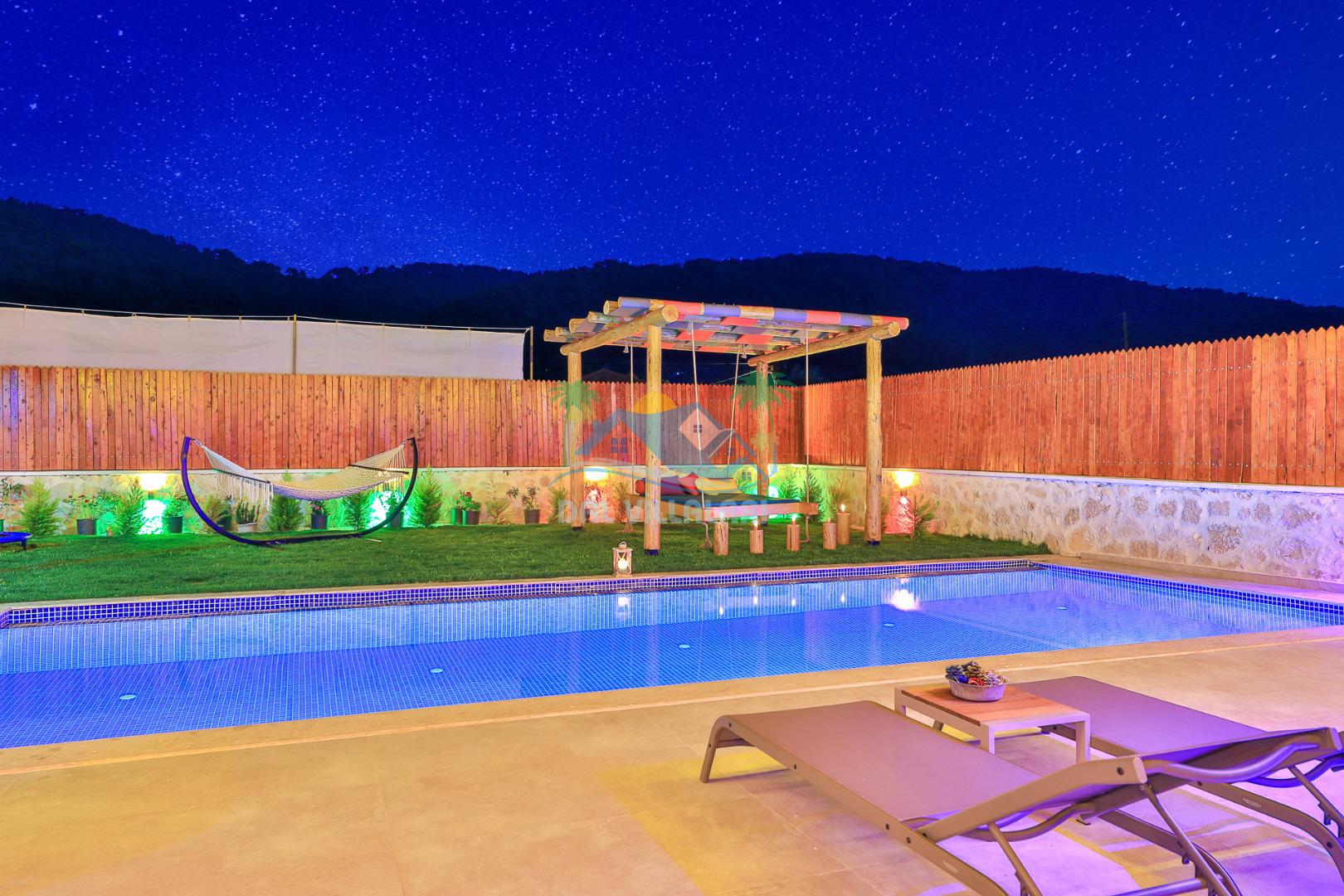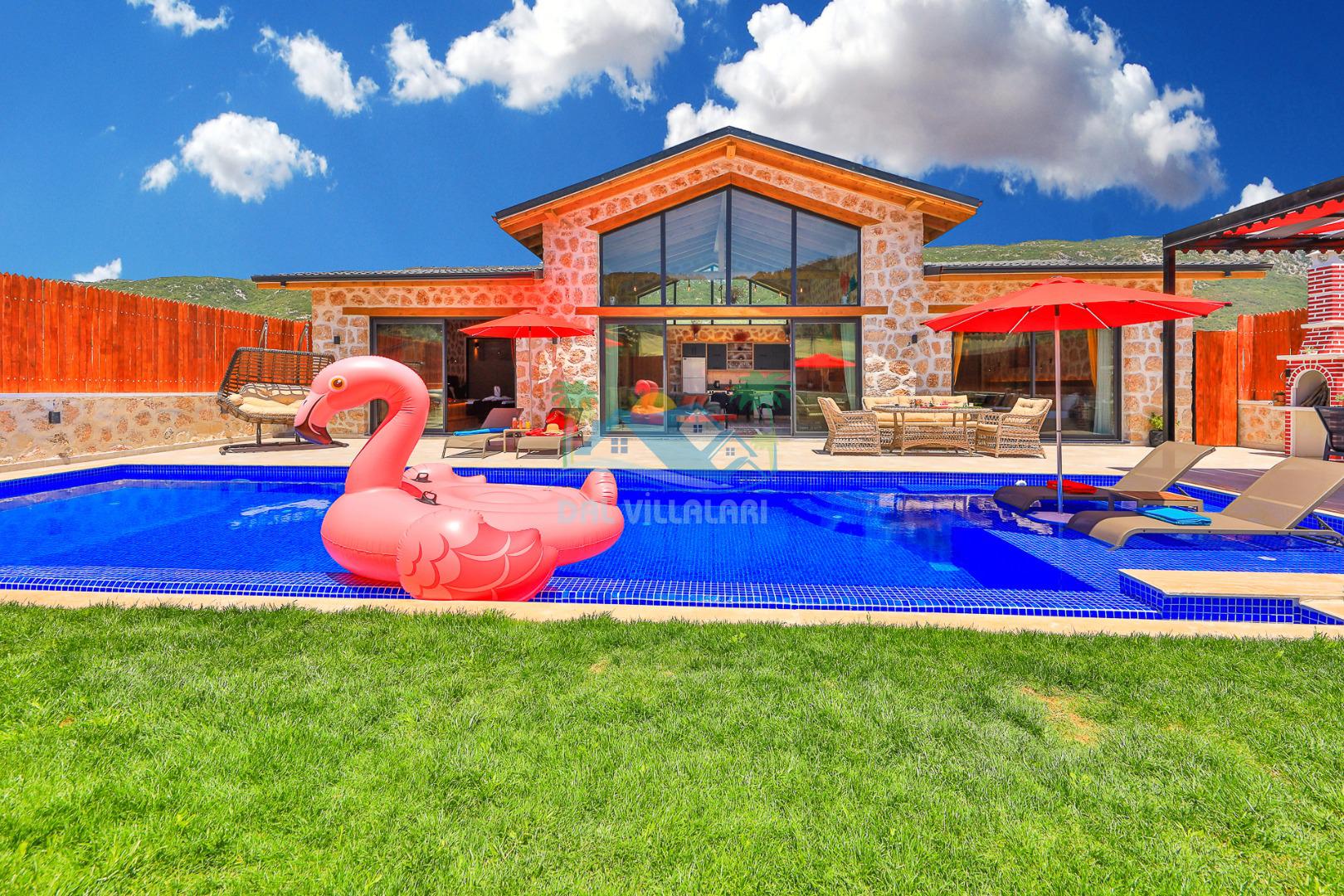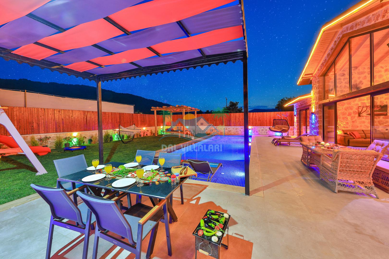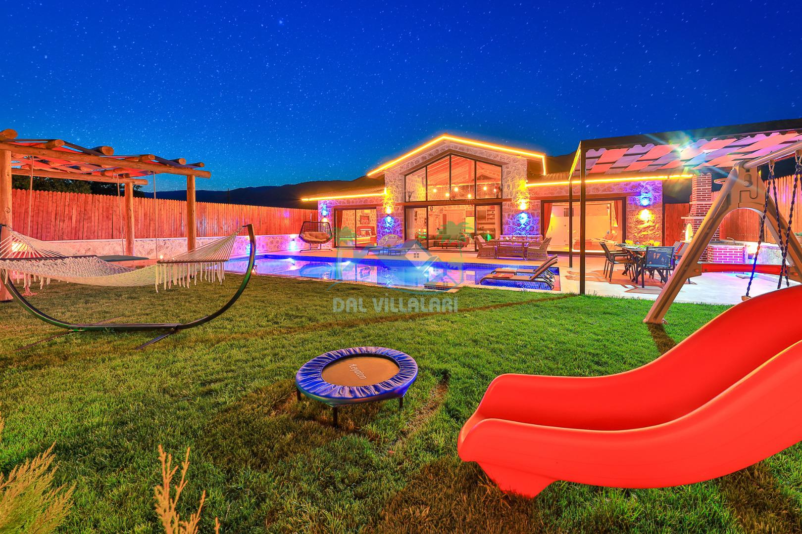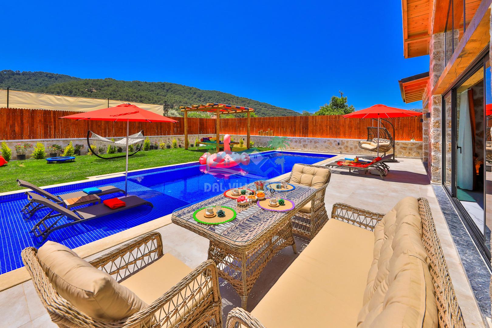 Villa Düş Diyarı , Kalkan Sarıbelen bölgesinde konumlanan 5 kişilik lüks tatil villası dır. Yemyeşil bir doğa içerisinde yer alan villamızın geniş bir bahçesi ve özel havuzu bulunmaktadır. Etrafı korunaklı ve muhafazakar aileler için idealdir. Ayrıca villamızın bahçesinde çocuk oyun parkı, hamak, şölen yatak, trambolin, perde, oturma grubu, yemek masası gibi pek çok seçenek yer almaktadır. Taş mimarisi ve şık dekorasyonuyla dikkat çeken villamızın 2 adet yatak odası bulunmaktadır. Ayrıca ebeveyn yatak odası çift kişilik jakuzi mevcuttur.
