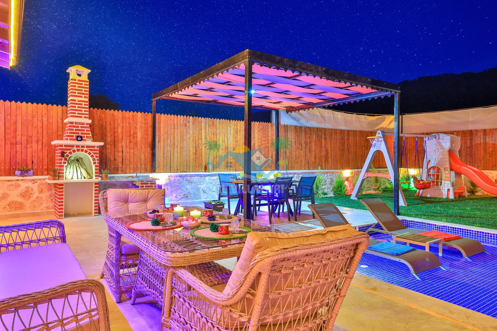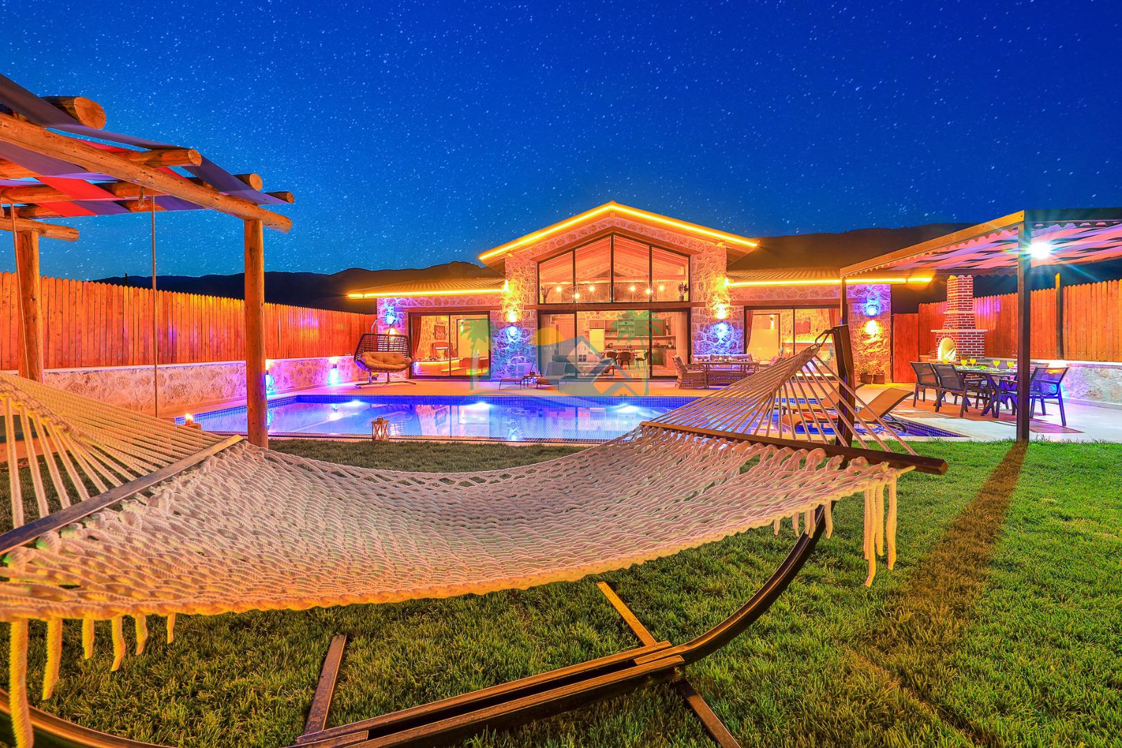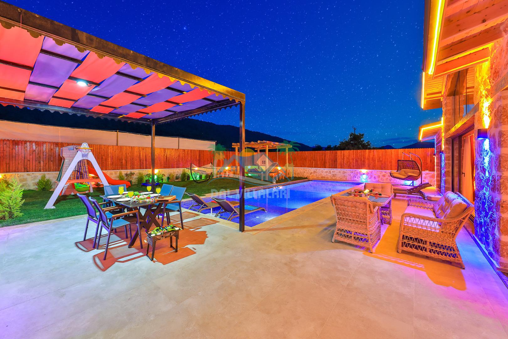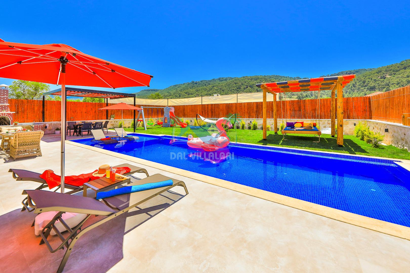 Villa Düş Diyarı , Kalkan Sarıbelen bölgesinde konumlanan 5 kişilik lüks tatil villası dır. Yemyeşil bir doğa içerisinde yer alan villamızın geniş bir bahçesi ve özel havuzu bulunmaktadır. Etrafı korunaklı ve muhafazakar aileler için idealdir. Ayrıca villamızın bahçesinde çocuk oyun parkı, hamak, şölen yatak, trambolin, perde, oturma grubu, yemek masası gibi pek çok seçenek yer almaktadır. Taş mimarisi ve şık dekorasyonuyla dikkat çeken villamızın 2 adet yatak odası bulunmaktadır. Ayrıca ebeveyn yatak odası çift kişilik jakuzi mevcuttur.