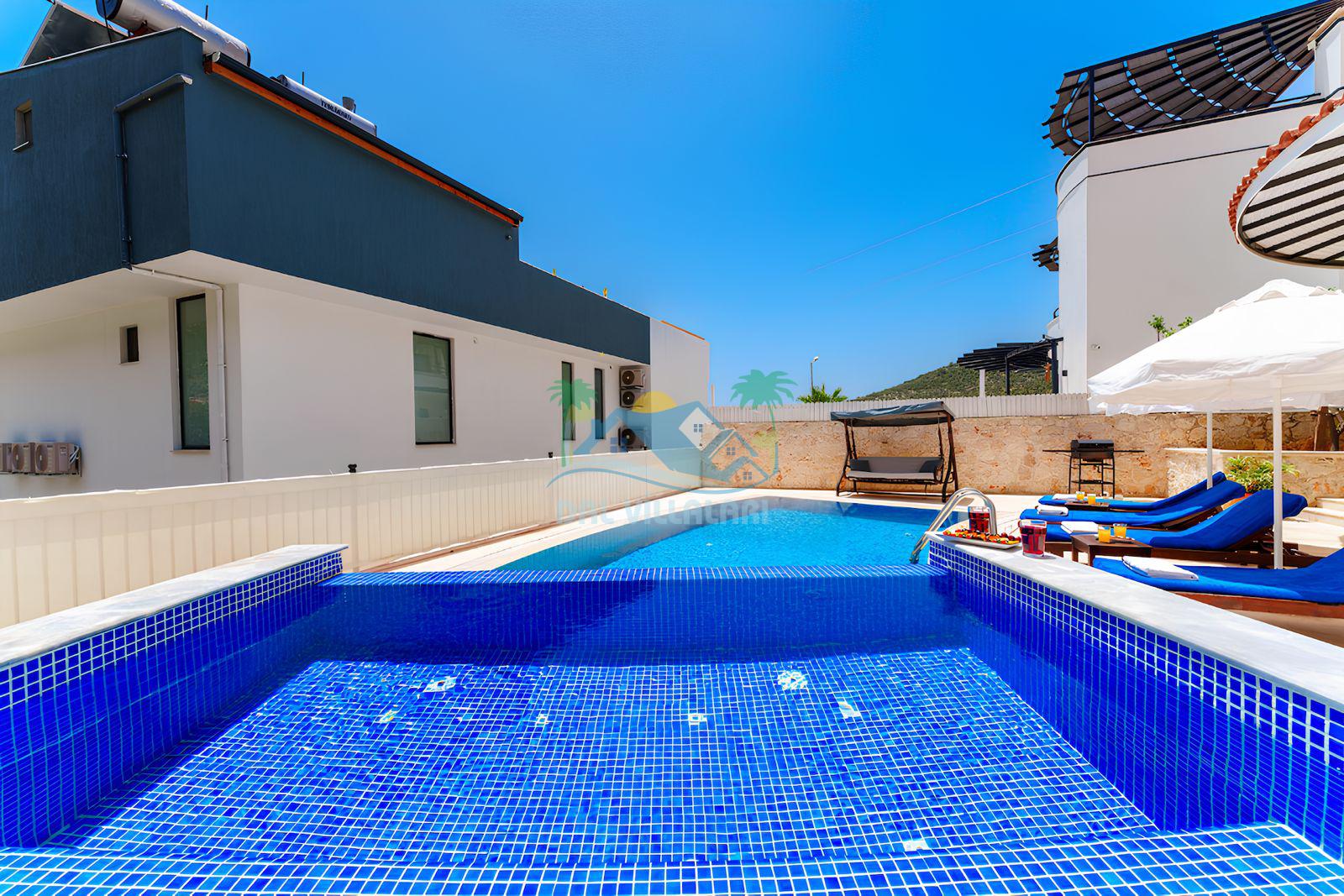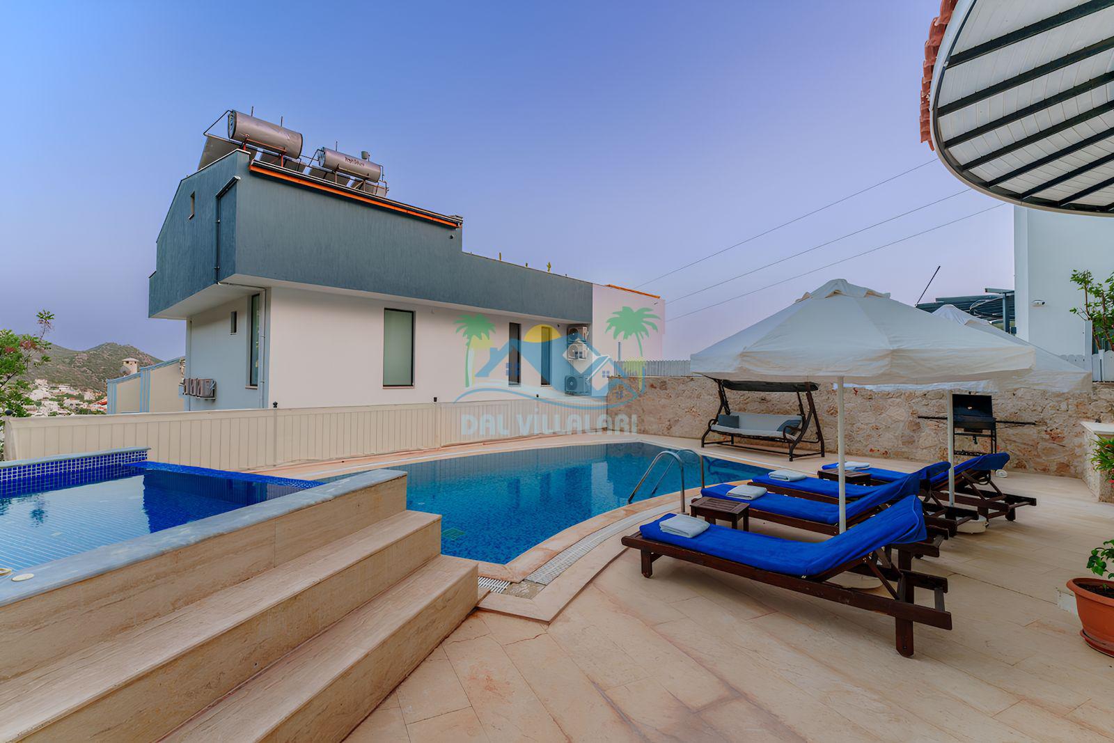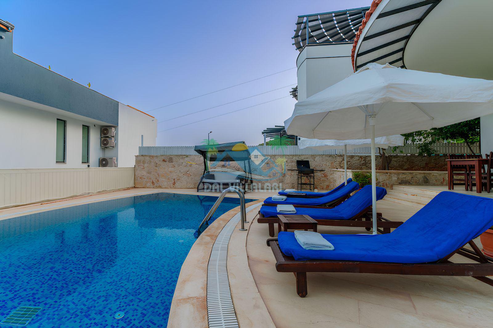 Detayları : 6 kişilik Masa ve Sandalye, 4 Adet şezlong, Barbekü, Güneş şemsiyesi , Özel yüzme havuzu, Çocuk havuzu, Salıncak, Duş bulunmaktadır.