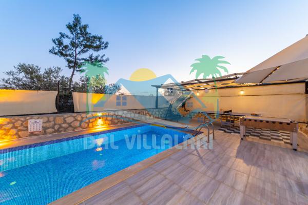Antalya Kaş Çayköy bölgesinde yer alan Villa Efe 2, 2 yatak odasına sahiptir. Şehrin gürültüsünden uzakta sakin bir konumdadır. Villamız havuz alanı dışarıdan görünmemektedir. Muhafazakar aileler bu villamızda gönül rahatlığıyla havuzu kullanabilmektedir. Misafirlerimizin keyifli vakit geçirmesi adına masa tenisi, bahçede salıncak ve langırt masası yer almaktadır. Villamız iki ayrı daire olarak kullanılabilmektedir. Her iki kat bağımsız girişe sahiptir. Talep edilmesi durumunda balayı çiftlerine havuz katı olarak kiralanmaktadır. Balayı çiftleri konaklama yaptığı sürece üst kat kullanıma kapatılmaktadır.