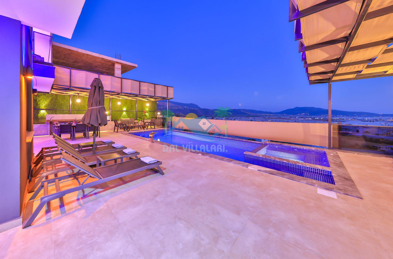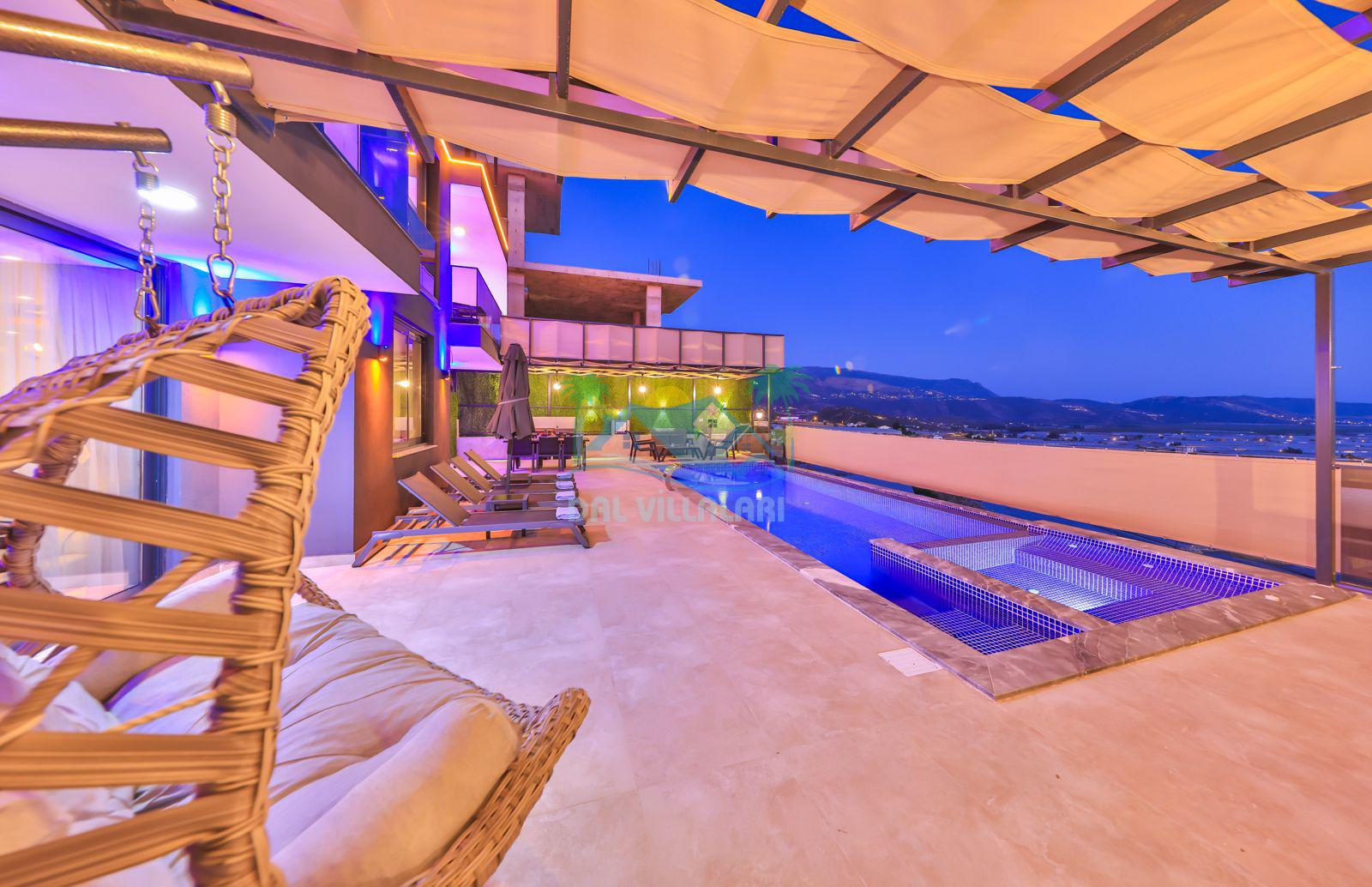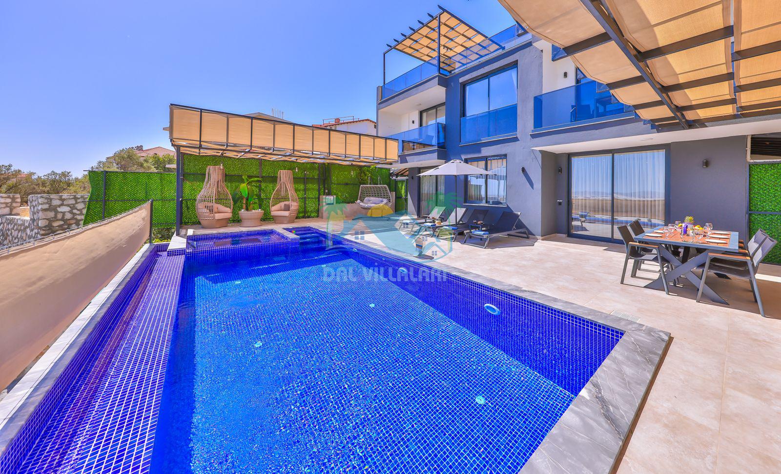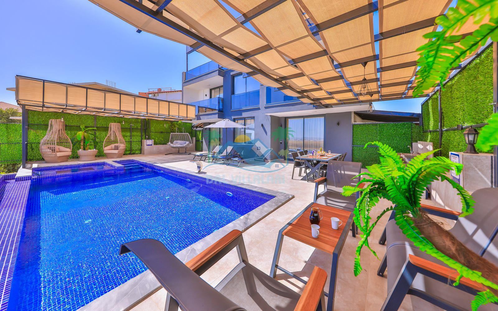 Villa Ela, Kalkan'ın Çavdır mevkisinde konumlanmış, doğa ile iç içe olan triplex villamızdır. 3 yatak odası ve 5 banyo tuvaleti bulunan villamız, 6 kişilik konaklama kapasitesiyle geniş aileler ve kalabalık arkadaş grupları için ideal bir seçenek olarak öne çıkmaktadır. Villamızın 3. katında jakuzi ve sauna bulunmaktadır ve ayrıca geniş teras alanında harika deniz ve doğa manzarasını seyrederken masa tenisi ve langırt ile stresiniz atabilirsiniz . Villamızın havuz terasında bahçe salıncağı bulunmaktadır. Korunaklı özel yüzme havuzu ve havuz içerisinde yer alan jakuzisi, konforlu şezlongları ve yaz aylarının vazgeçilmezi barbeküsüyle villamız gözlerden uzak ve huzurlu bir tatil geçirmek isteyen misafirlerini bekliyor.