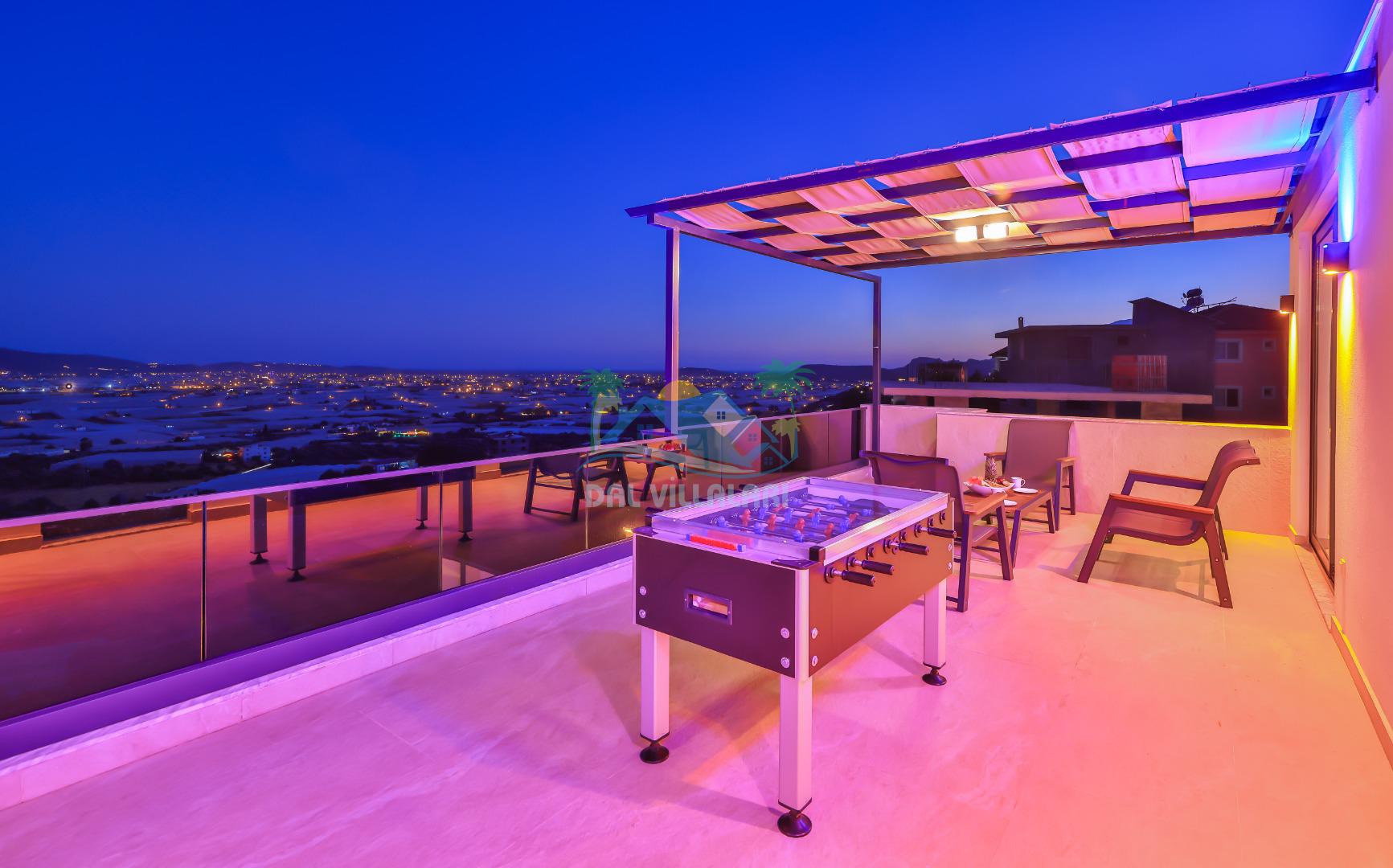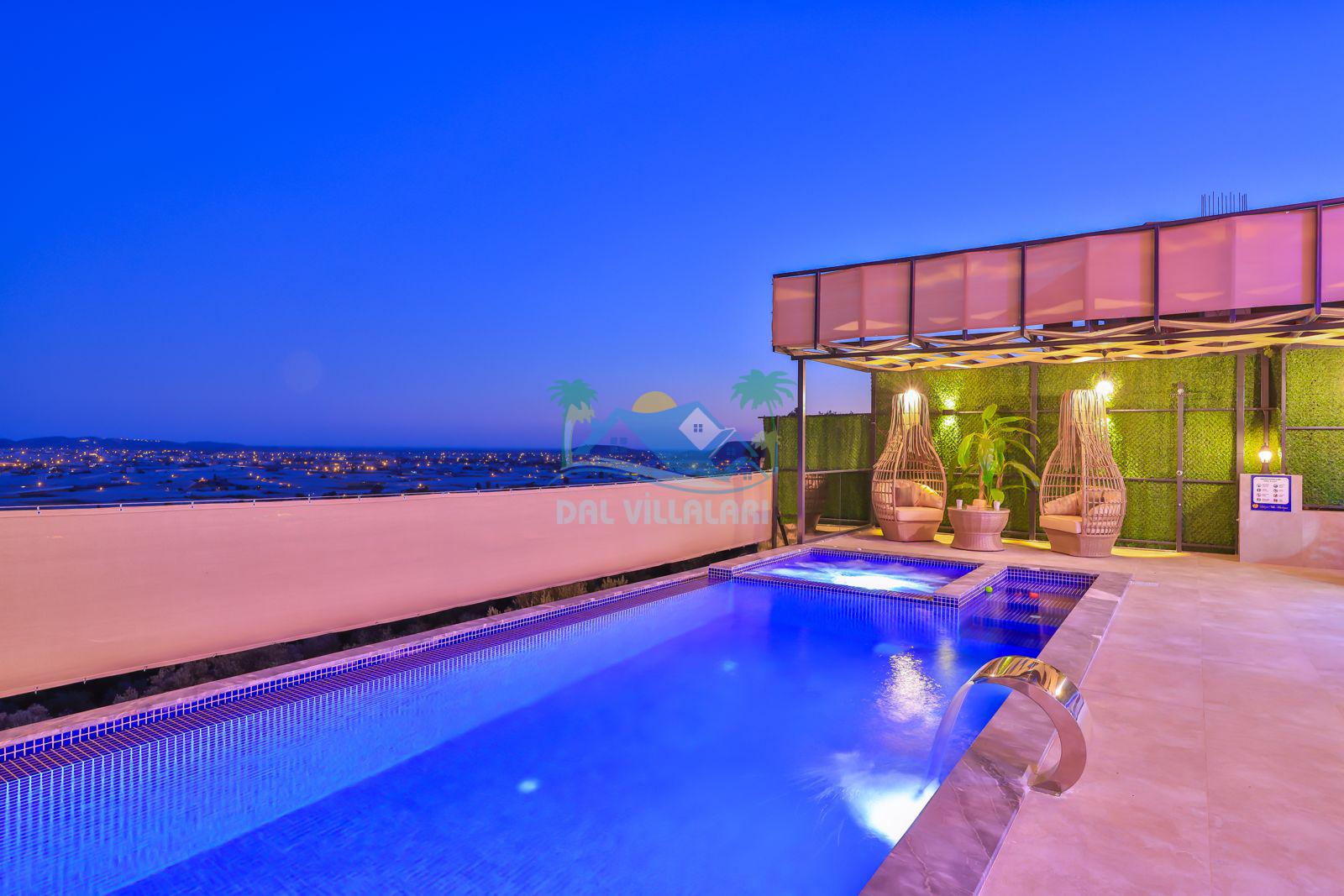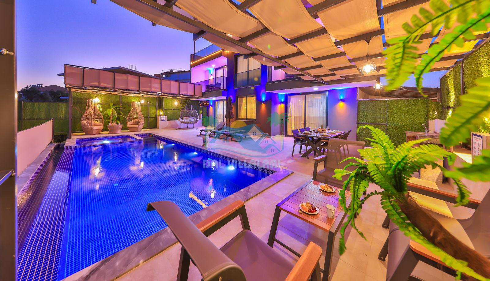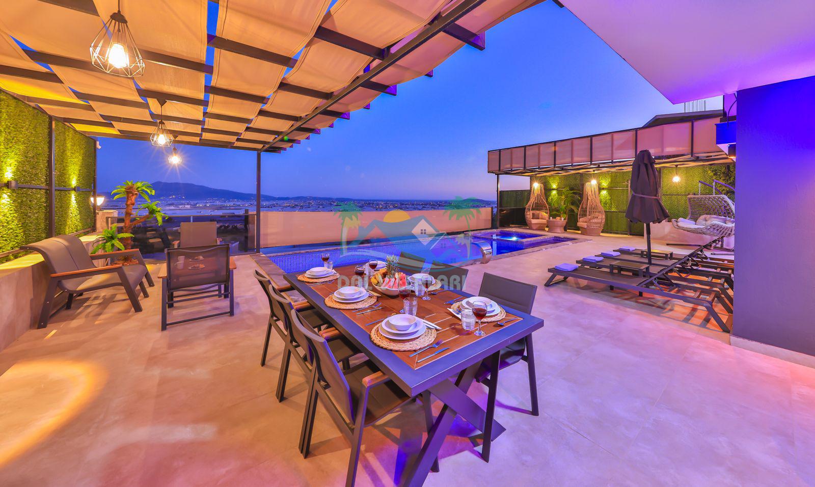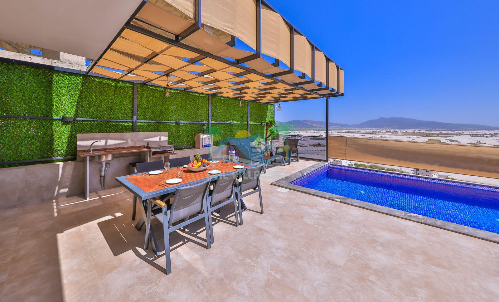 Villa Ela, Kalkan'ın Çavdır mevkisinde konumlanmış, doğa ile iç içe olan triplex villamızdır. 3 yatak odası ve 5 banyo tuvaleti bulunan villamız, 6 kişilik konaklama kapasitesiyle geniş aileler ve kalabalık arkadaş grupları için ideal bir seçenek olarak öne çıkmaktadır. Villamızın 3. katında jakuzi ve sauna bulunmaktadır ve ayrıca geniş teras alanında harika deniz ve doğa manzarasını seyrederken masa tenisi ve langırt ile stresiniz atabilirsiniz . Villamızın havuz terasında bahçe salıncağı bulunmaktadır. Korunaklı özel yüzme havuzu ve havuz içerisinde yer alan jakuzisi, konforlu şezlongları ve yaz aylarının vazgeçilmezi barbeküsüyle villamız gözlerden uzak ve huzurlu bir tatil geçirmek isteyen misafirlerini bekliyor.