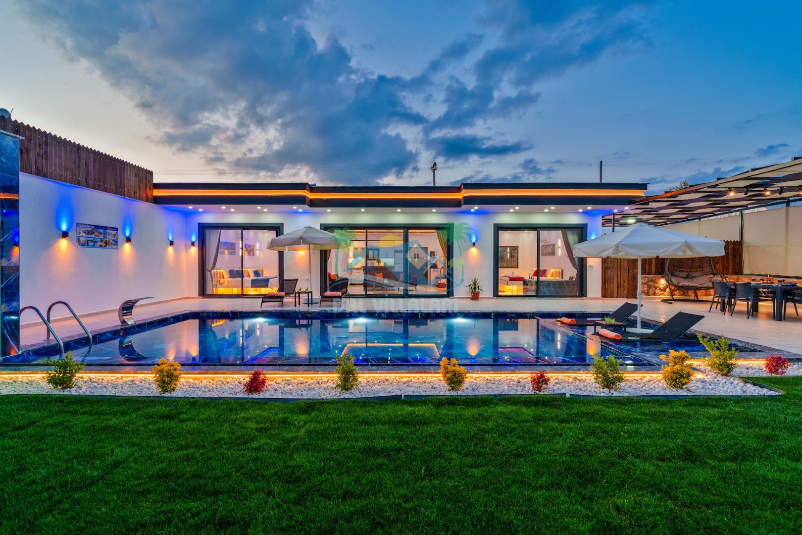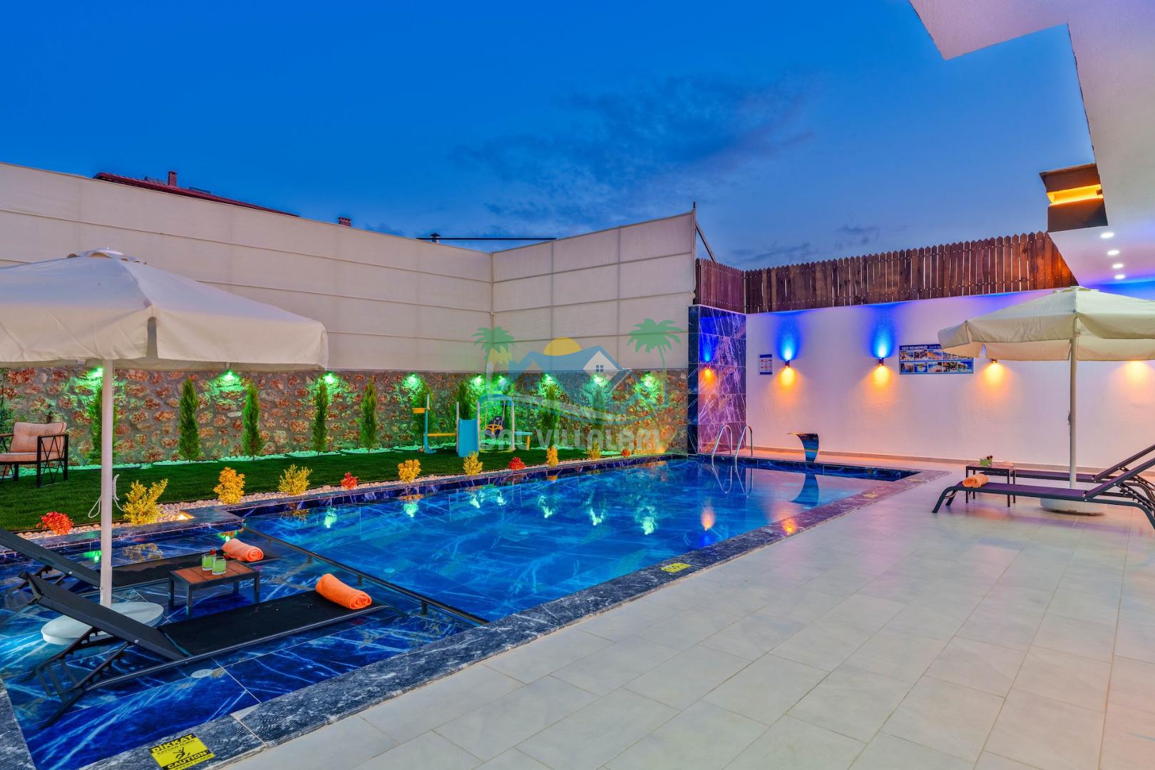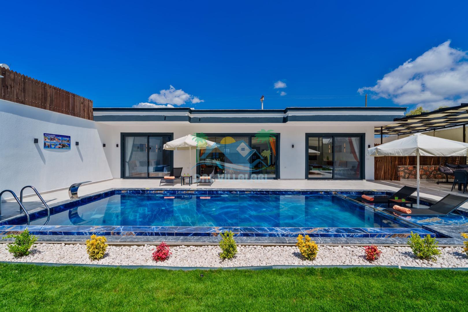 Villa Elif, Kalkan Çavdır mevkiinde konumlanmakta olan muhteşem doğa manzarasına hakim kiralık villalarımız arasında yer almaktadır. Şık ve konforlu bir şekilde dizayn edilen yazlık villamızda 2 adet yatak odası bulunmakta olup, 5 kişiye konaklama imkanı sağlamaktadır. Villamızın havuz terasının korunaklı olması sayesinde size özel bir ortam da rahat bir tatil keyfi yaşayabilirsiniz. Villamızın ebeveyn yatak odasında tüm yılın vermiş olduğu yorgunluğu atabileceğiniz jakuzi konforu sağlanmaktadır.