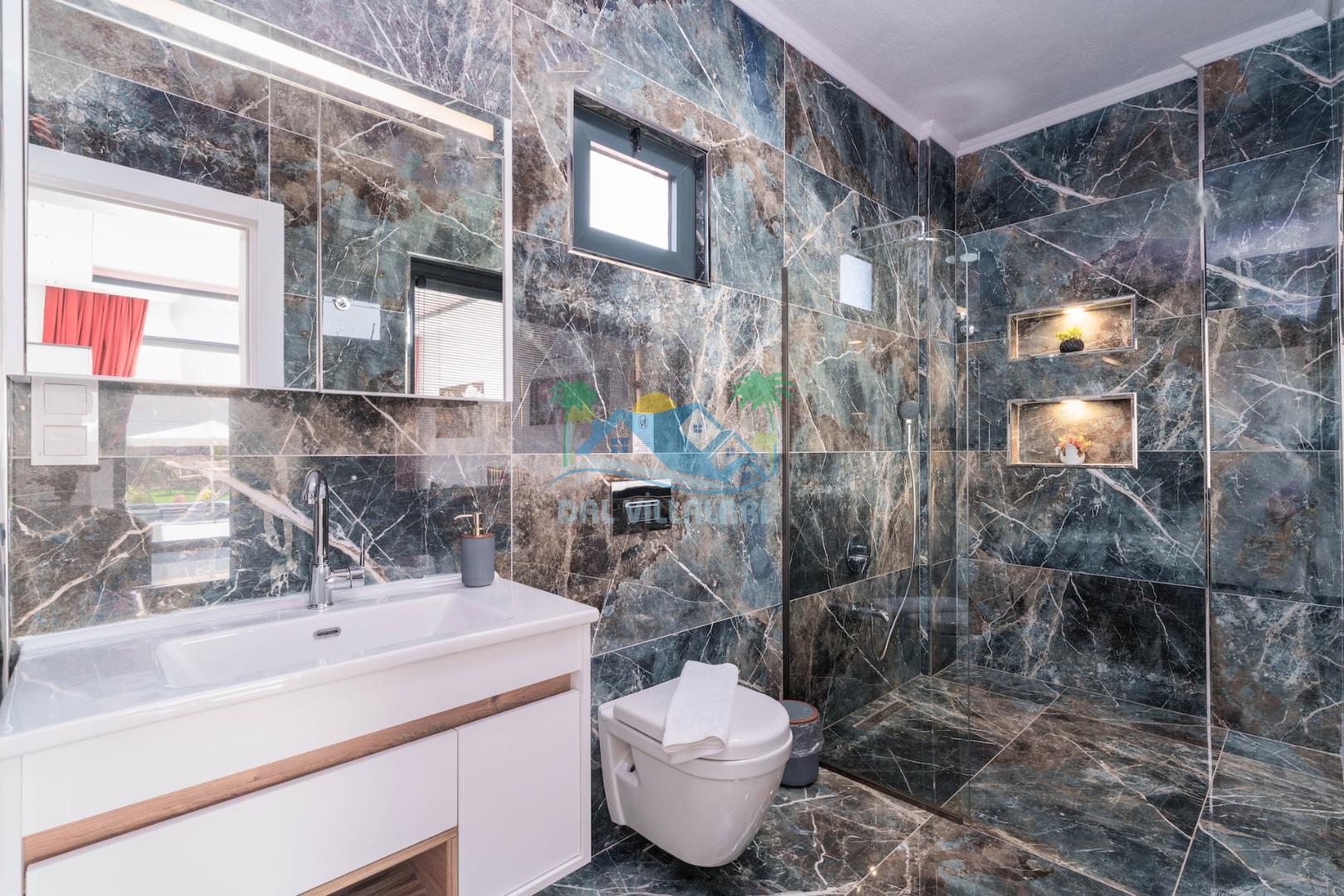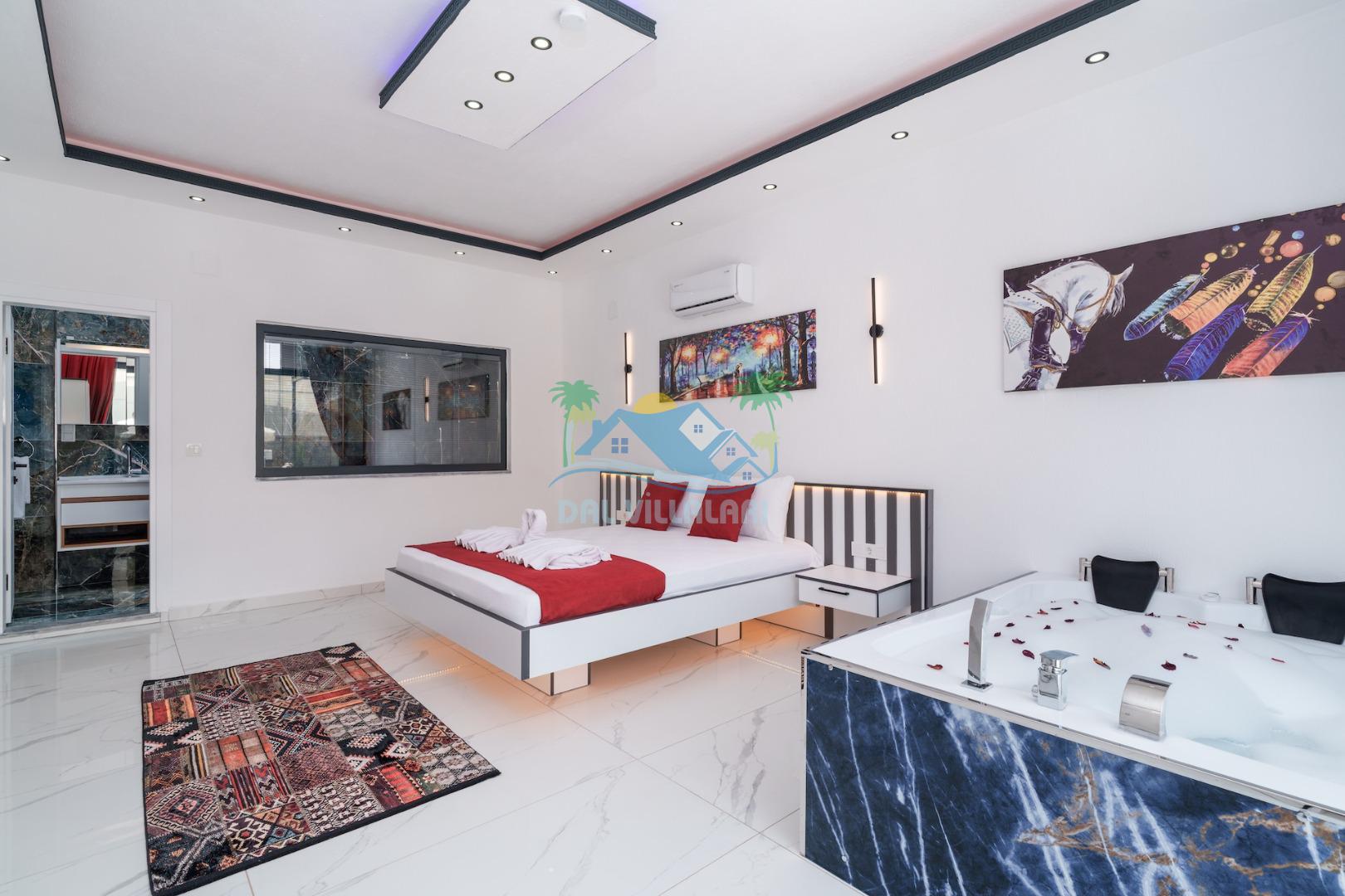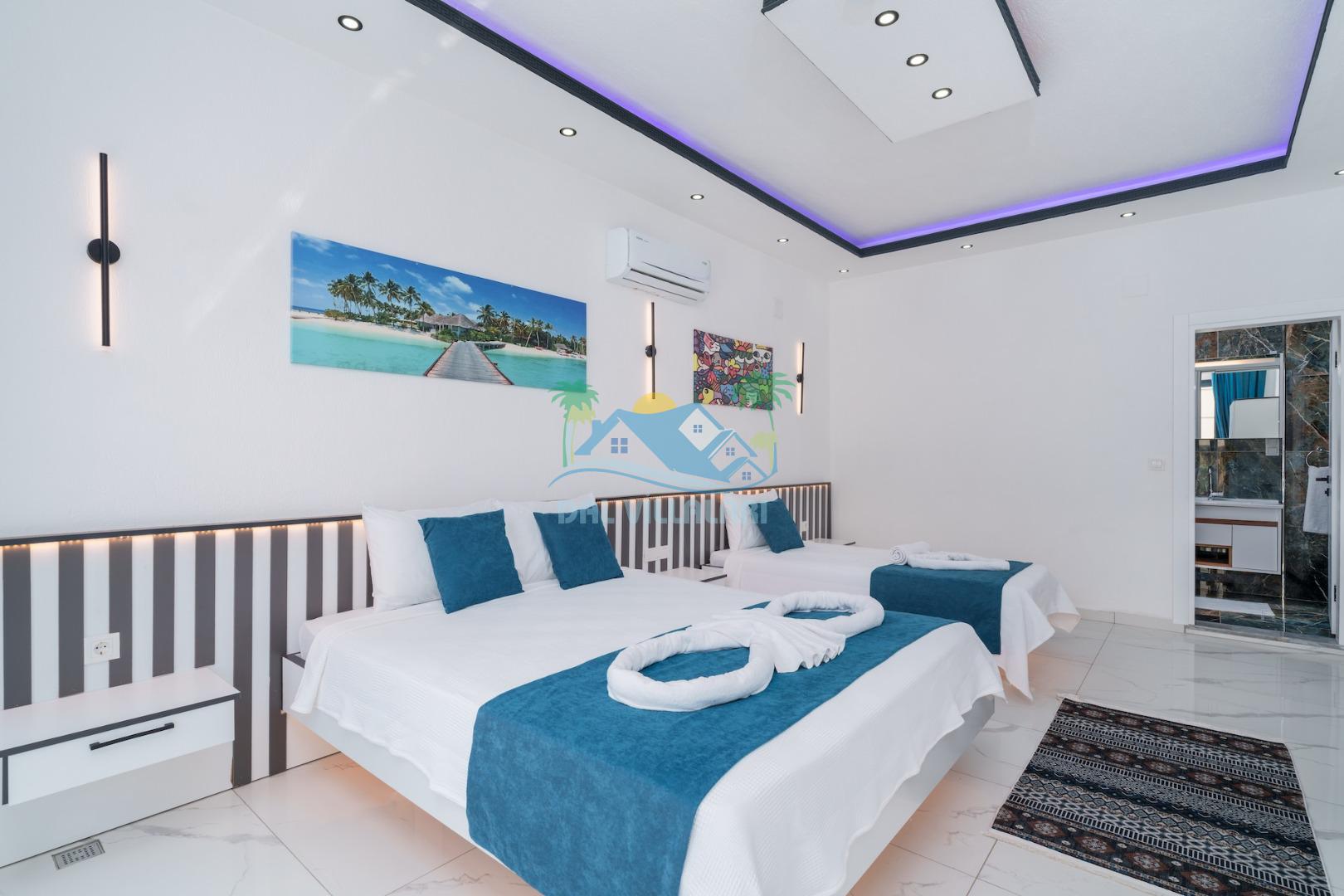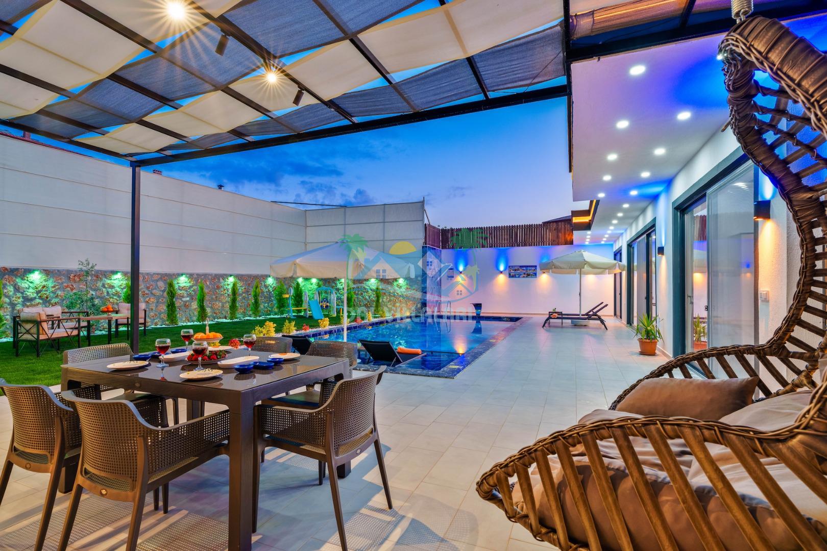 Villa Elif, Kalkan Çavdır mevkiinde konumlanmakta olan muhteşem doğa manzarasına hakim kiralık villalarımız arasında yer almaktadır. Şık ve konforlu bir şekilde dizayn edilen yazlık villamızda 2 adet yatak odası bulunmakta olup, 5 kişiye konaklama imkanı sağlamaktadır. Villamızın havuz terasının korunaklı olması sayesinde size özel bir ortam da rahat bir tatil keyfi yaşayabilirsiniz. Villamızın ebeveyn yatak odasında tüm yılın vermiş olduğu yorgunluğu atabileceğiniz jakuzi konforu sağlanmaktadır.