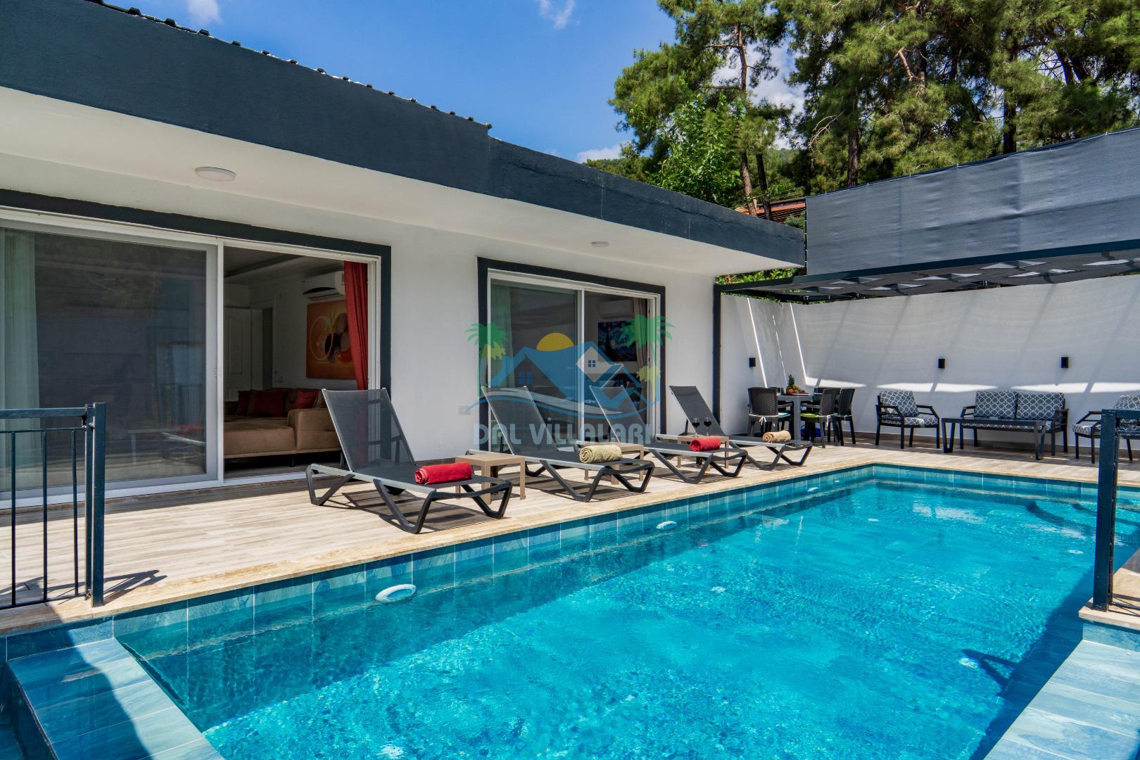 Kalkan/İslamlar mevkiinde konumlandırılmış olan 2 yatak odasıyla 4 kişilik konaklama kapasitesine sahip doğayla iç içe konumlandırılmış tatil villalarımız arasında yer almaktadır.