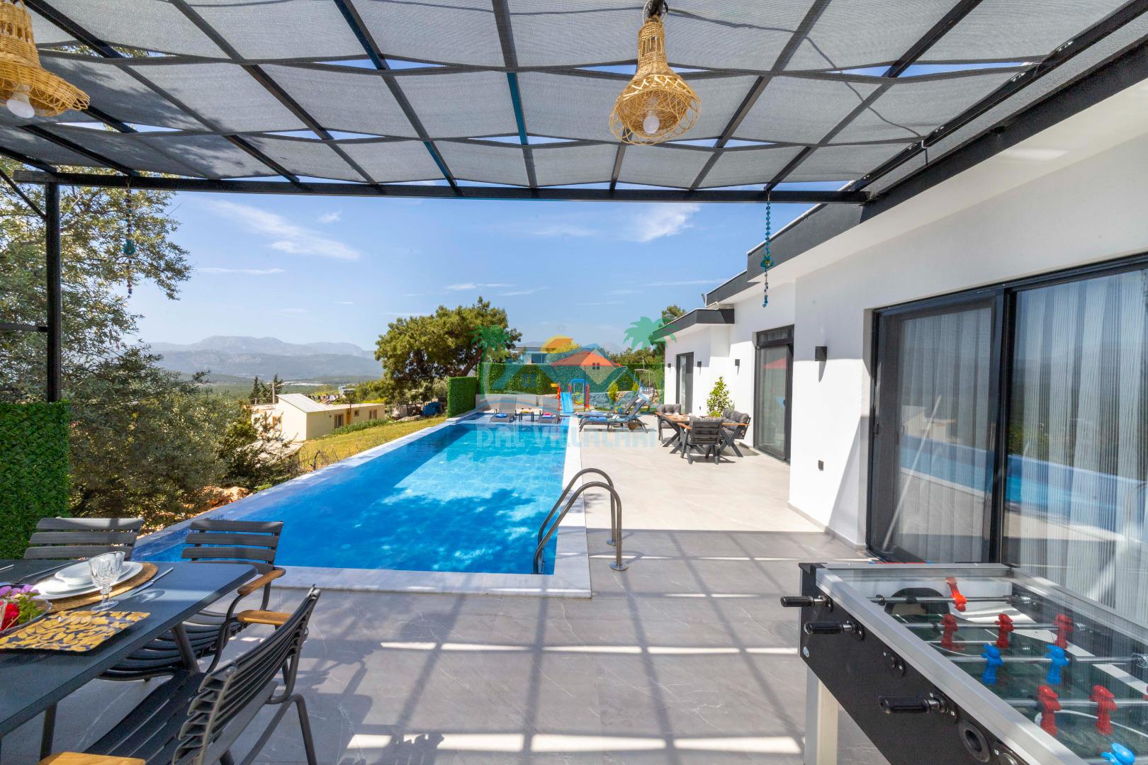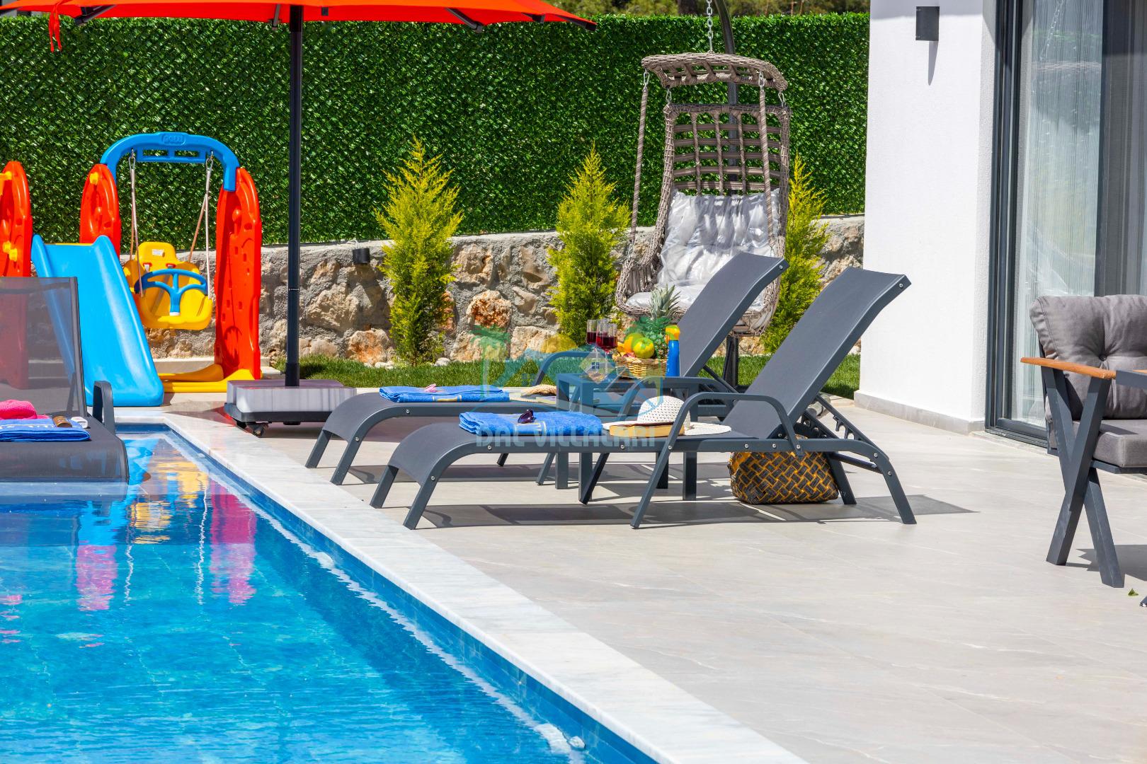 Villa Elmas, Kalkan Çavdır mevkiinde konumlanan, havuzu tam korunaklı villamızdır. Villamız balayı misafirleri ve çekirdek aileler için oldukça idealdir. Doğa içerisinde konumlanan villamız sizlere huzurlu bir tatil imkanı sunmaktadır. Size özel havuzu ve jakuzisi sayesinde ferahlayacak ve tüm yılın vermiş olduğu stresi üzerinizden atabilme fırsatı bulabileceksiniz. Ayrıca villamız da salıncak, çocuk parkı, langırt ve bahçe alanı bulunmaktadır.