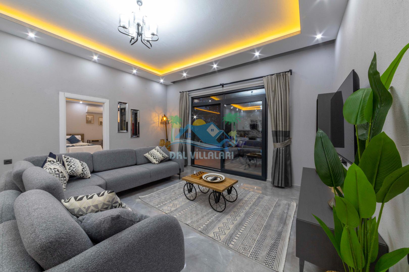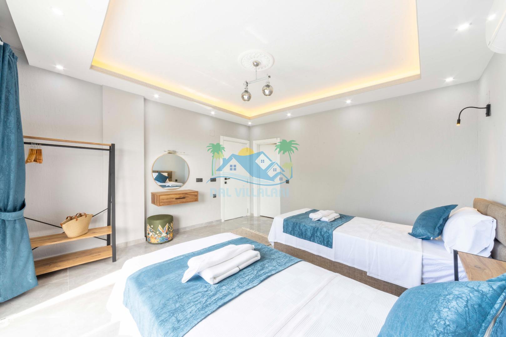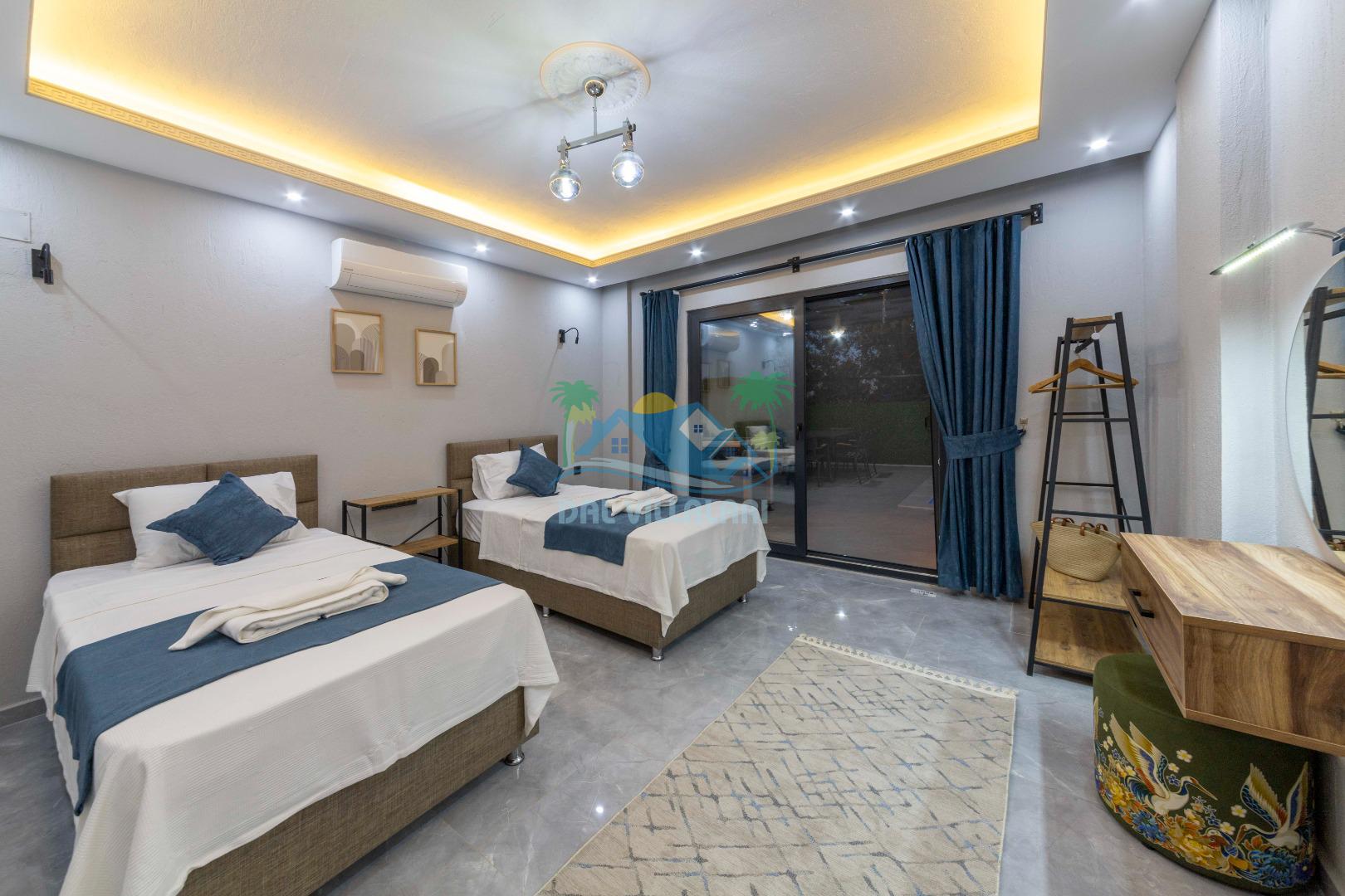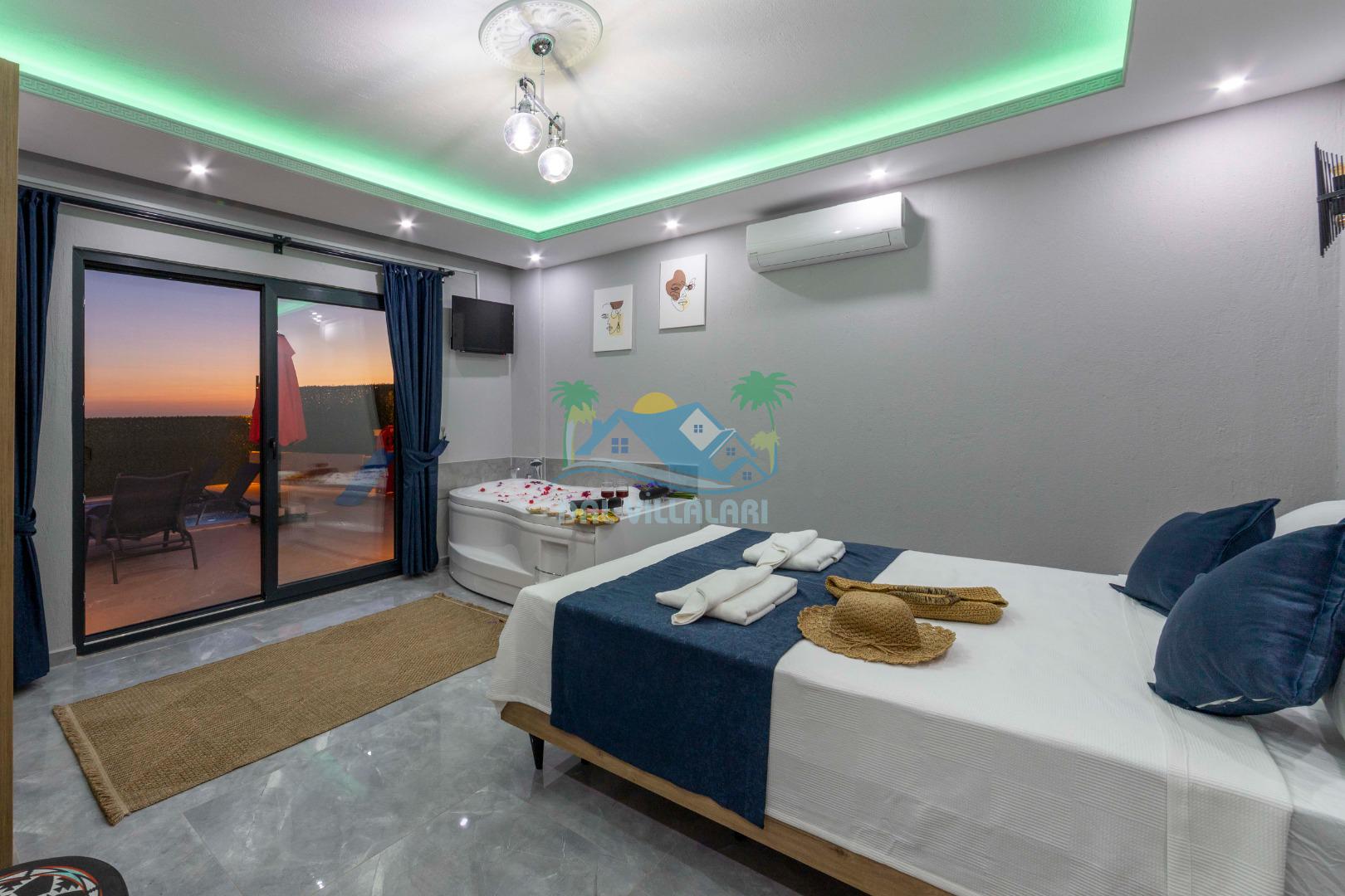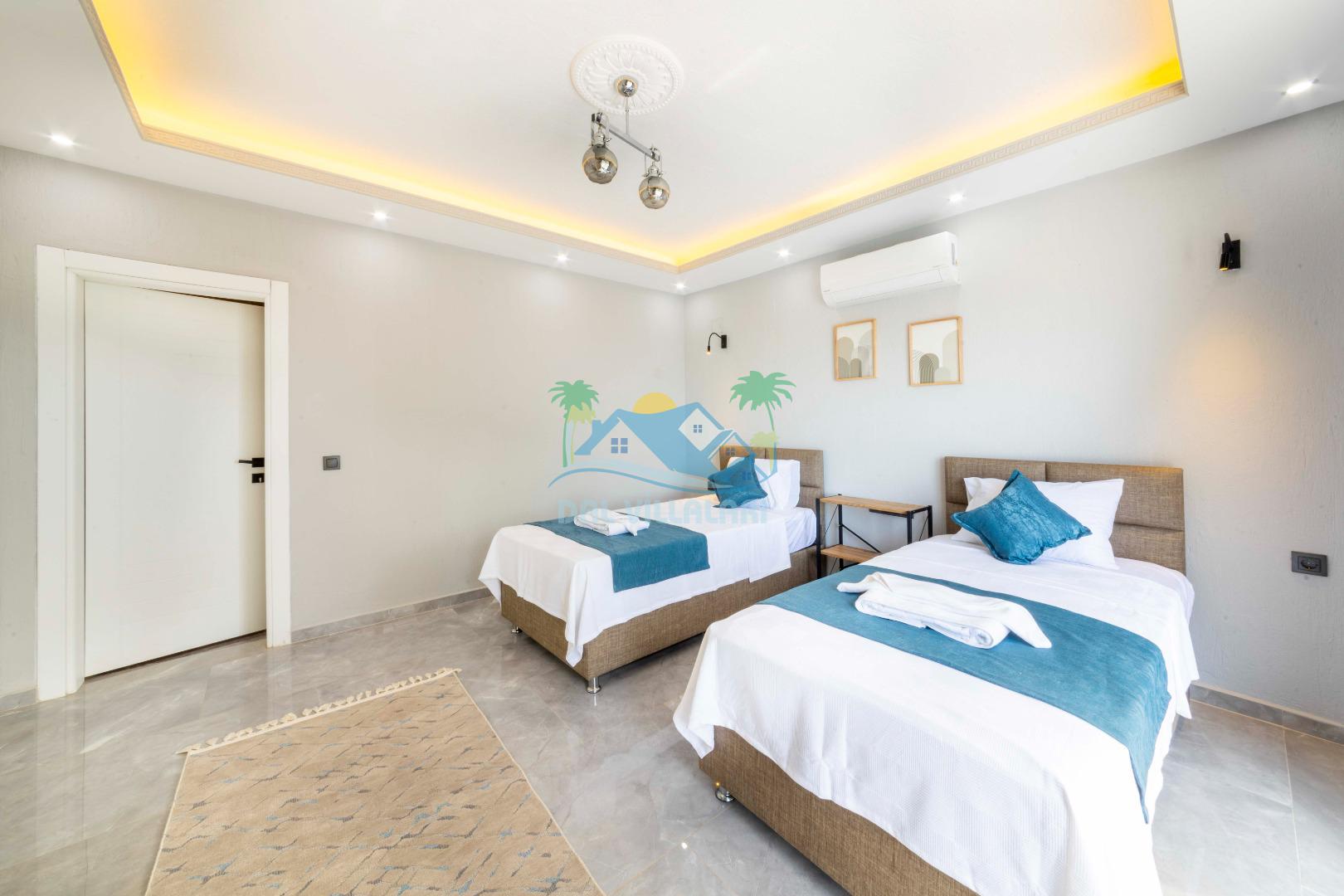 Villamızın içerisinde iki yatak odası ve iki adet banyo bulunmaktadır. Birinci yatak odası içerisinde, iki adet tek kişilik yatak, banyo, ve klima; İkinci yatak odası içerisinde, bir adet çift kişilik yatak, banyo, jakuzi, klima ve tv bulunmaktadır. Salon içerisinde mutfak, oturma grubu, televizyon ve klima yer almaktadır.