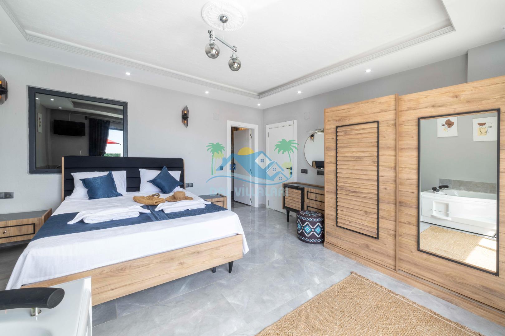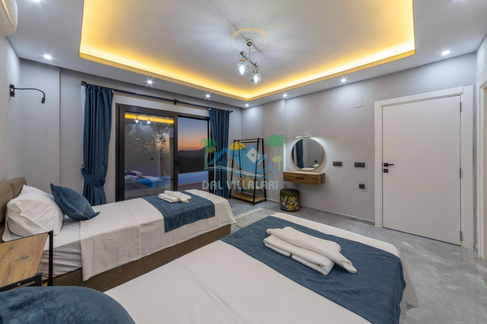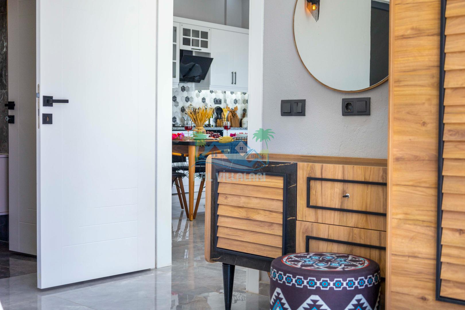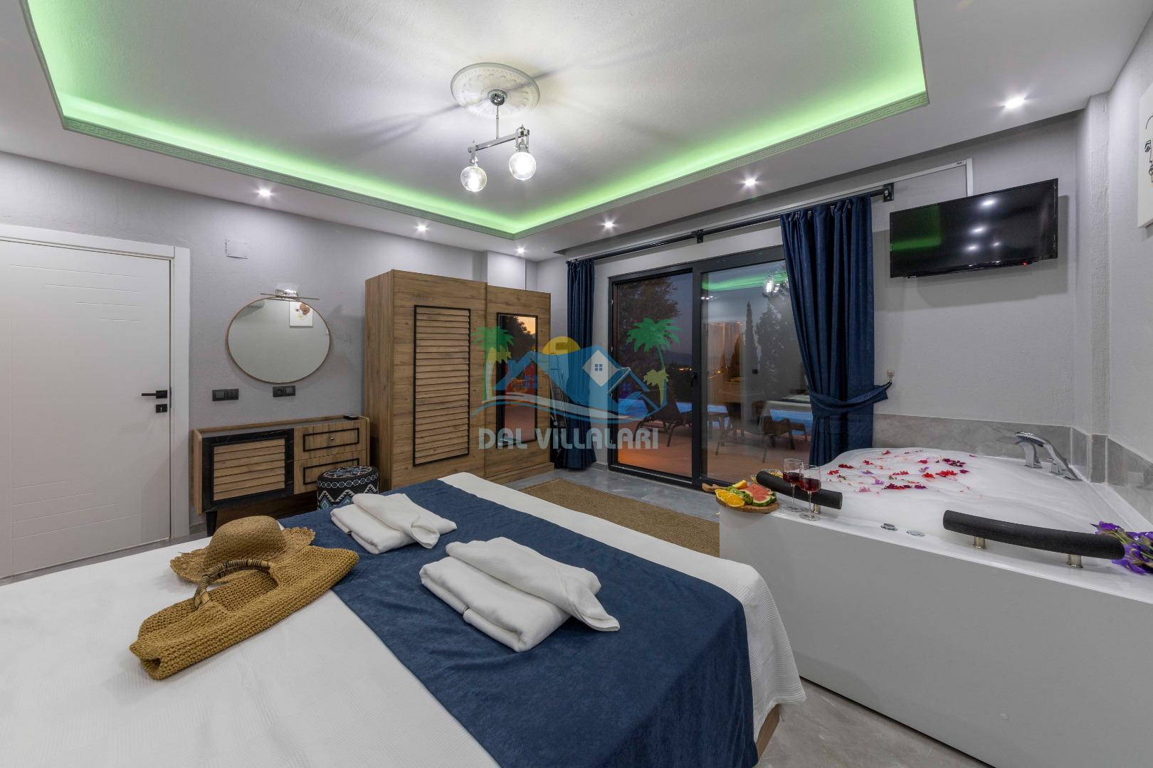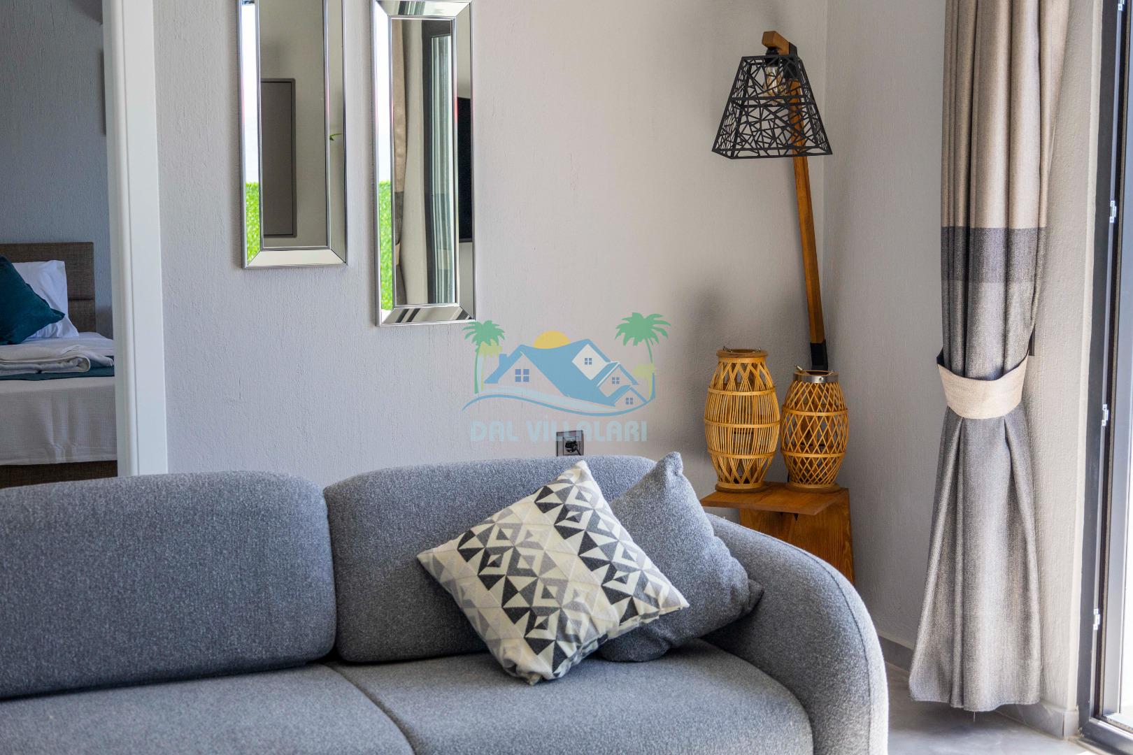 Villamızın içerisinde iki yatak odası ve iki adet banyo bulunmaktadır. Birinci yatak odası içerisinde, iki adet tek kişilik yatak, banyo, ve klima; İkinci yatak odası içerisinde, bir adet çift kişilik yatak, banyo, jakuzi, klima ve tv bulunmaktadır. Salon içerisinde mutfak, oturma grubu, televizyon ve klima yer almaktadır.