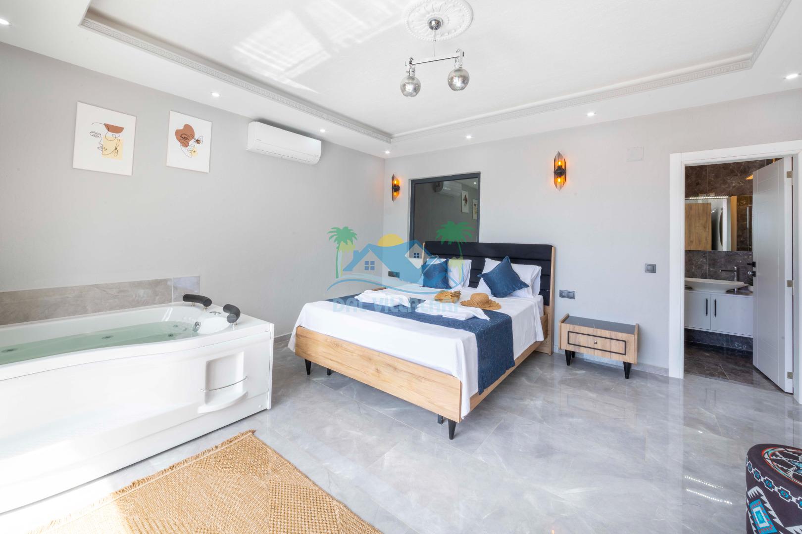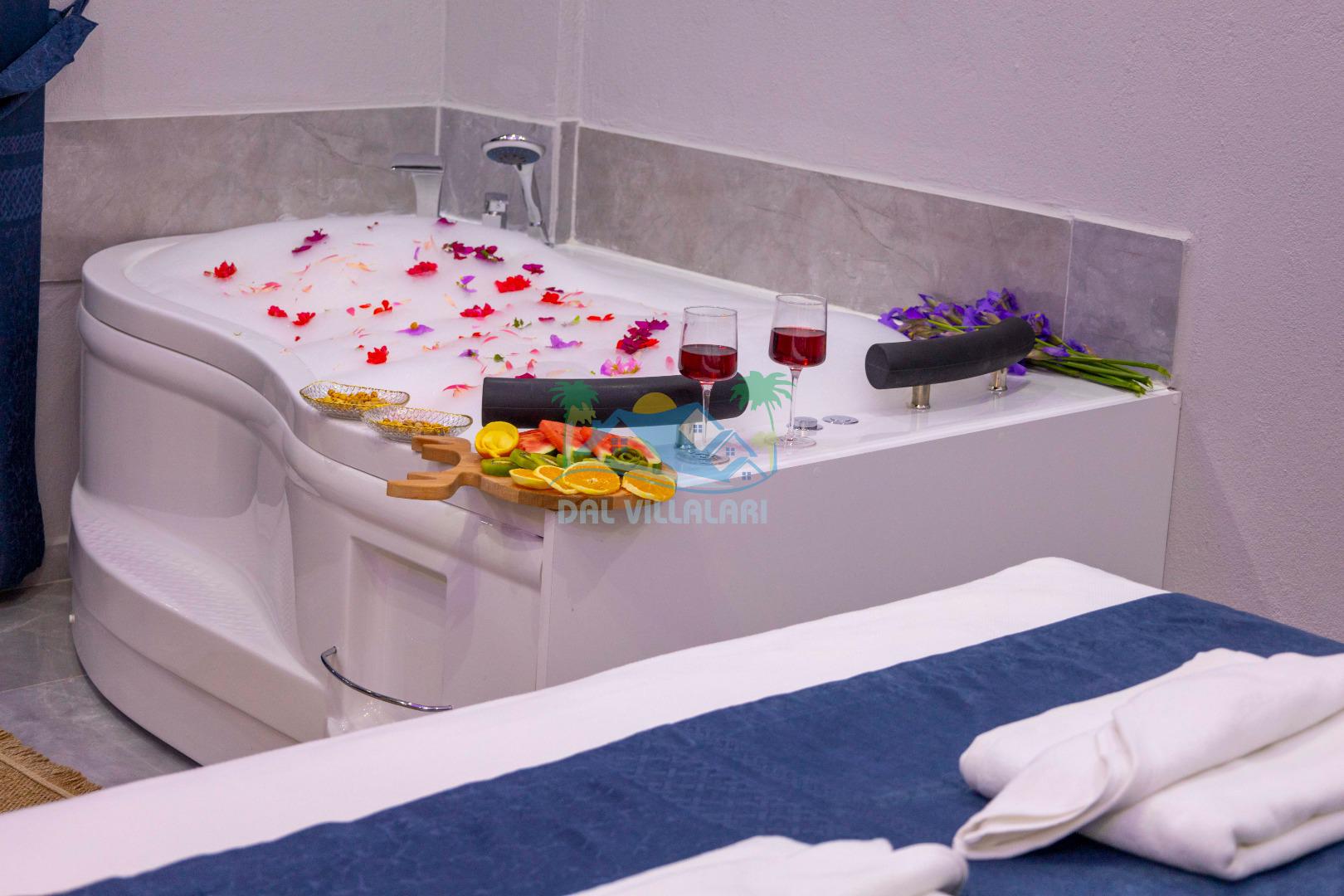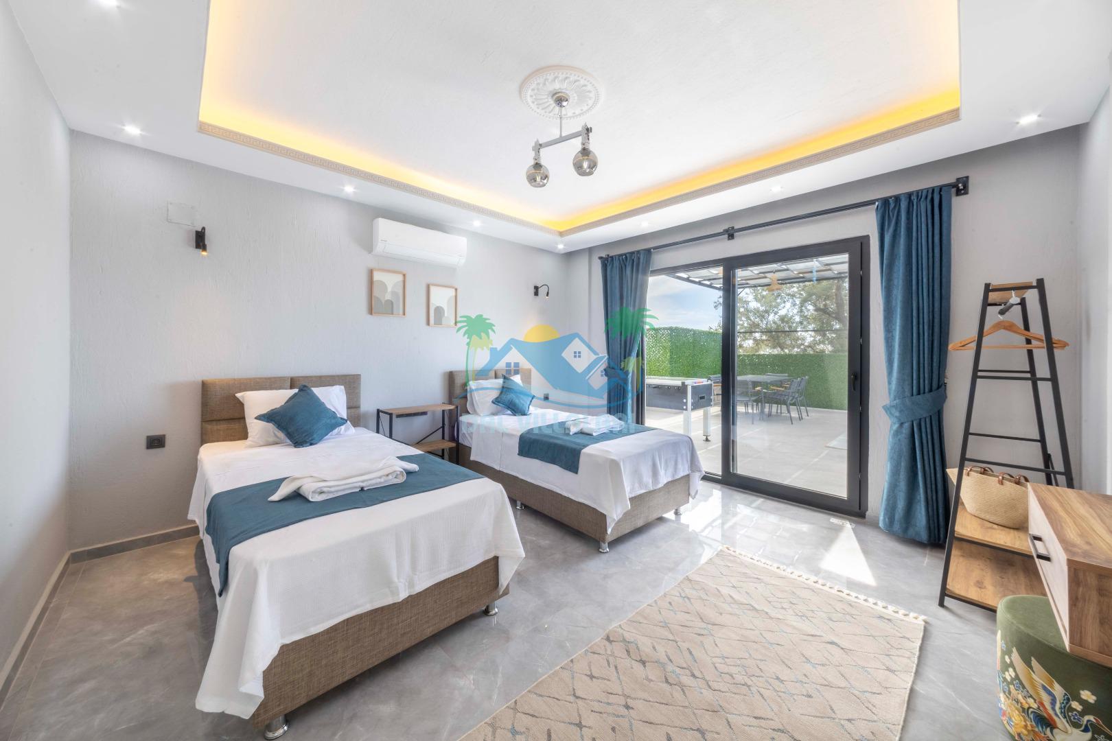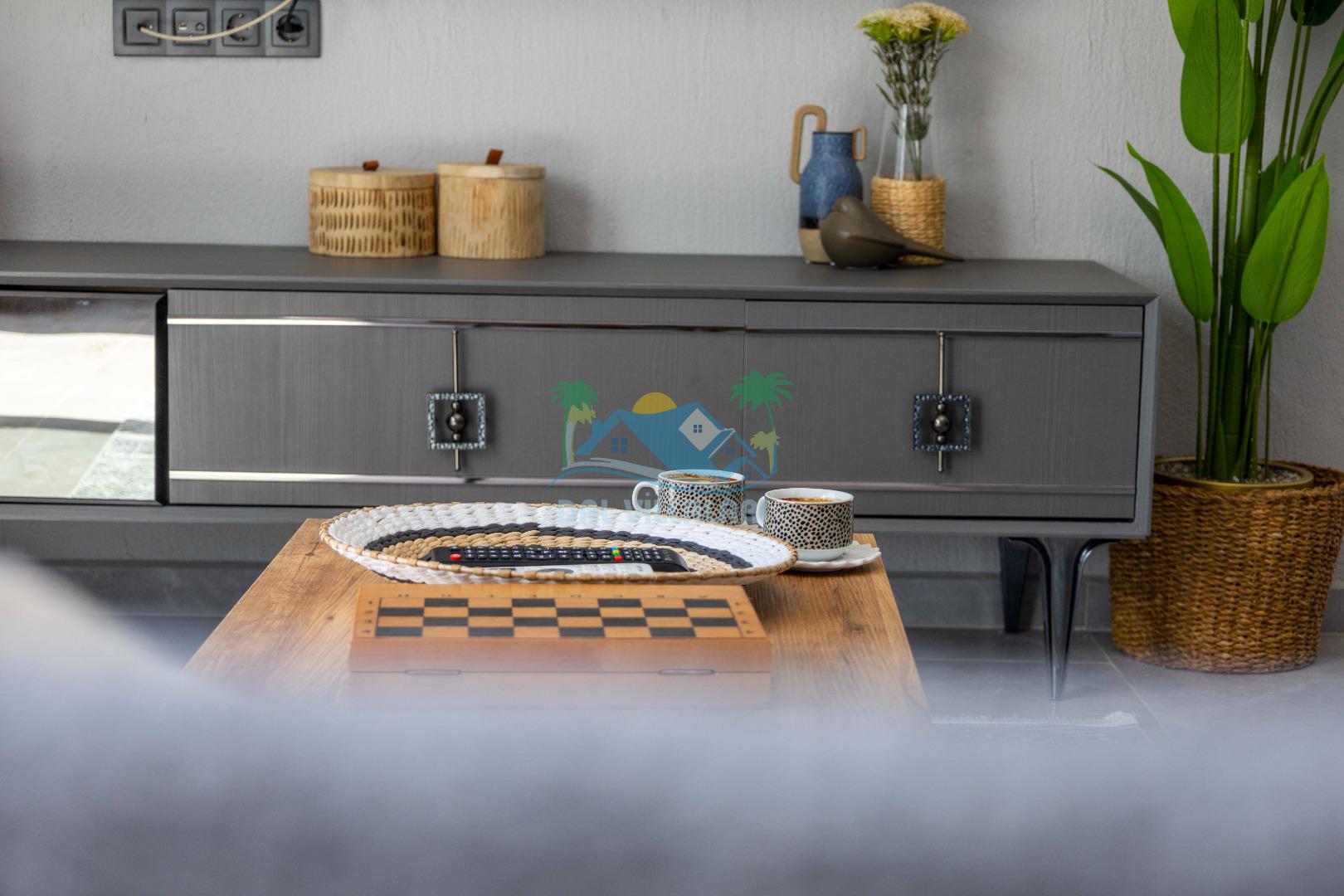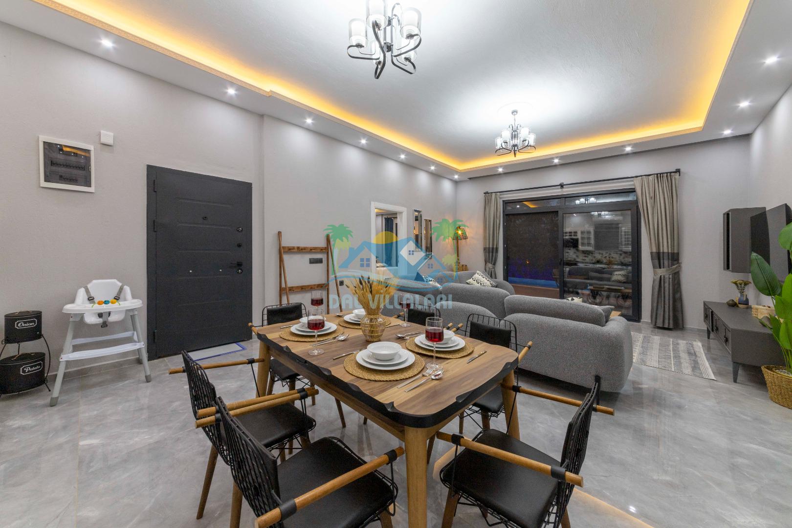 Villamızın içerisinde iki yatak odası ve iki adet banyo bulunmaktadır. Birinci yatak odası içerisinde, iki adet tek kişilik yatak, banyo, ve klima; İkinci yatak odası içerisinde, bir adet çift kişilik yatak, banyo, jakuzi, klima ve tv bulunmaktadır. Salon içerisinde mutfak, oturma grubu, televizyon ve klima yer almaktadır.