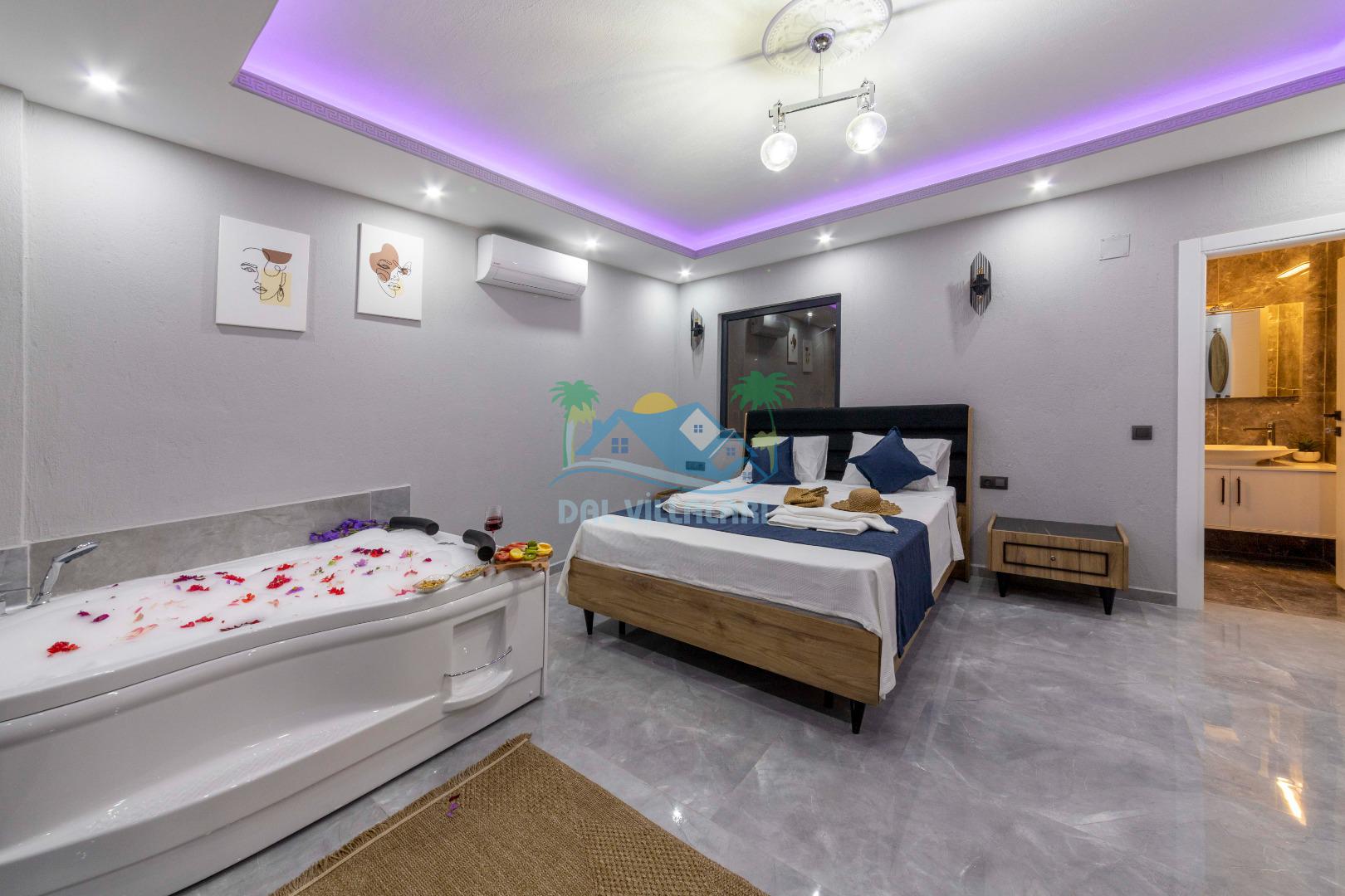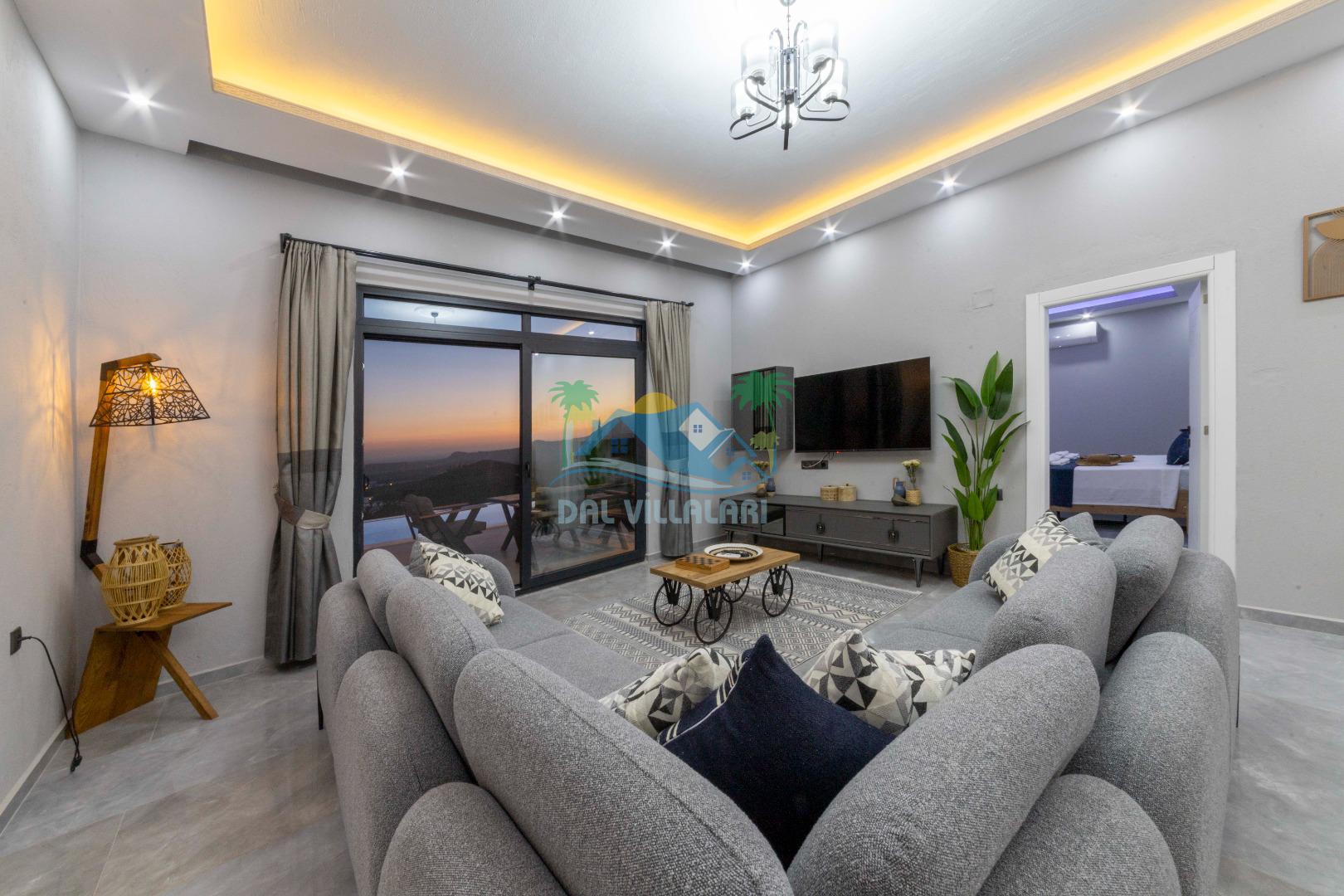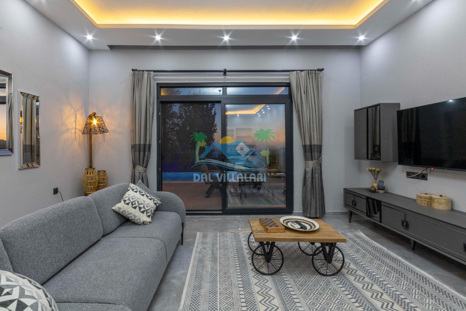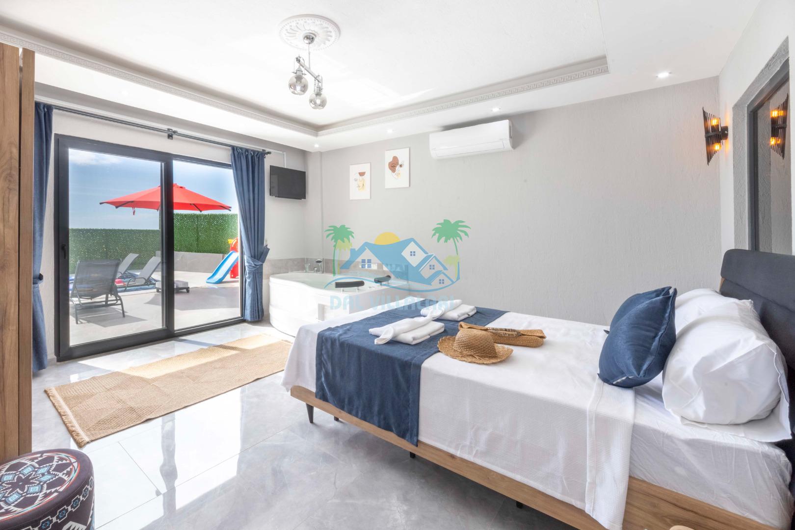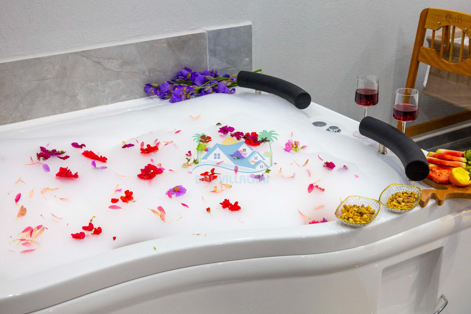 Villamızın içerisinde iki yatak odası ve iki adet banyo bulunmaktadır. Birinci yatak odası içerisinde, iki adet tek kişilik yatak, banyo, ve klima; İkinci yatak odası içerisinde, bir adet çift kişilik yatak, banyo, jakuzi, klima ve tv bulunmaktadır. Salon içerisinde mutfak, oturma grubu, televizyon ve klima yer almaktadır.