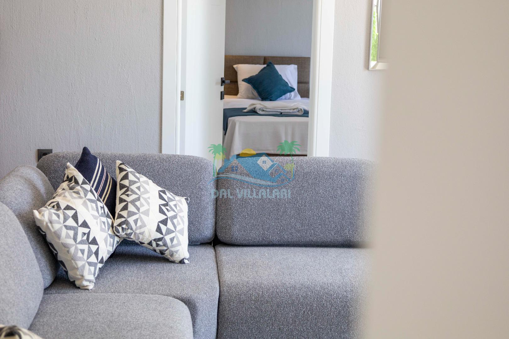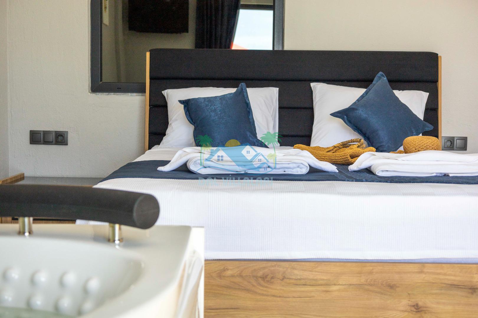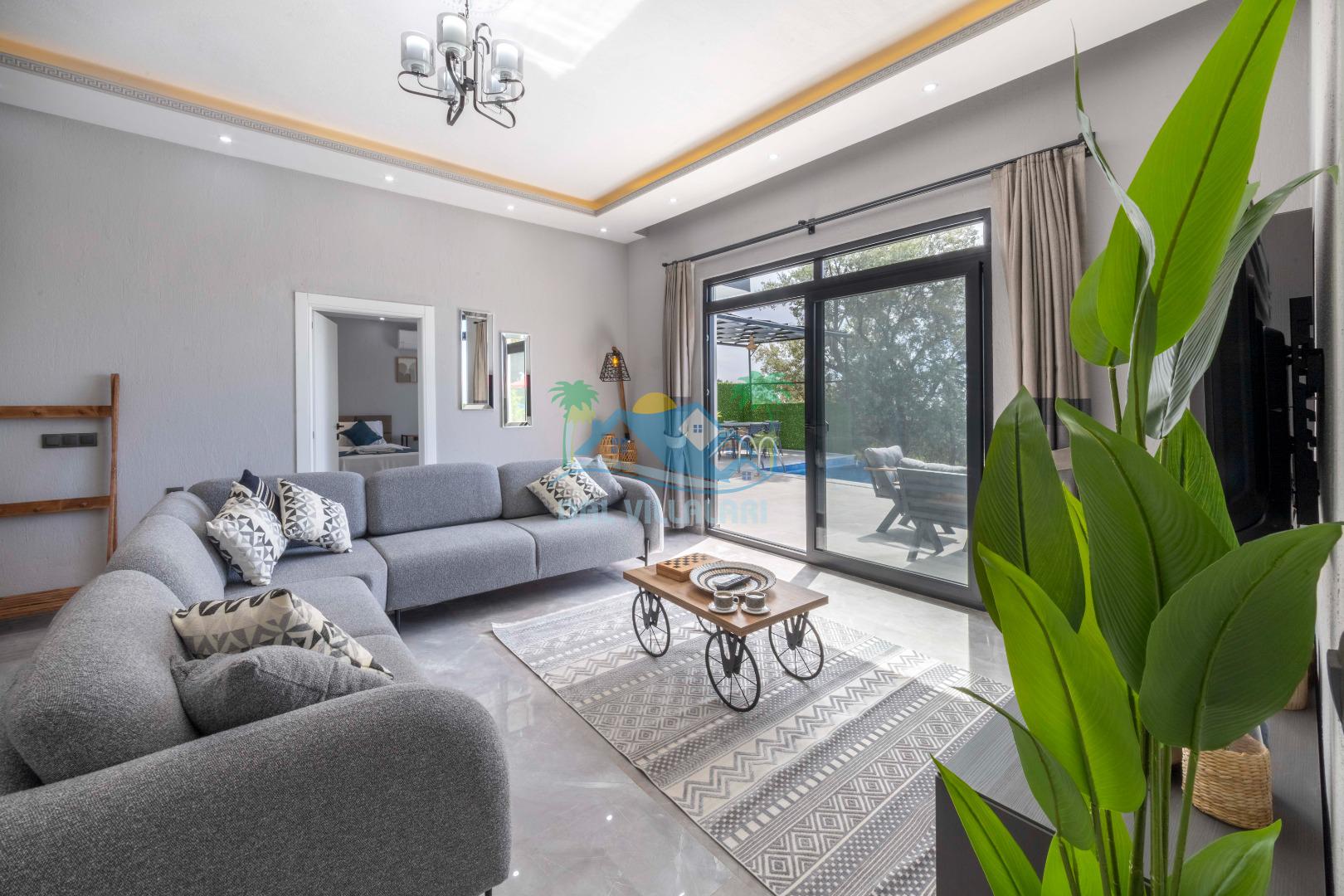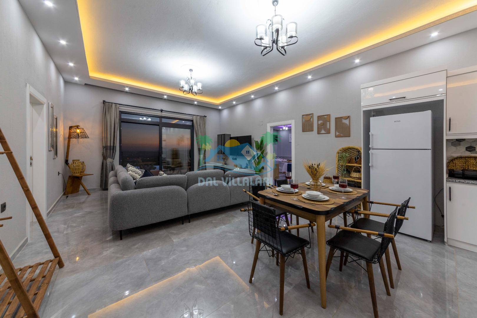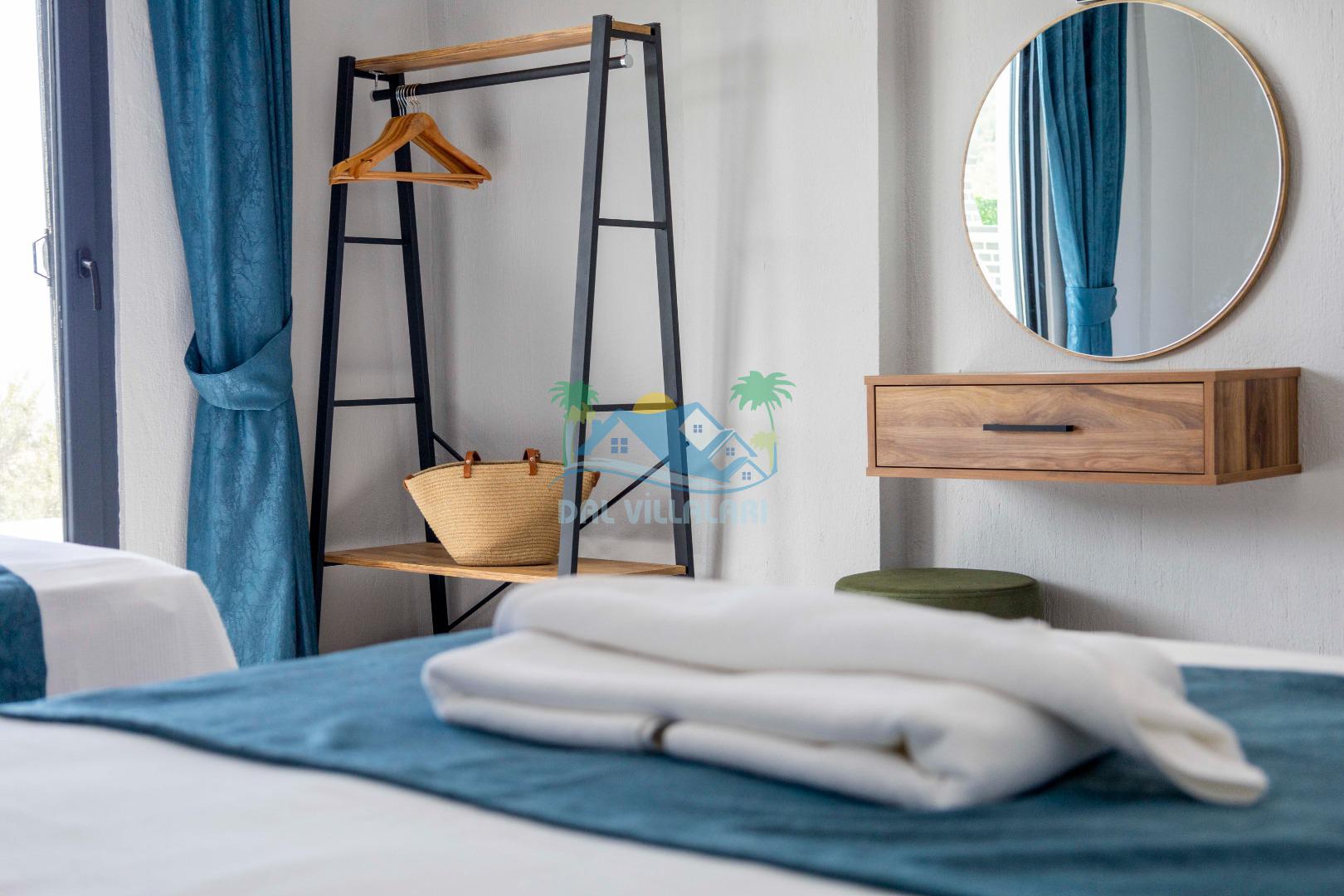 Villamızın içerisinde iki yatak odası ve iki adet banyo bulunmaktadır. Birinci yatak odası içerisinde, iki adet tek kişilik yatak, banyo, ve klima; İkinci yatak odası içerisinde, bir adet çift kişilik yatak, banyo, jakuzi, klima ve tv bulunmaktadır. Salon içerisinde mutfak, oturma grubu, televizyon ve klima yer almaktadır.