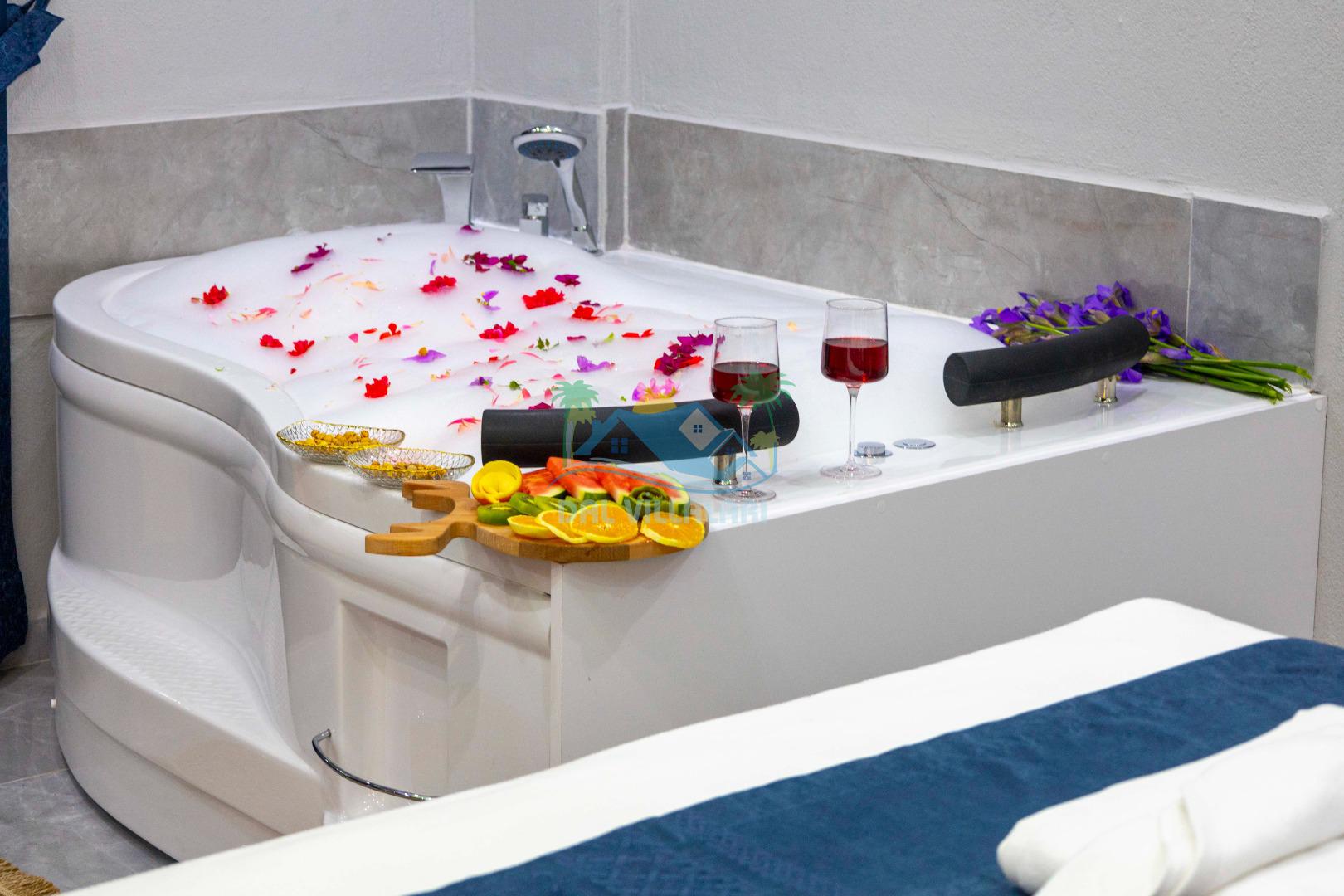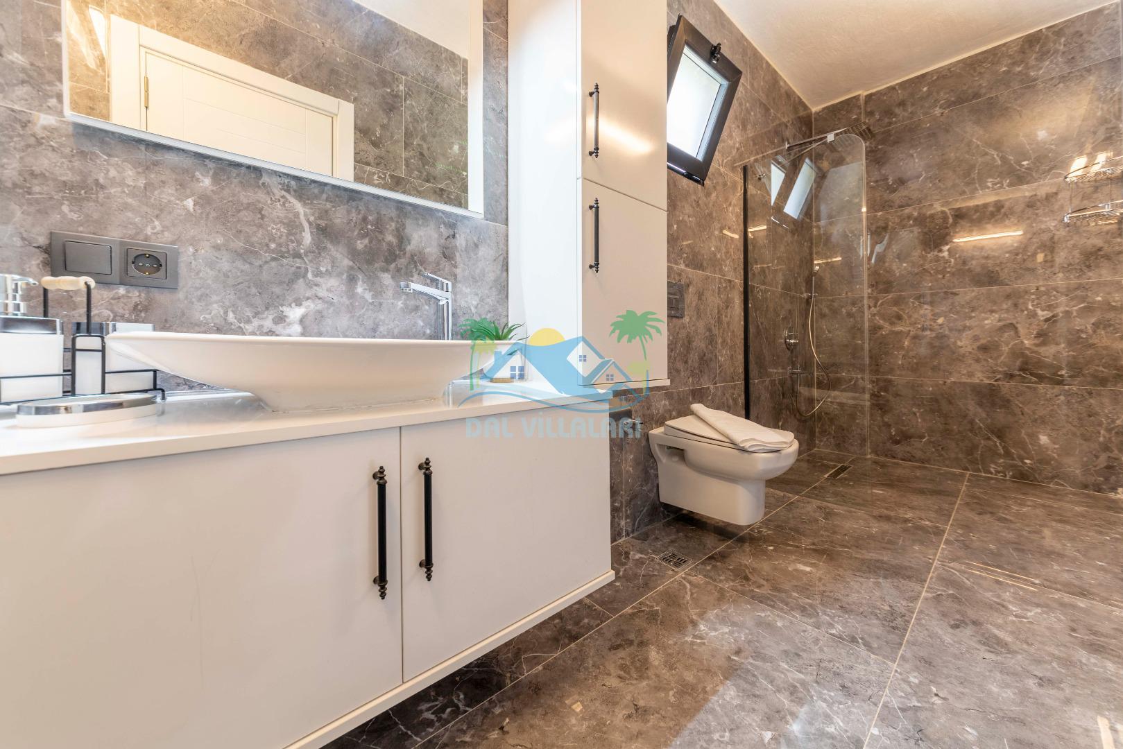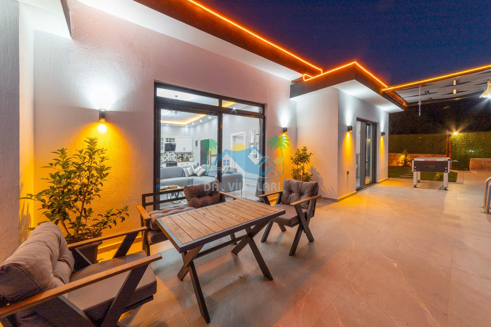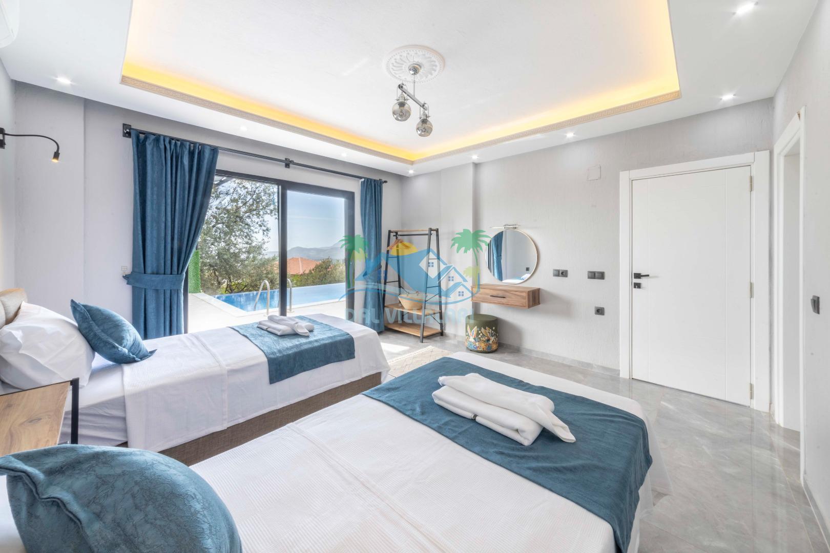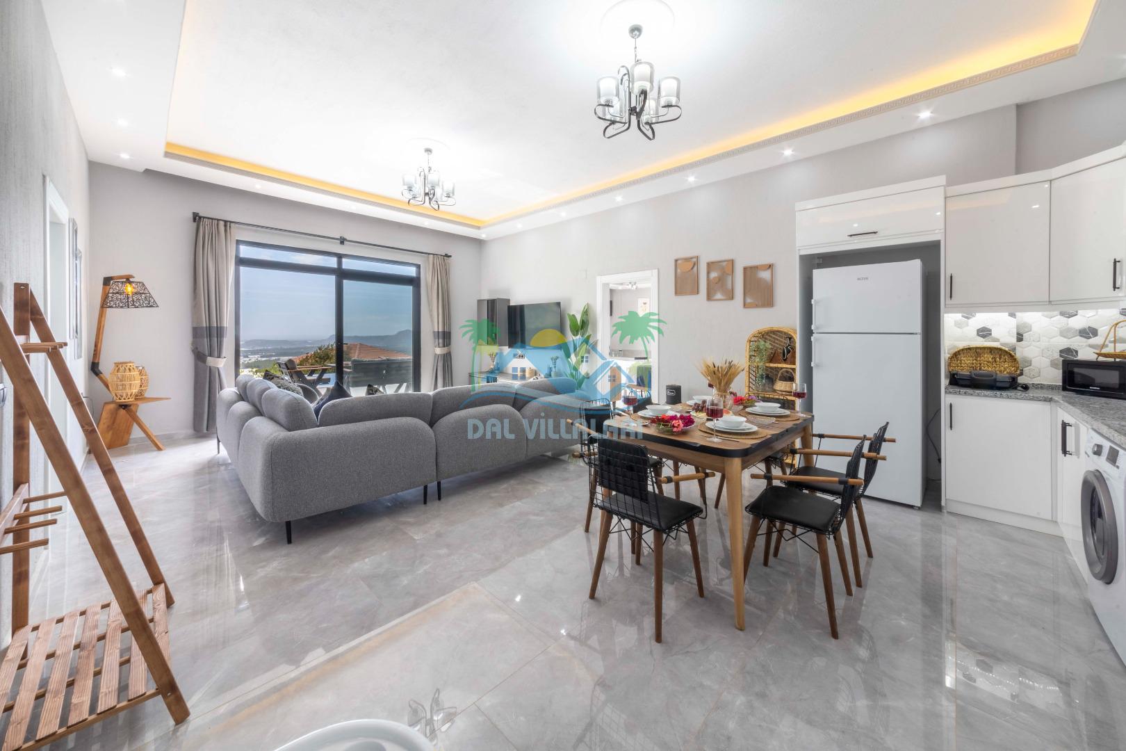 Villamızın içerisinde iki yatak odası ve iki adet banyo bulunmaktadır. Birinci yatak odası içerisinde, iki adet tek kişilik yatak, banyo, ve klima; İkinci yatak odası içerisinde, bir adet çift kişilik yatak, banyo, jakuzi, klima ve tv bulunmaktadır. Salon içerisinde mutfak, oturma grubu, televizyon ve klima yer almaktadır.