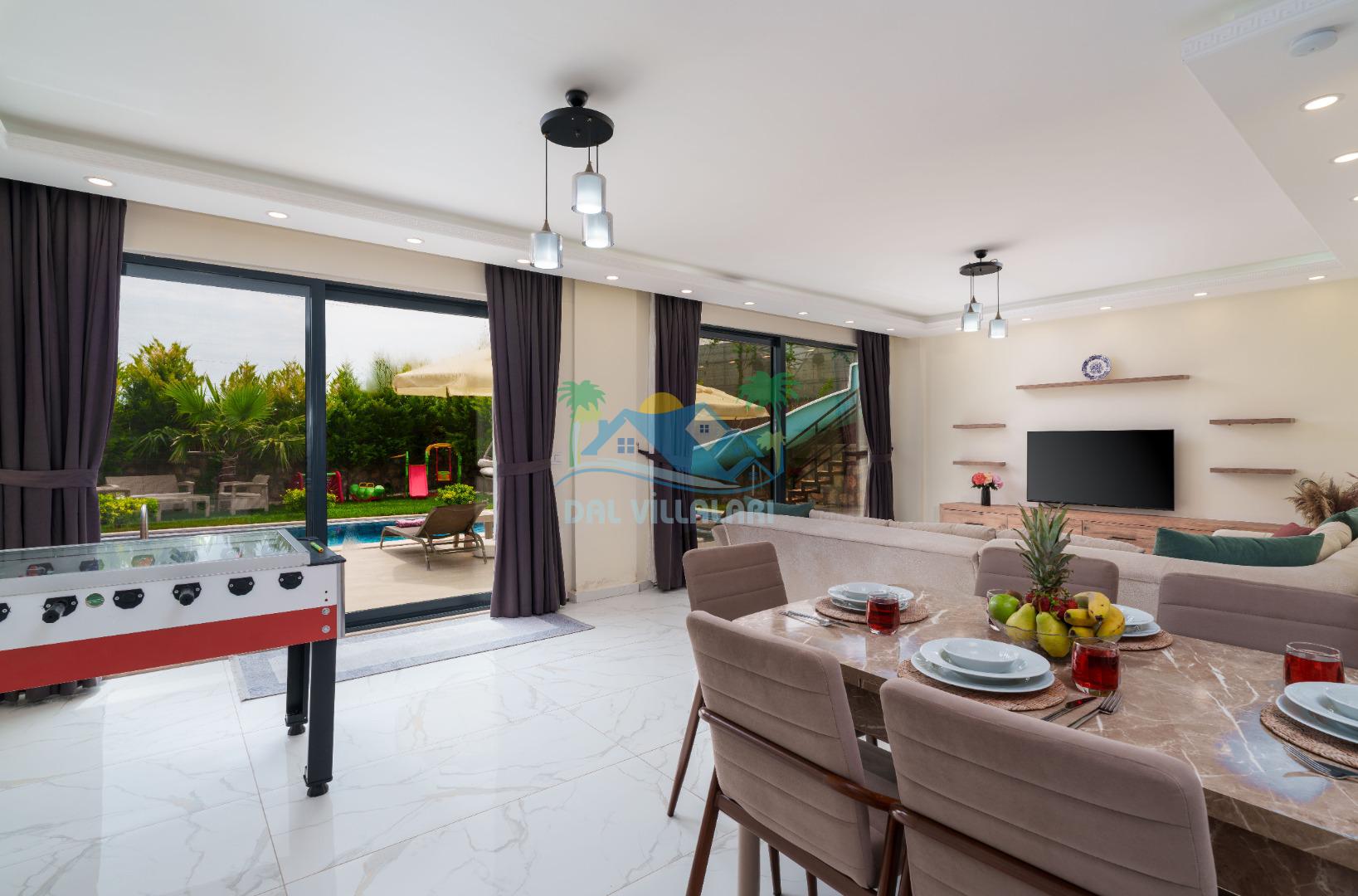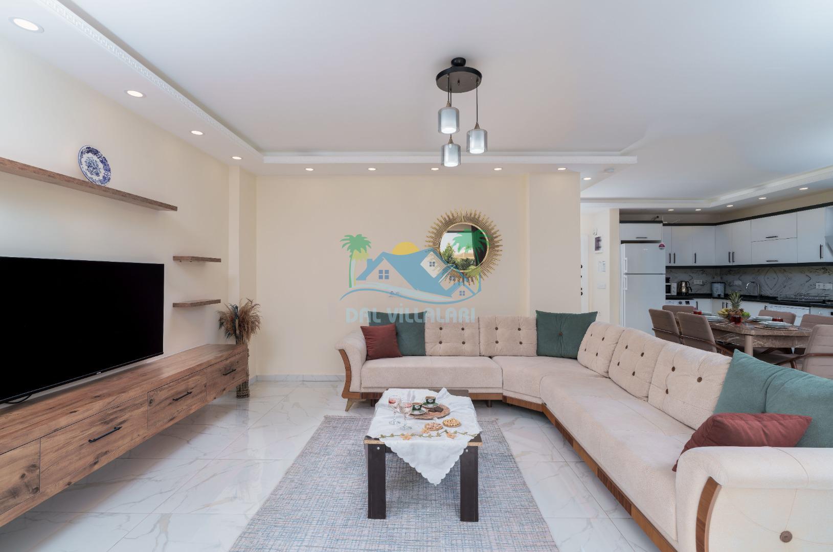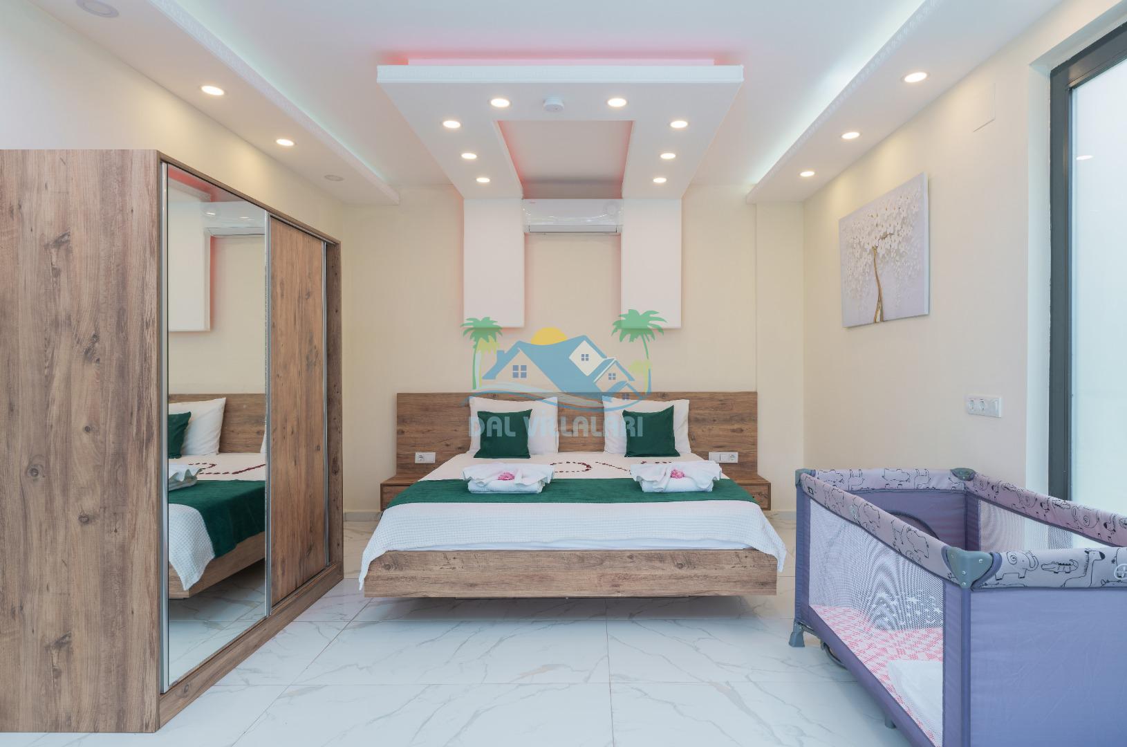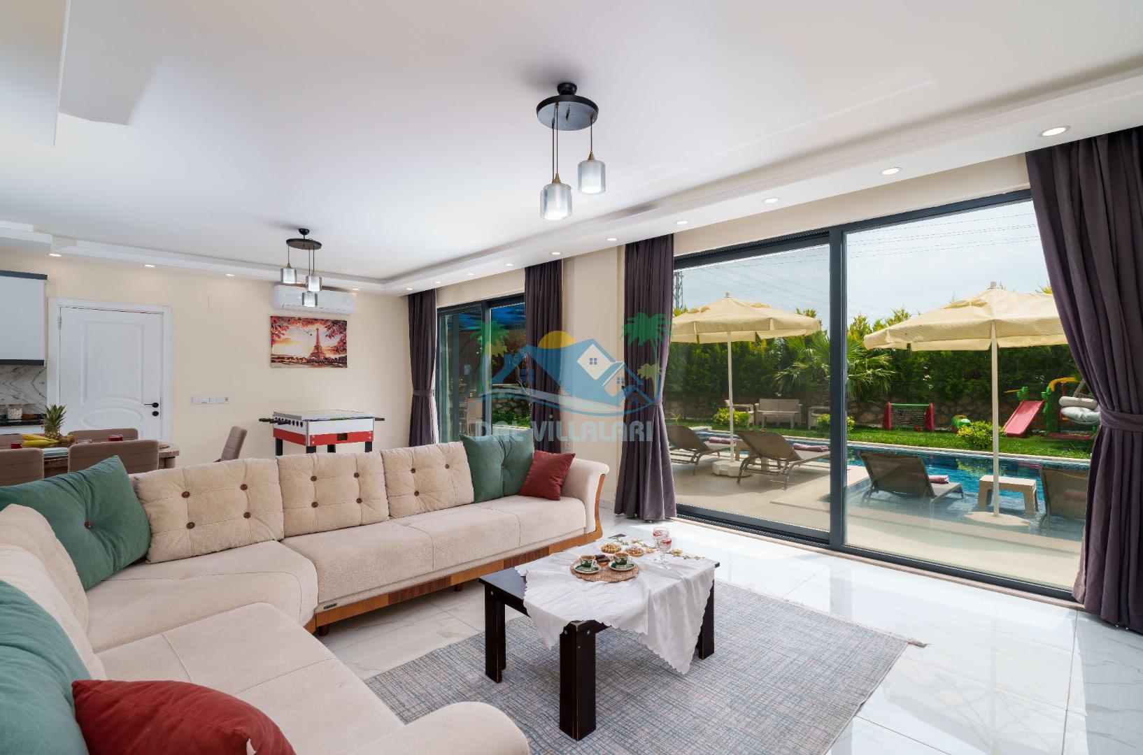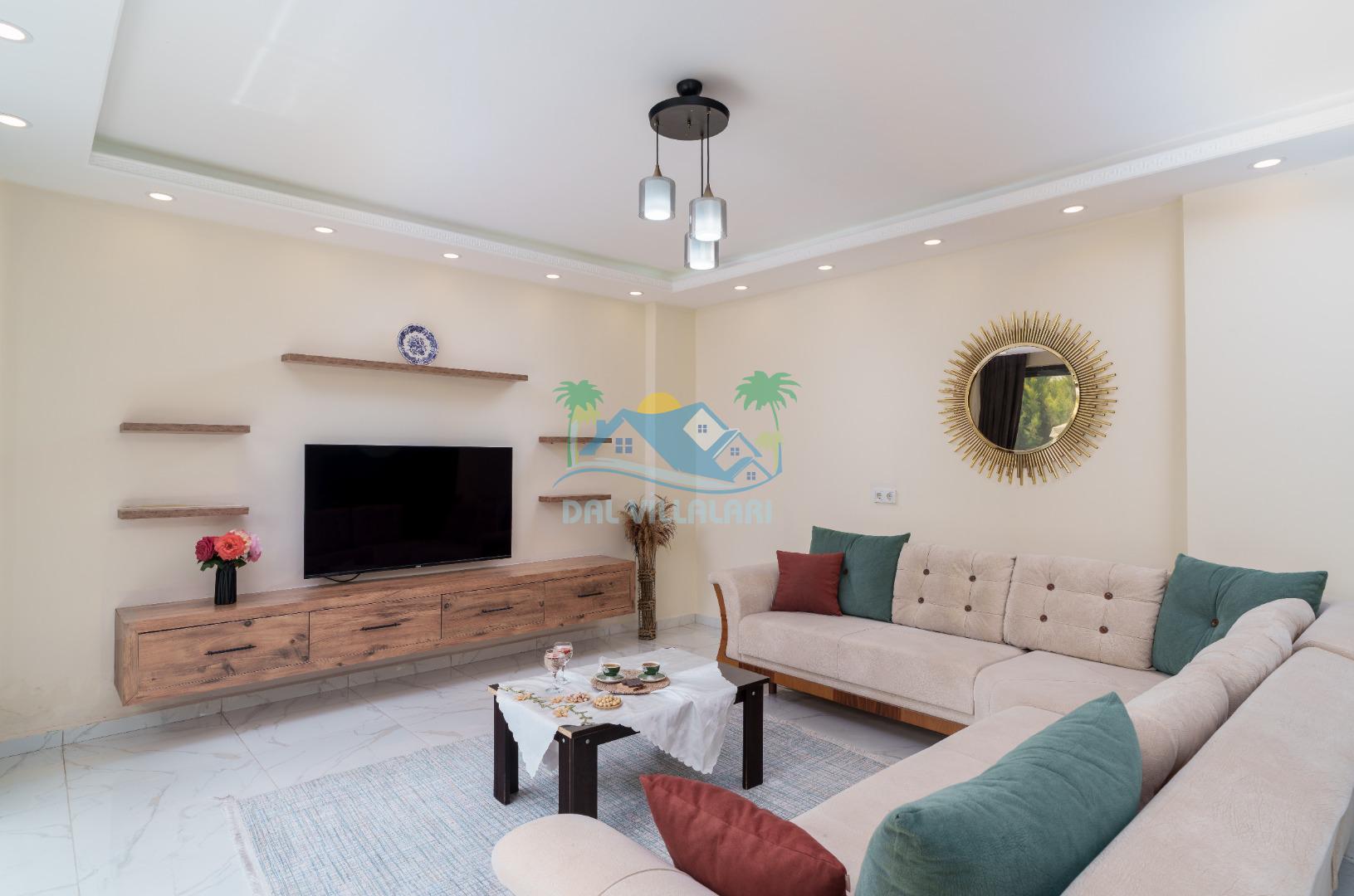 Villamız iki yatak odalıdır. Birinci yatak odasında çift kişilik yatak, klima, banyo ve jakuzi; İkinci odada ise iki tek kişilik yatak, klima ve banyo bulunmaktadır. Salon içerisinde mutfak, oturma grubu, televizyon ve klima mevcuttur.