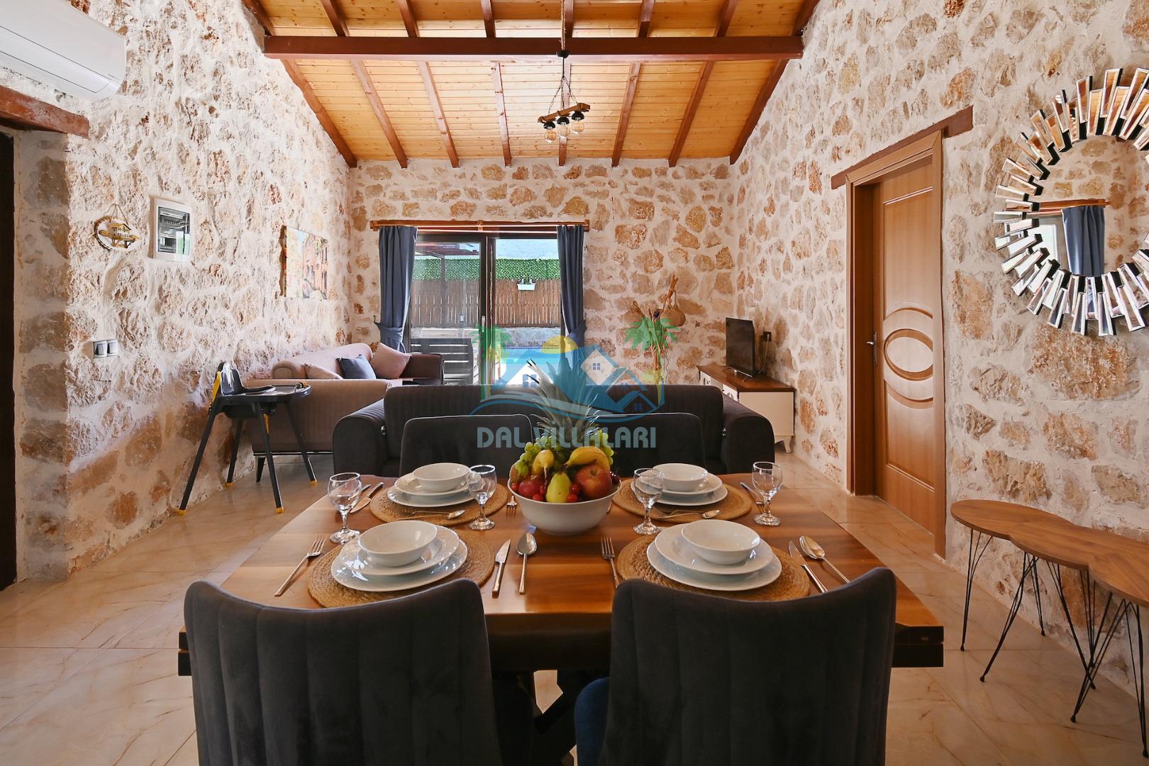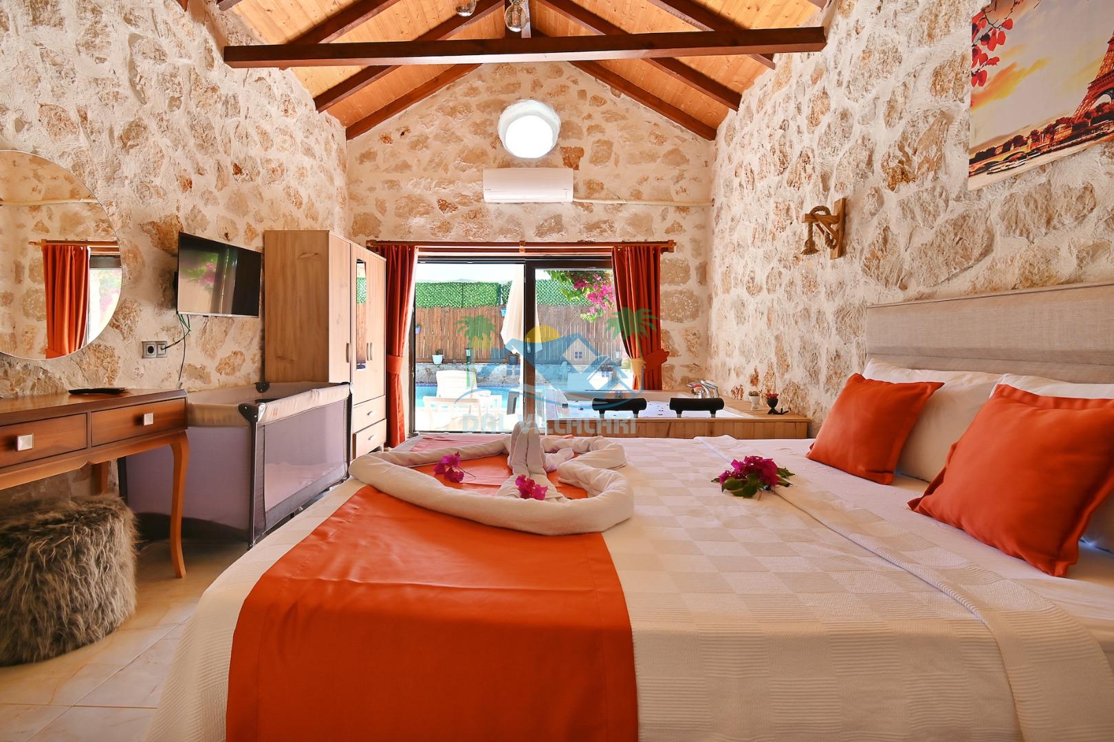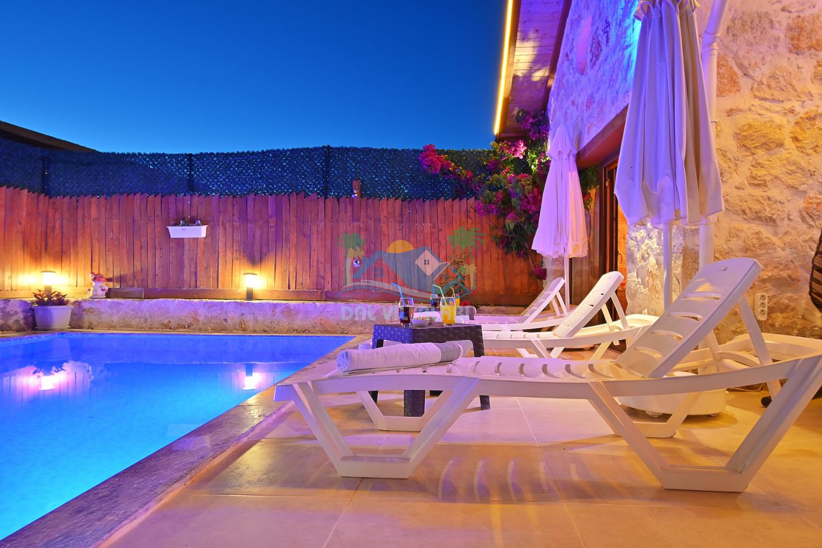 Kalkan/Yeşilköy mevkiinde konumlandırılmış,2 yatak düzenine sahip 4 kişilik konaklama kapasitesiyle taş bir yapıya sahiptir. Korunaklı haledeki havuz alanıyla size özel bir tatil geçirebilirsiniz.
