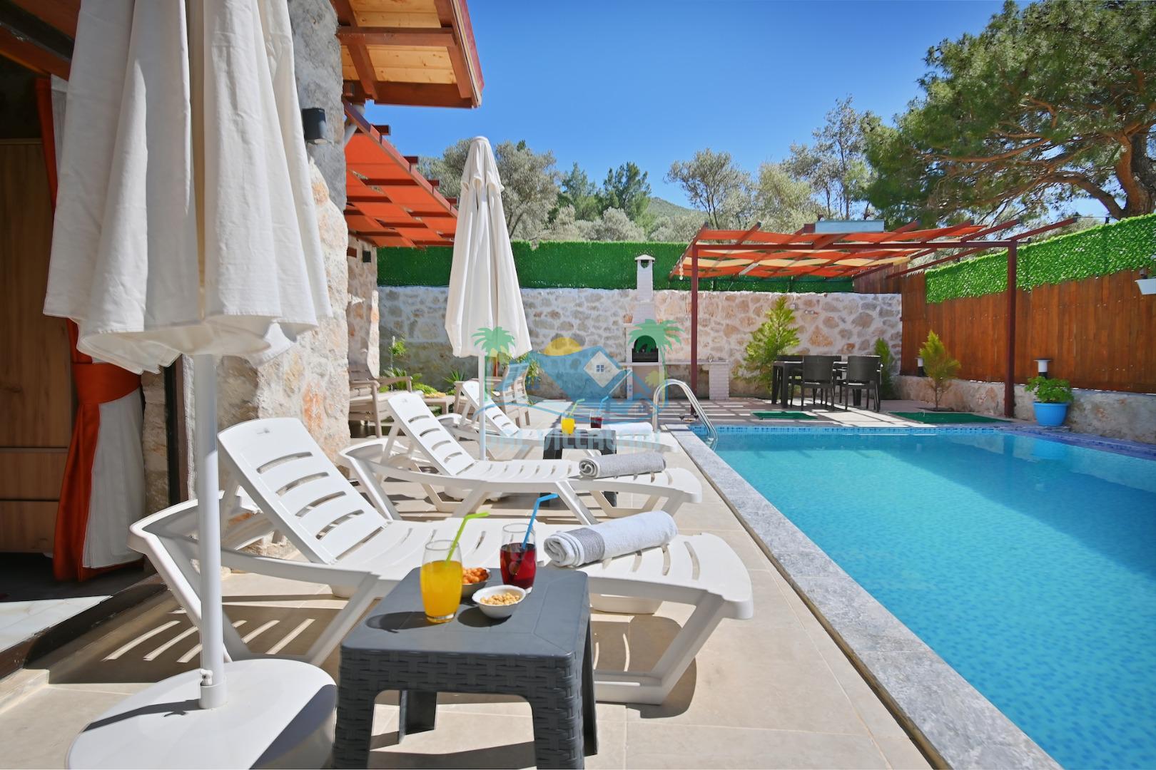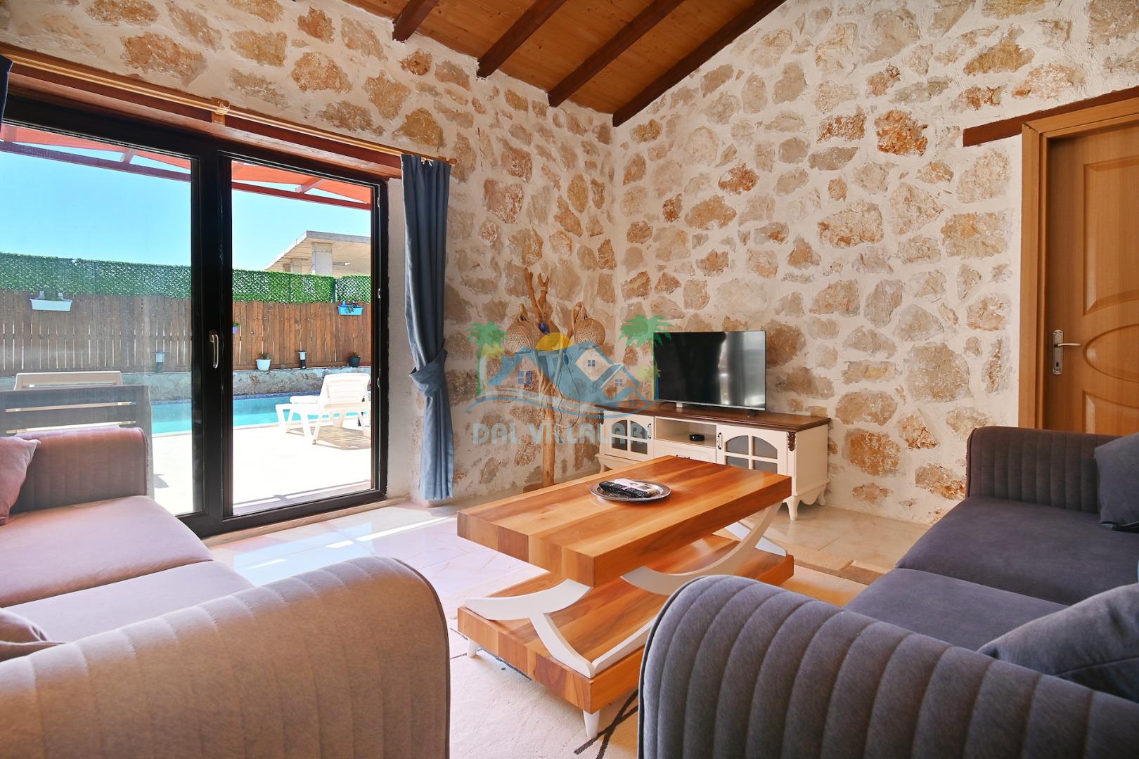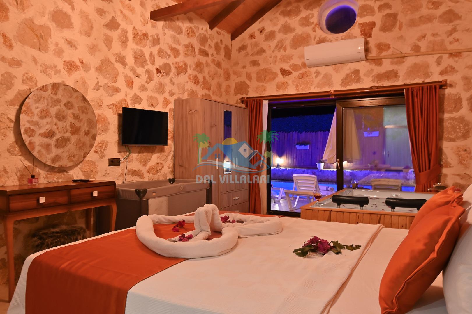 Kalkan/Yeşilköy mevkiinde konumlandırılmış,2 yatak düzenine sahip 4 kişilik konaklama kapasitesiyle taş bir yapıya sahiptir. Korunaklı haledeki havuz alanıyla size özel bir tatil geçirebilirsiniz.