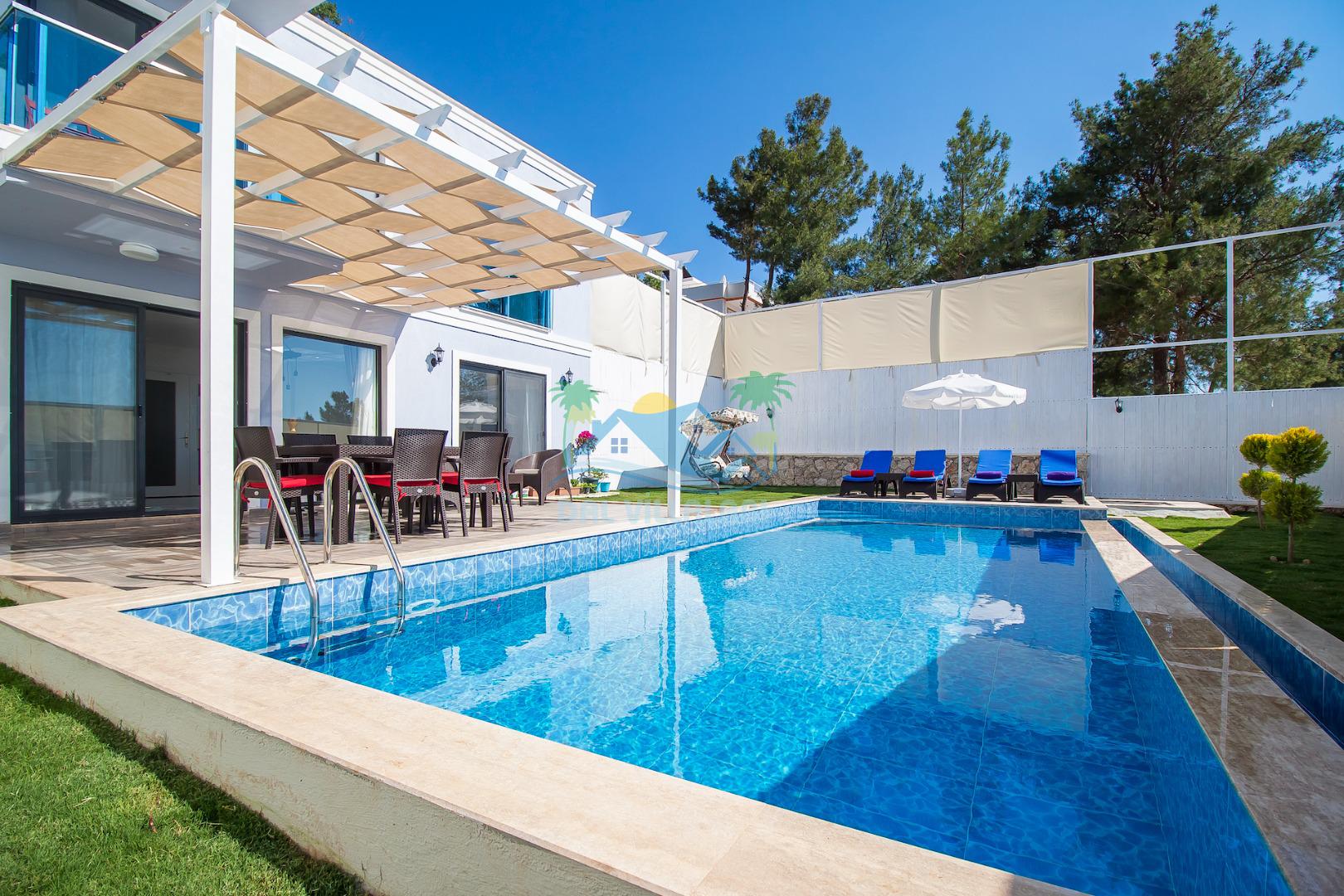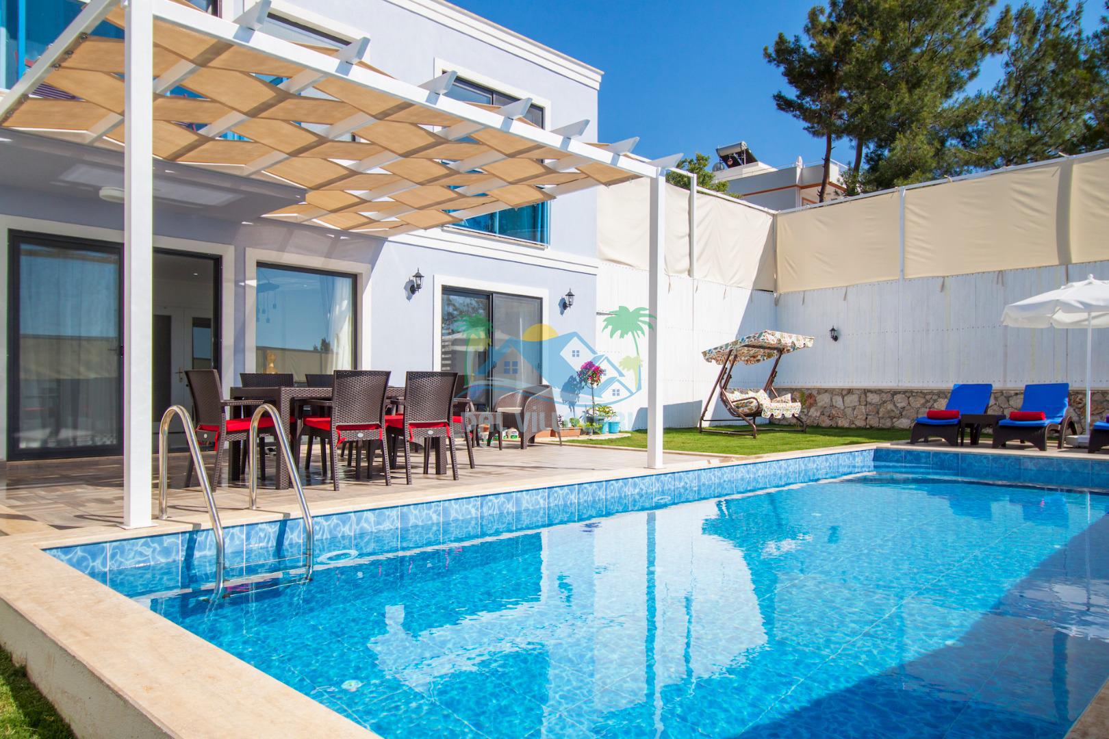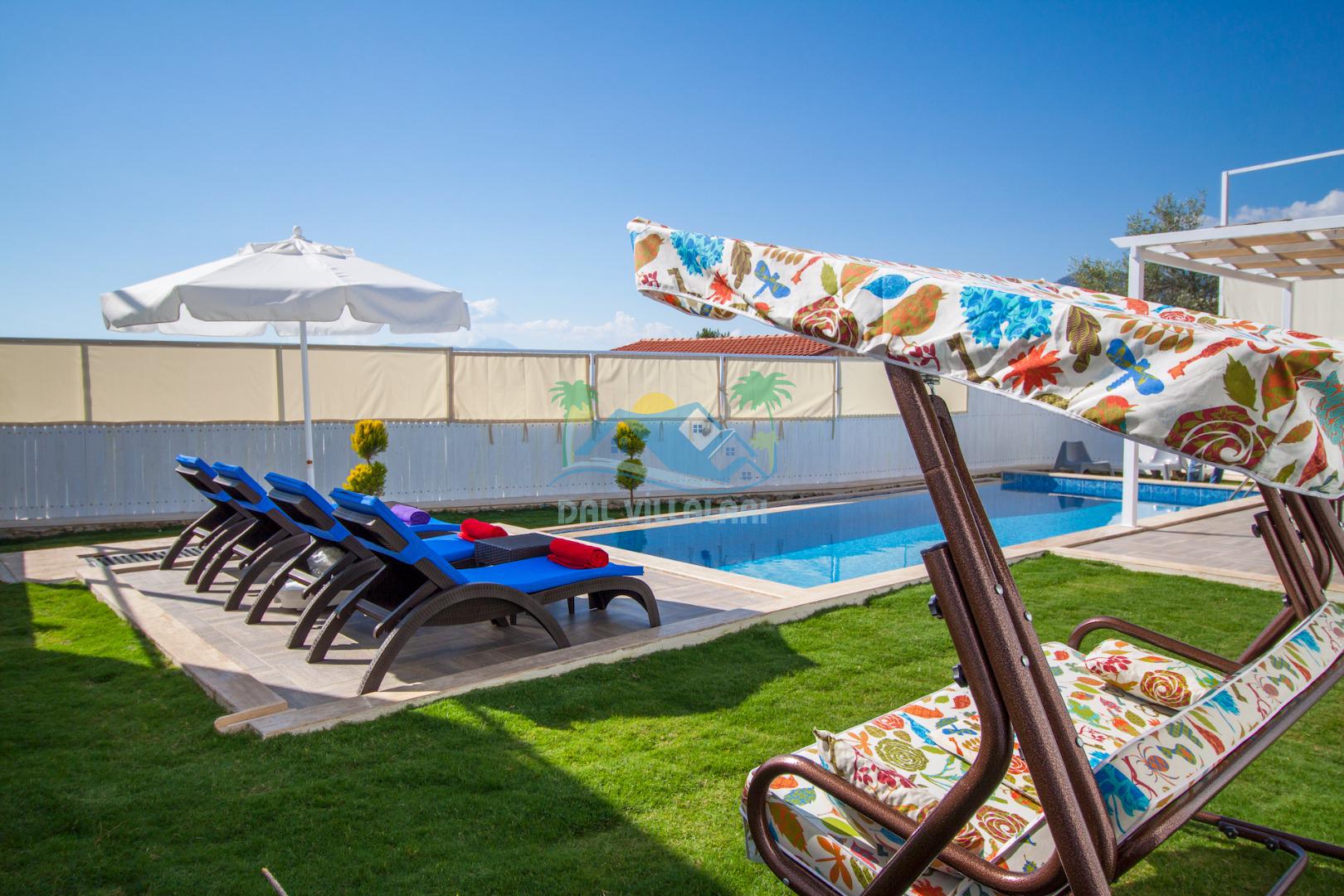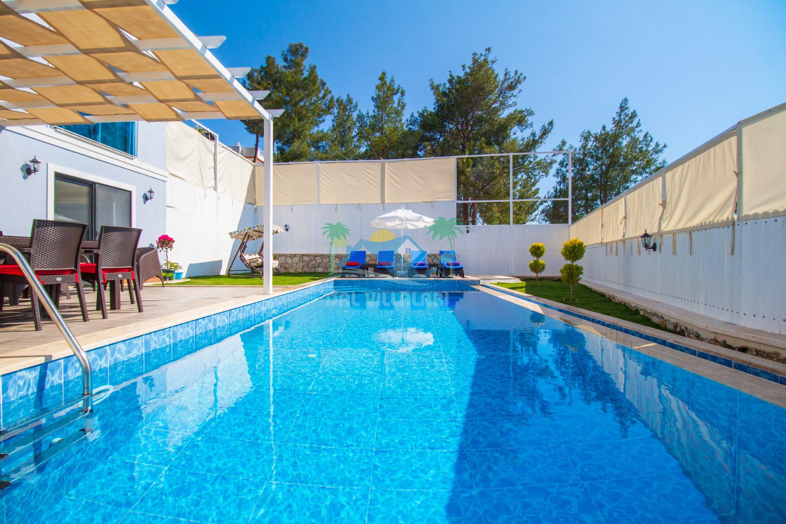 Havuz ve bahçe alanı tam korunaklıdır. Balayı çiftleri ve muhafazakar aileler için ideal bir tatil villadır.