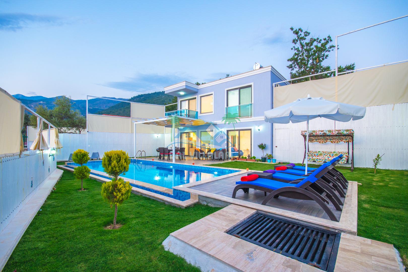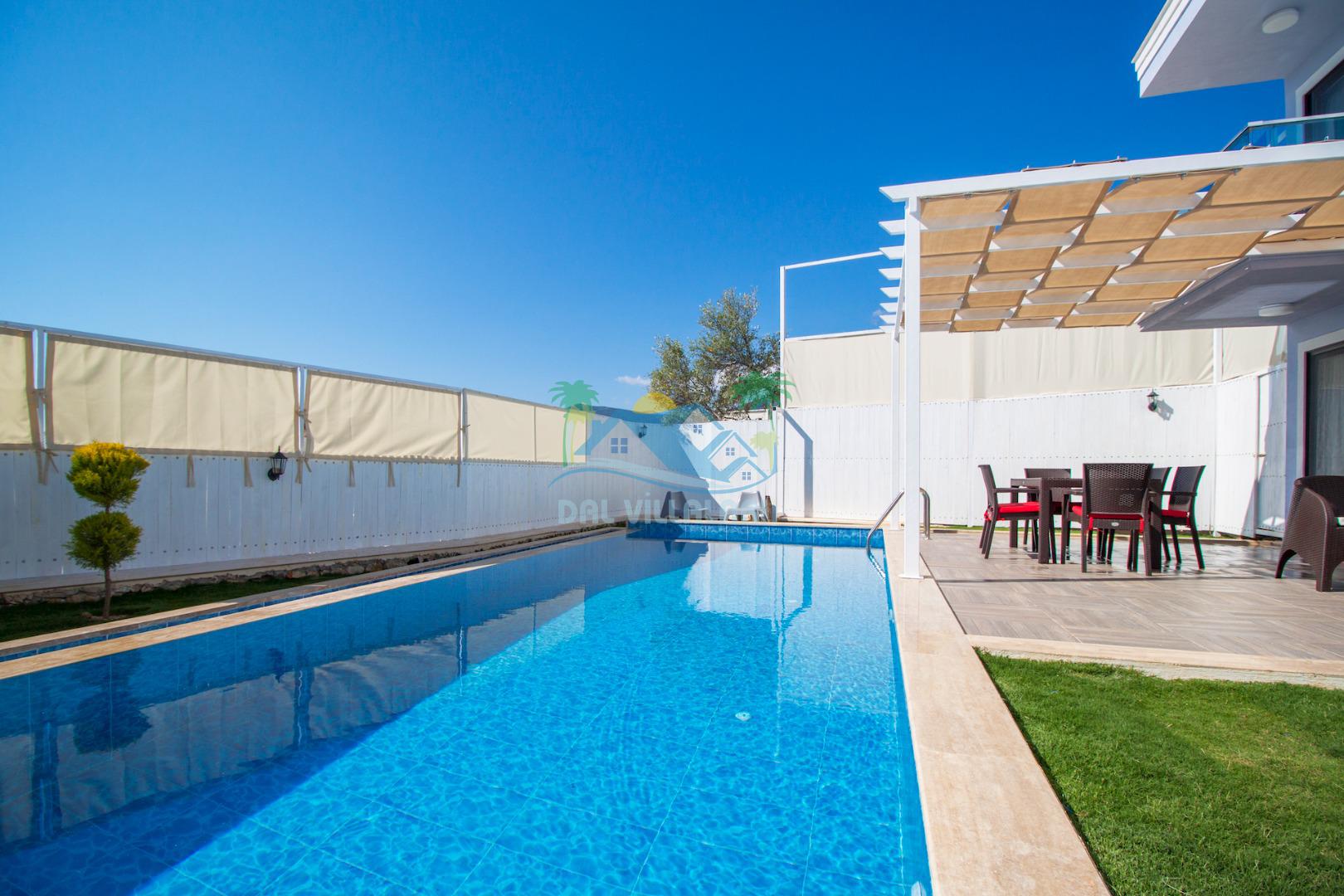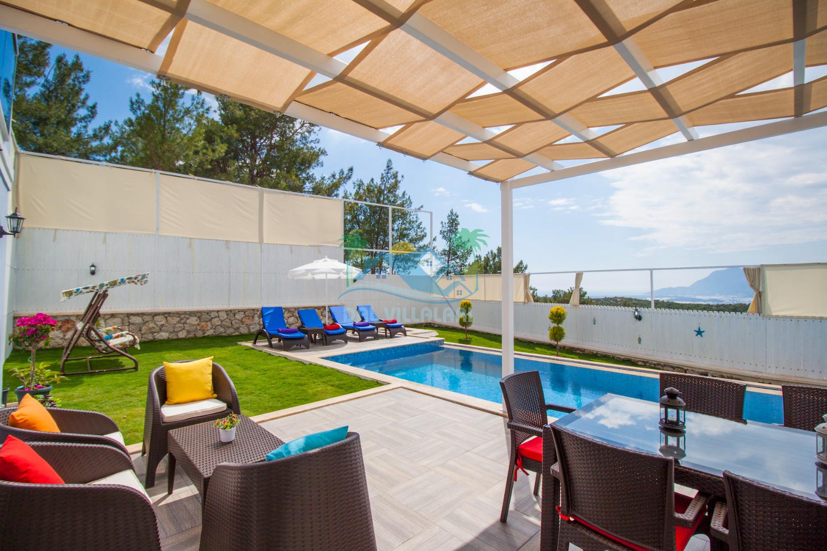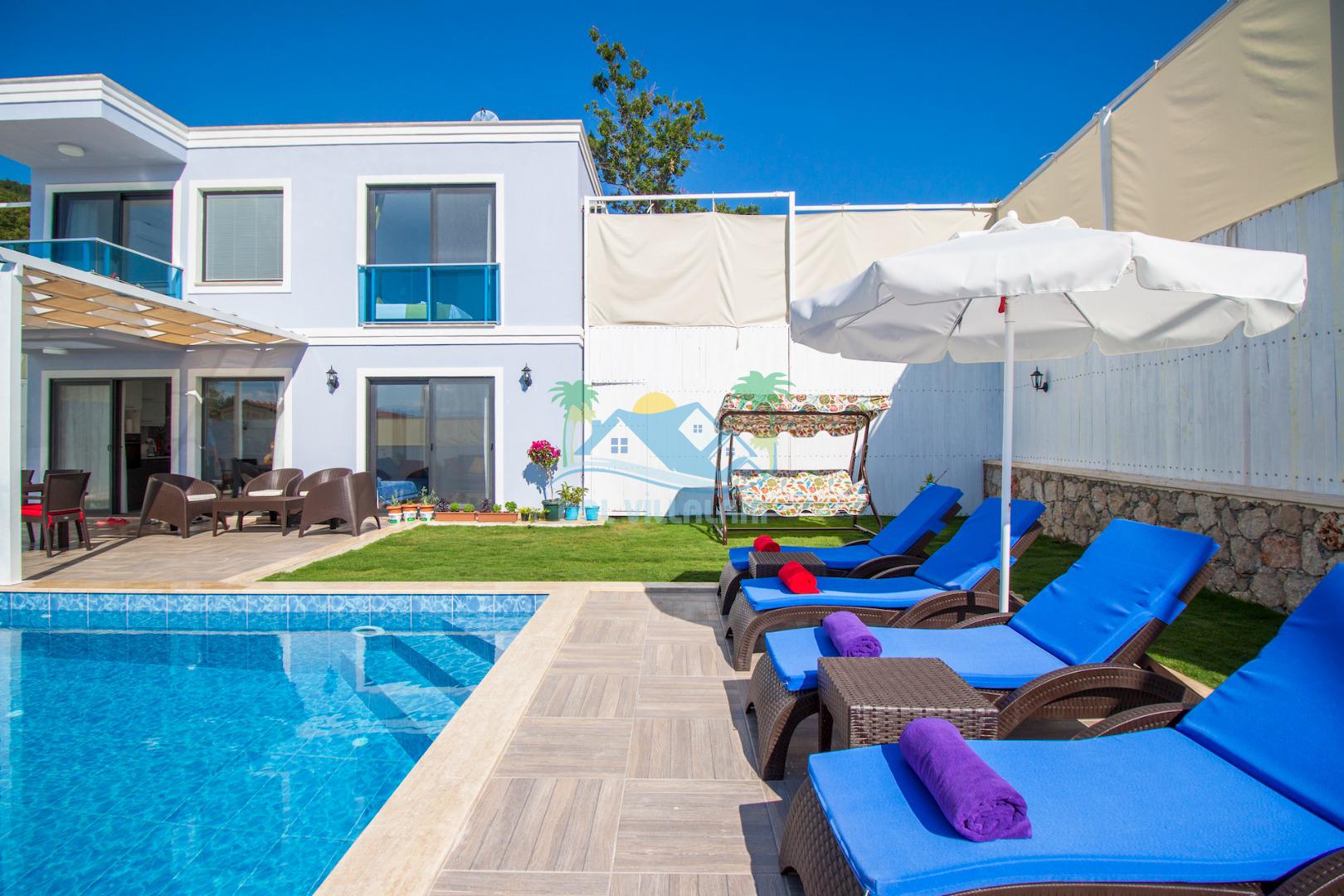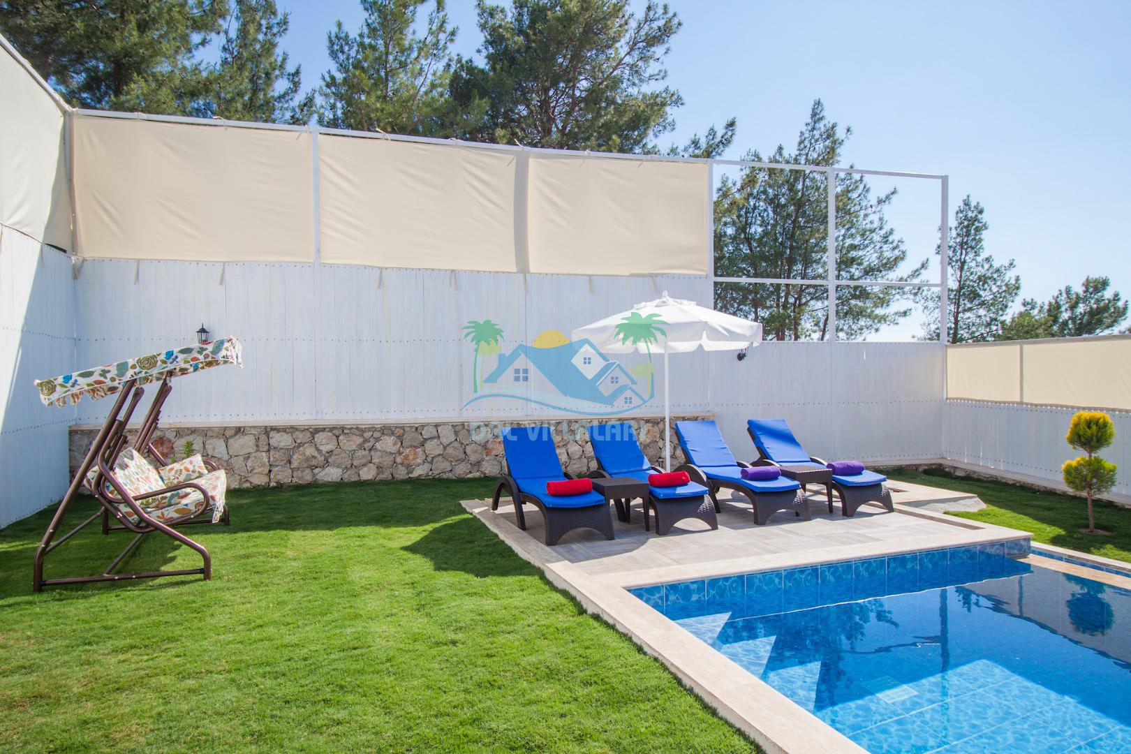 Havuz ve bahçe alanı tam korunaklıdır. Balayı çiftleri ve muhafazakar aileler için ideal bir tatil villadır.