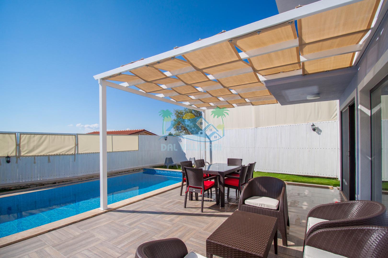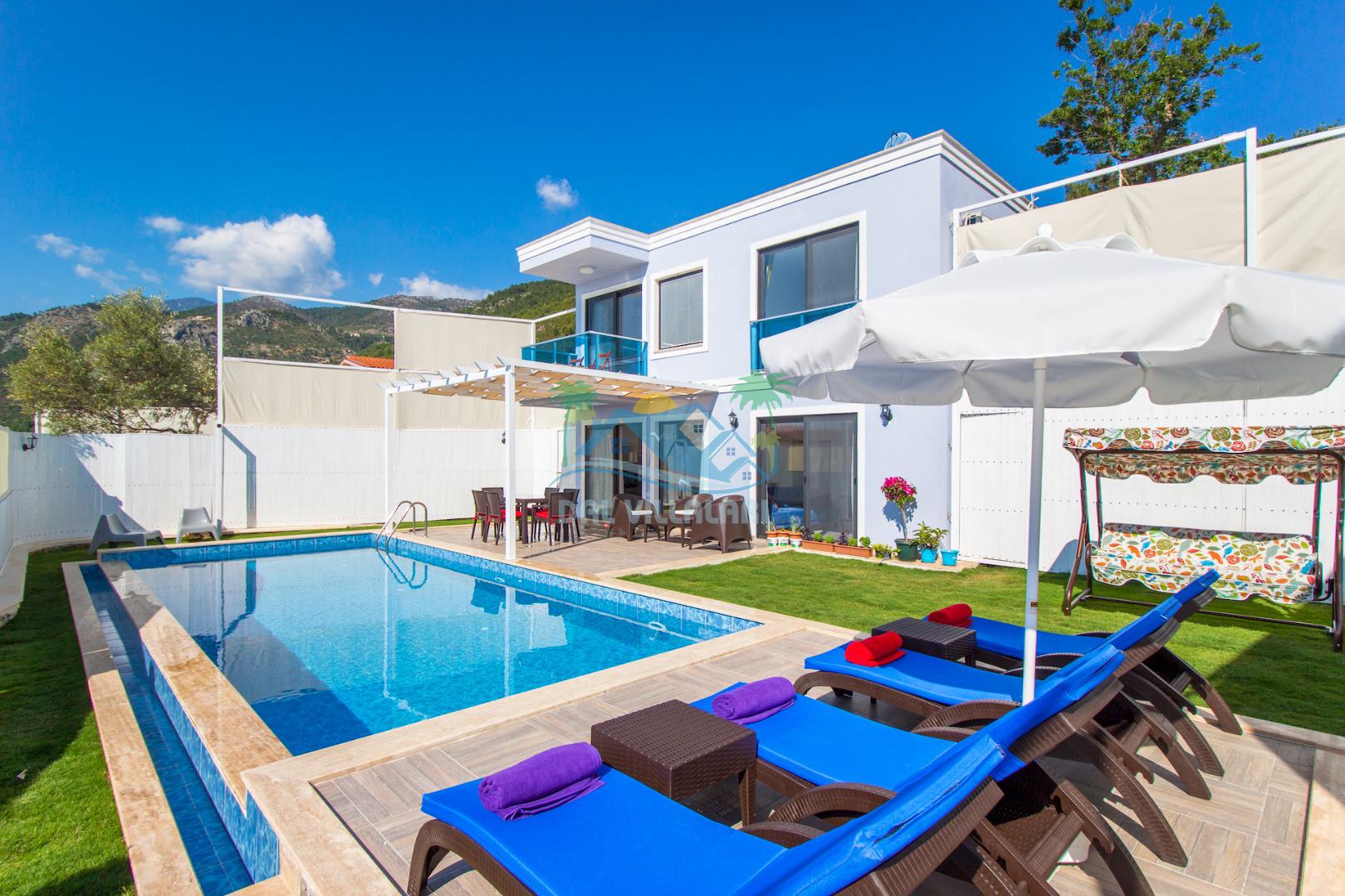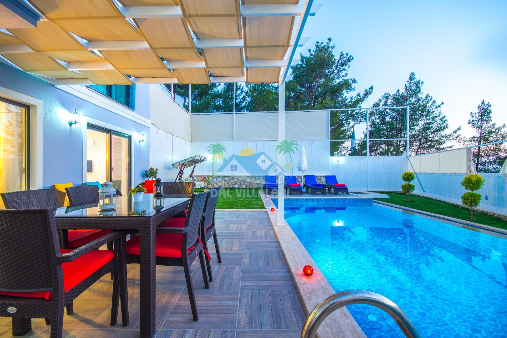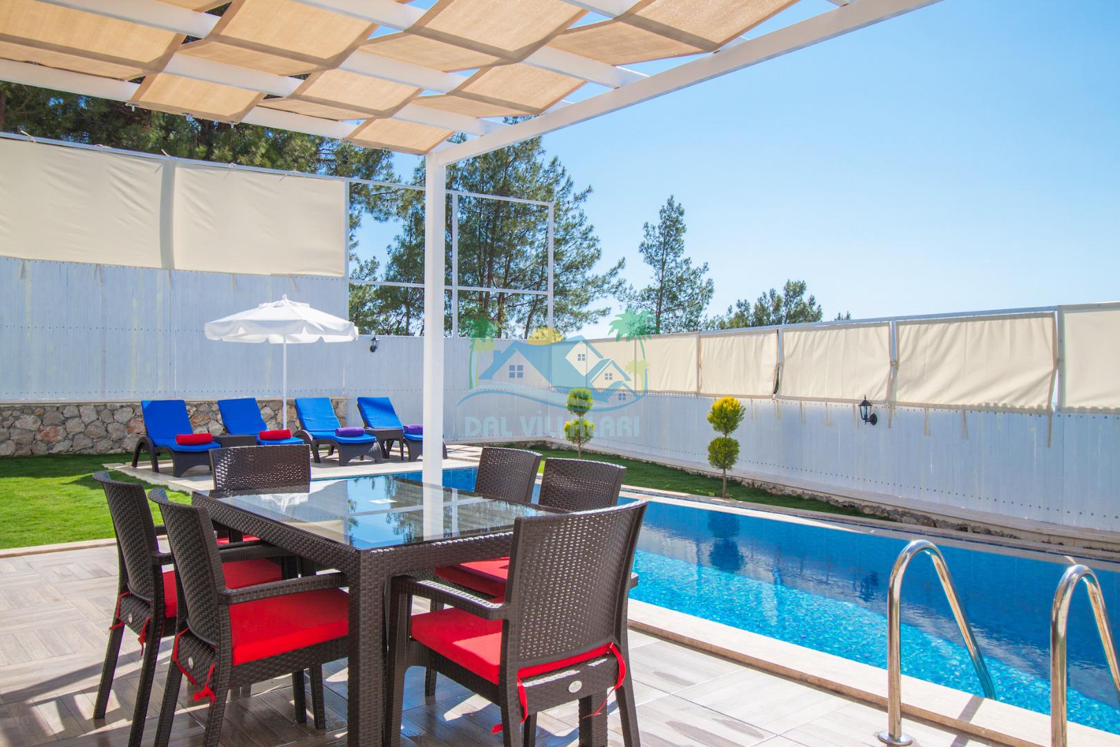 Havuz ve bahçe alanı tam korunaklıdır. Balayı çiftleri ve muhafazakar aileler için ideal bir tatil villadır.