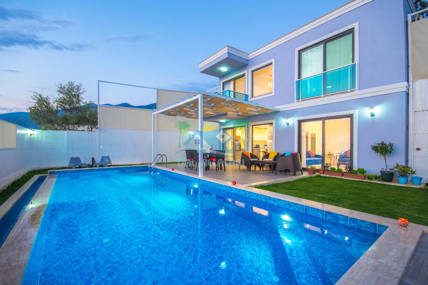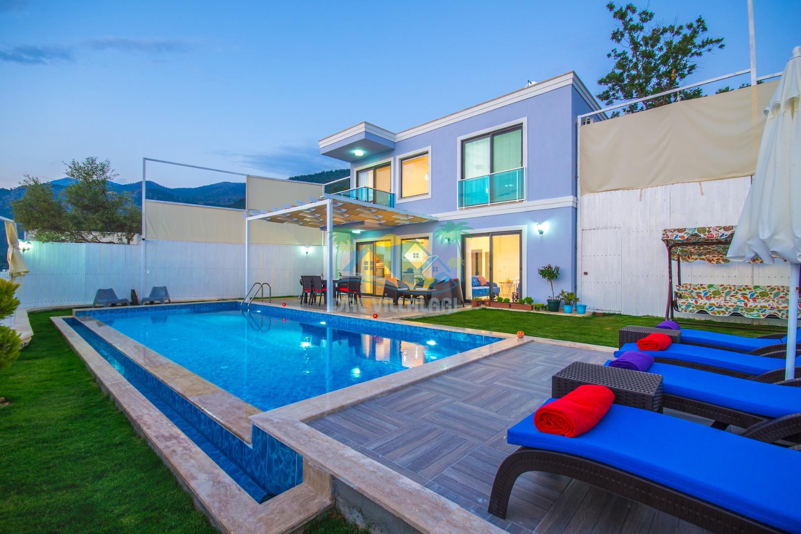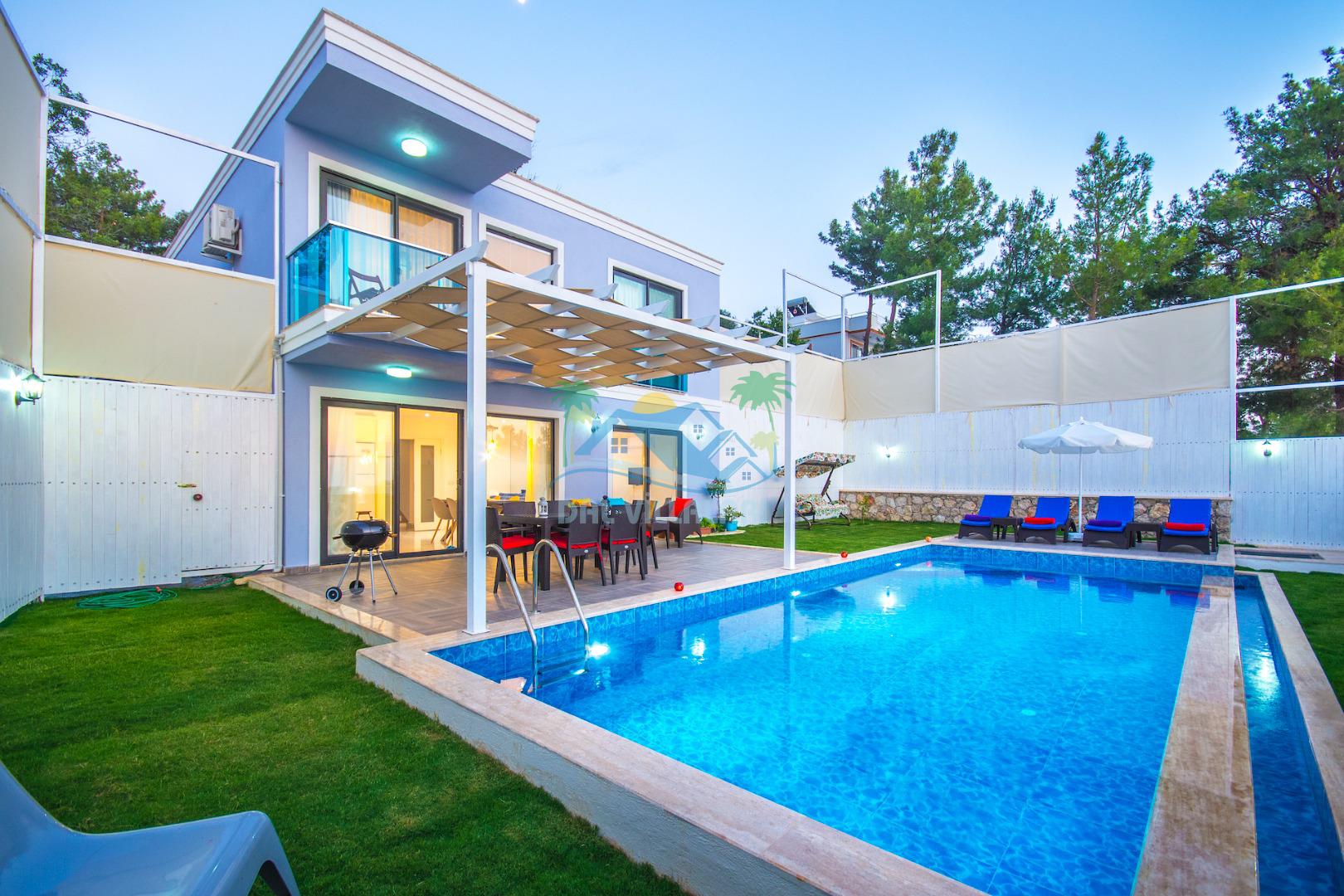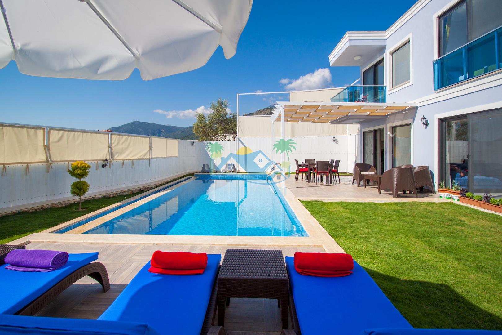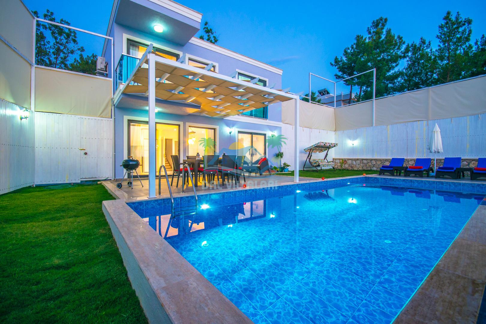 Havuz ve bahçe alanı tam korunaklıdır. Balayı çiftleri ve muhafazakar aileler için ideal bir tatil villadır.