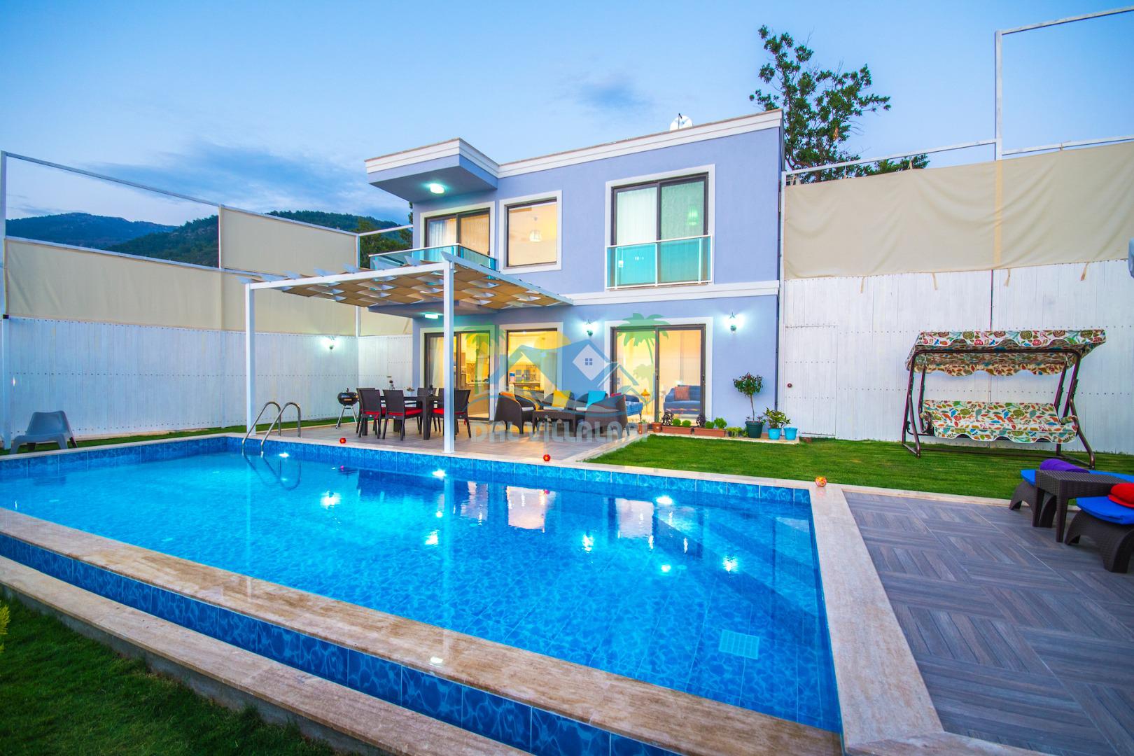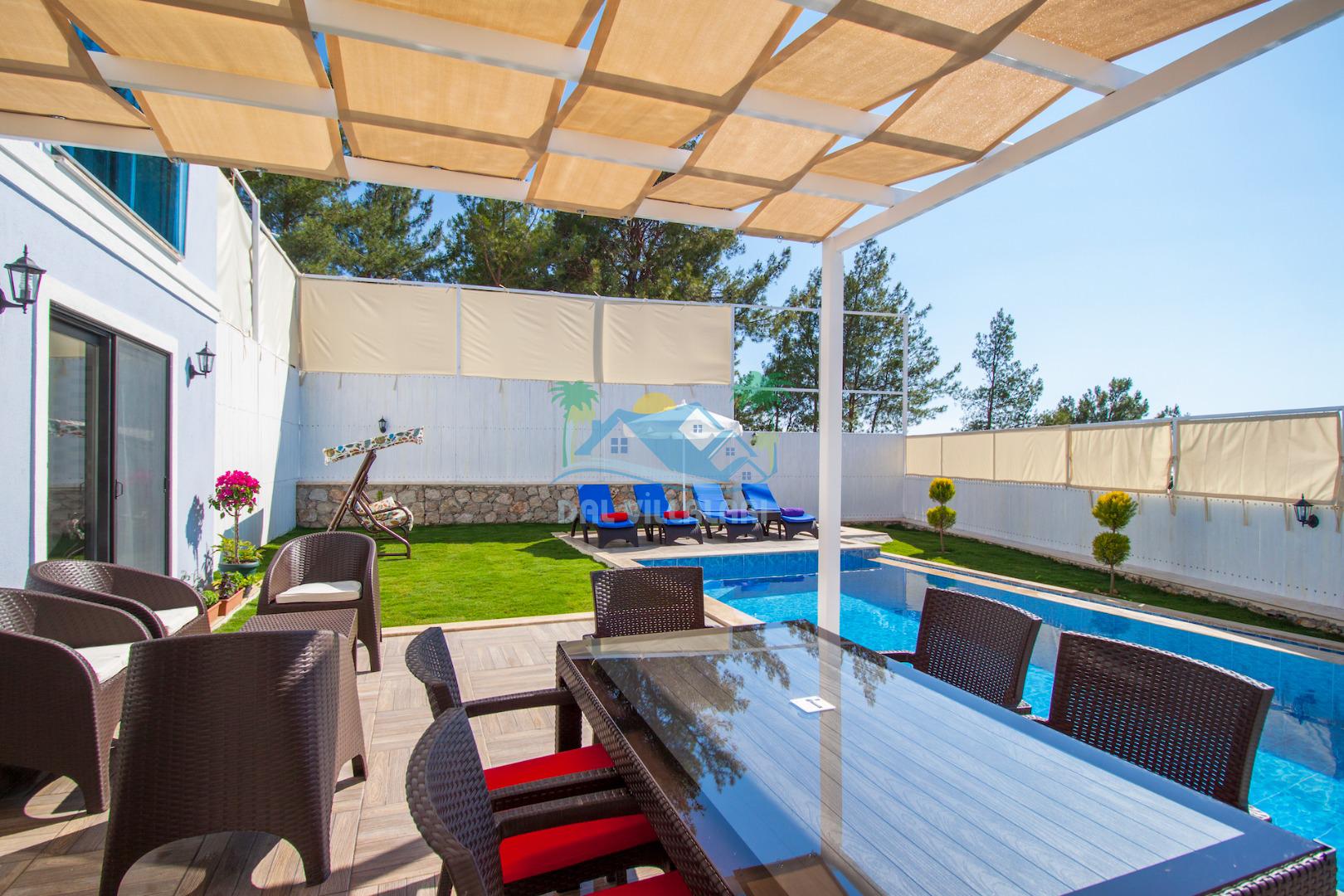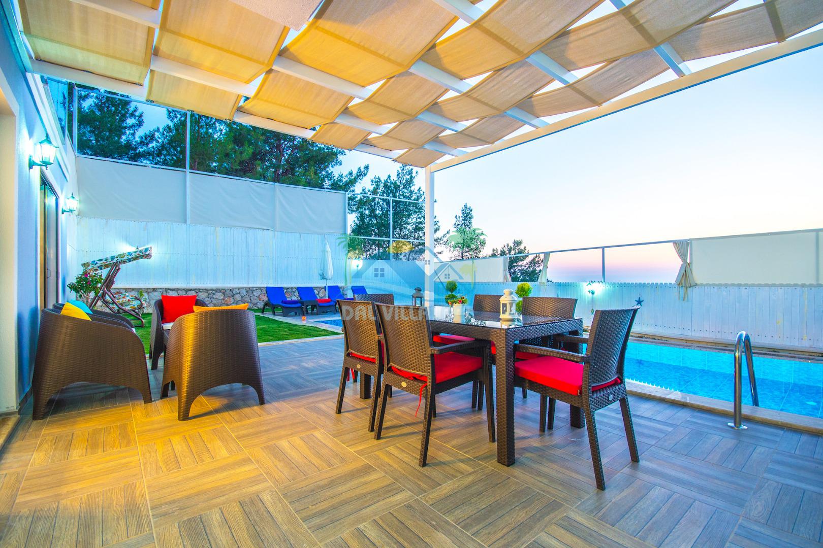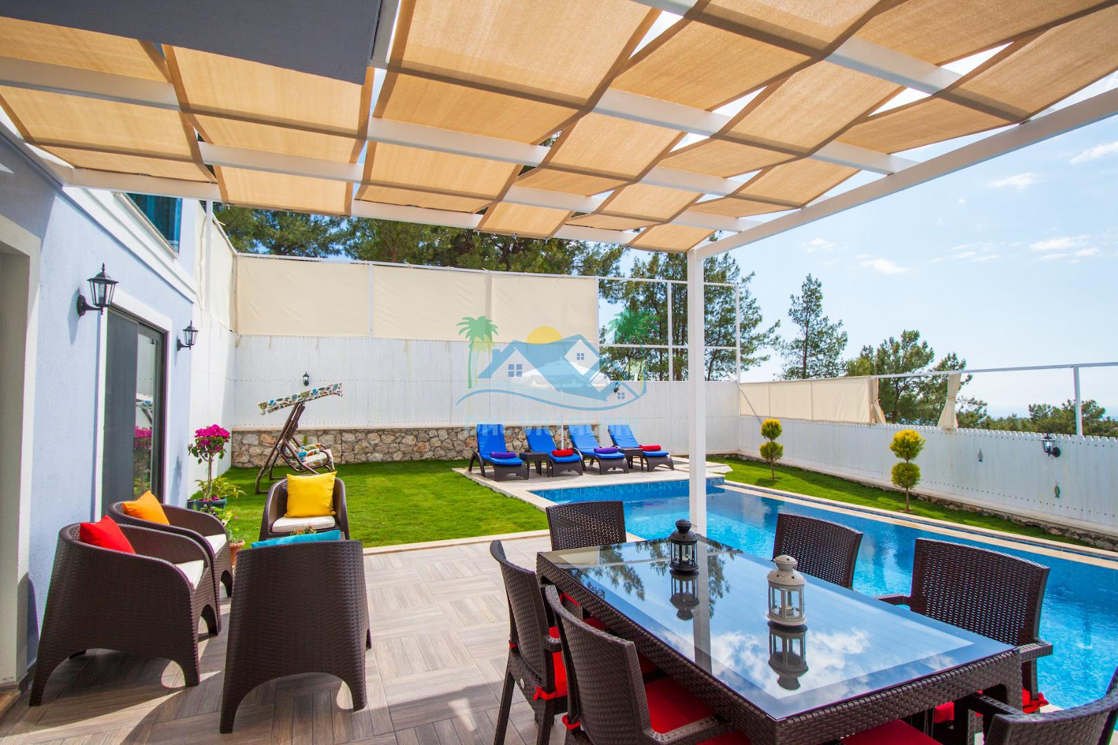 Havuz ve bahçe alanı tam korunaklıdır. Balayı çiftleri ve muhafazakar aileler için ideal bir tatil villadır.