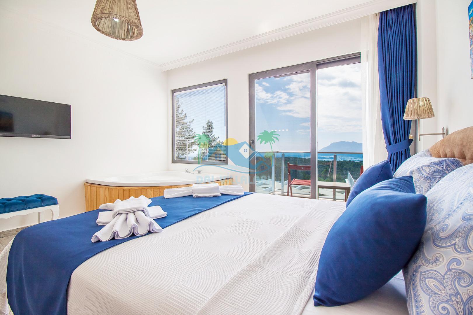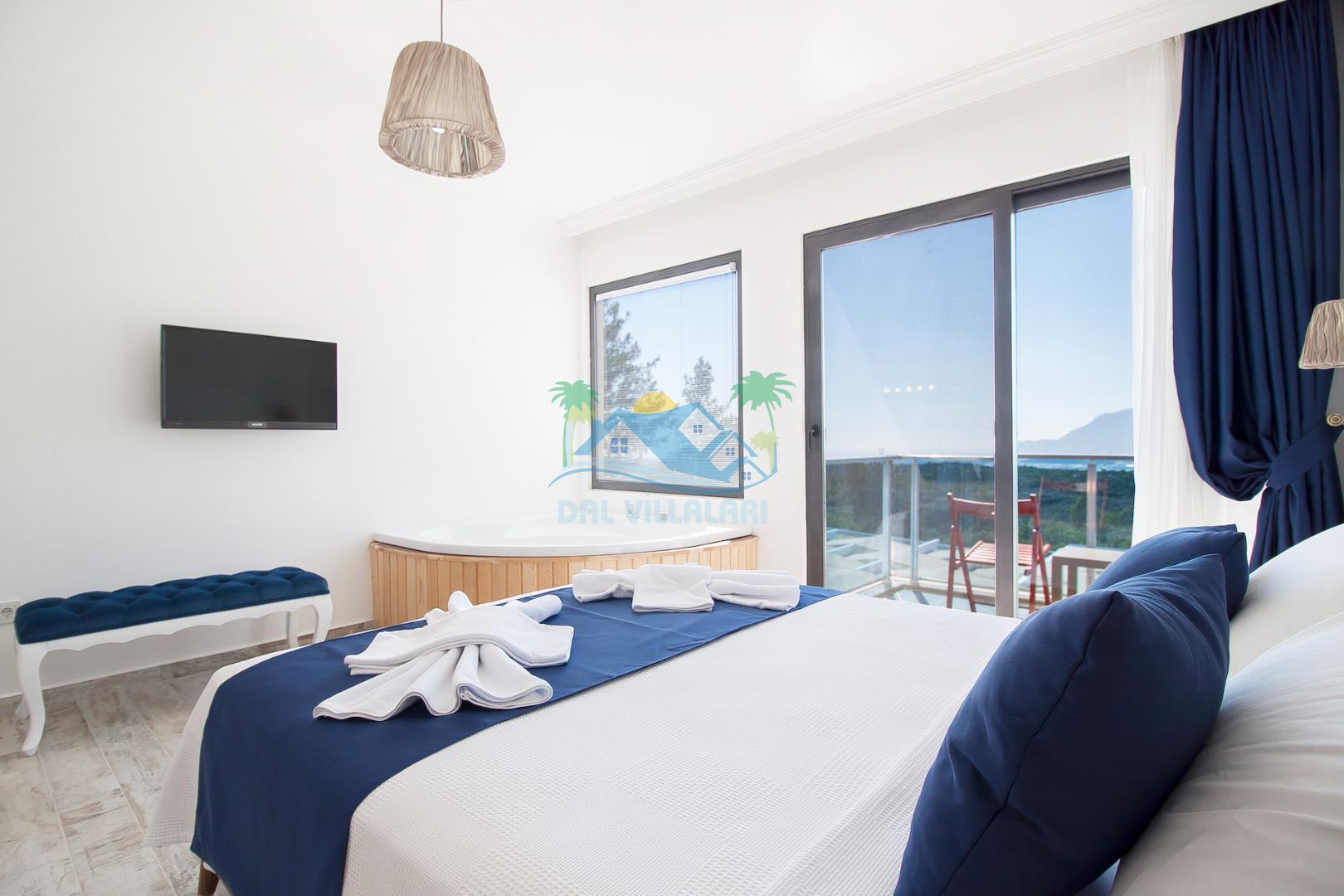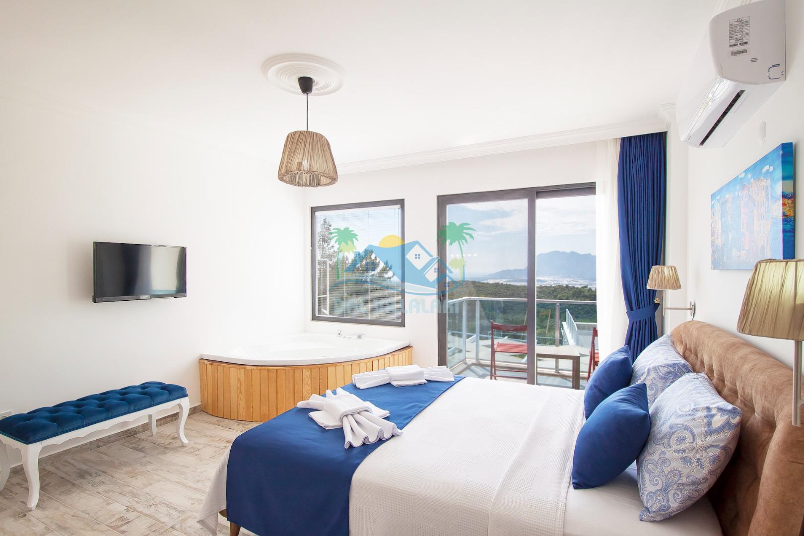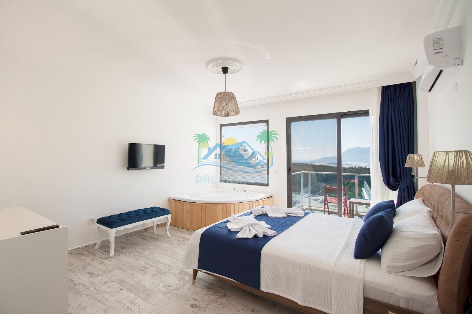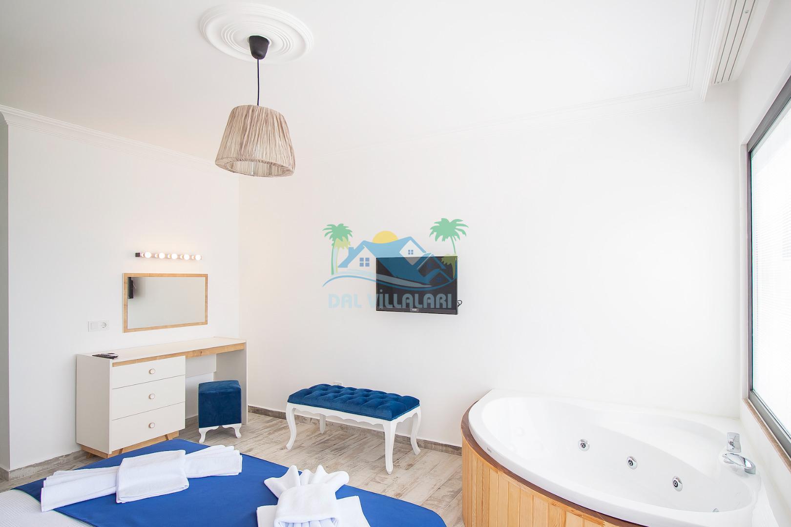Ebeveyn yatak odasında jakuzi de bulunan Villa Eren şık malzemelerle döşenmiştir.