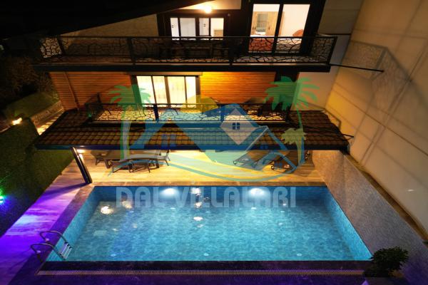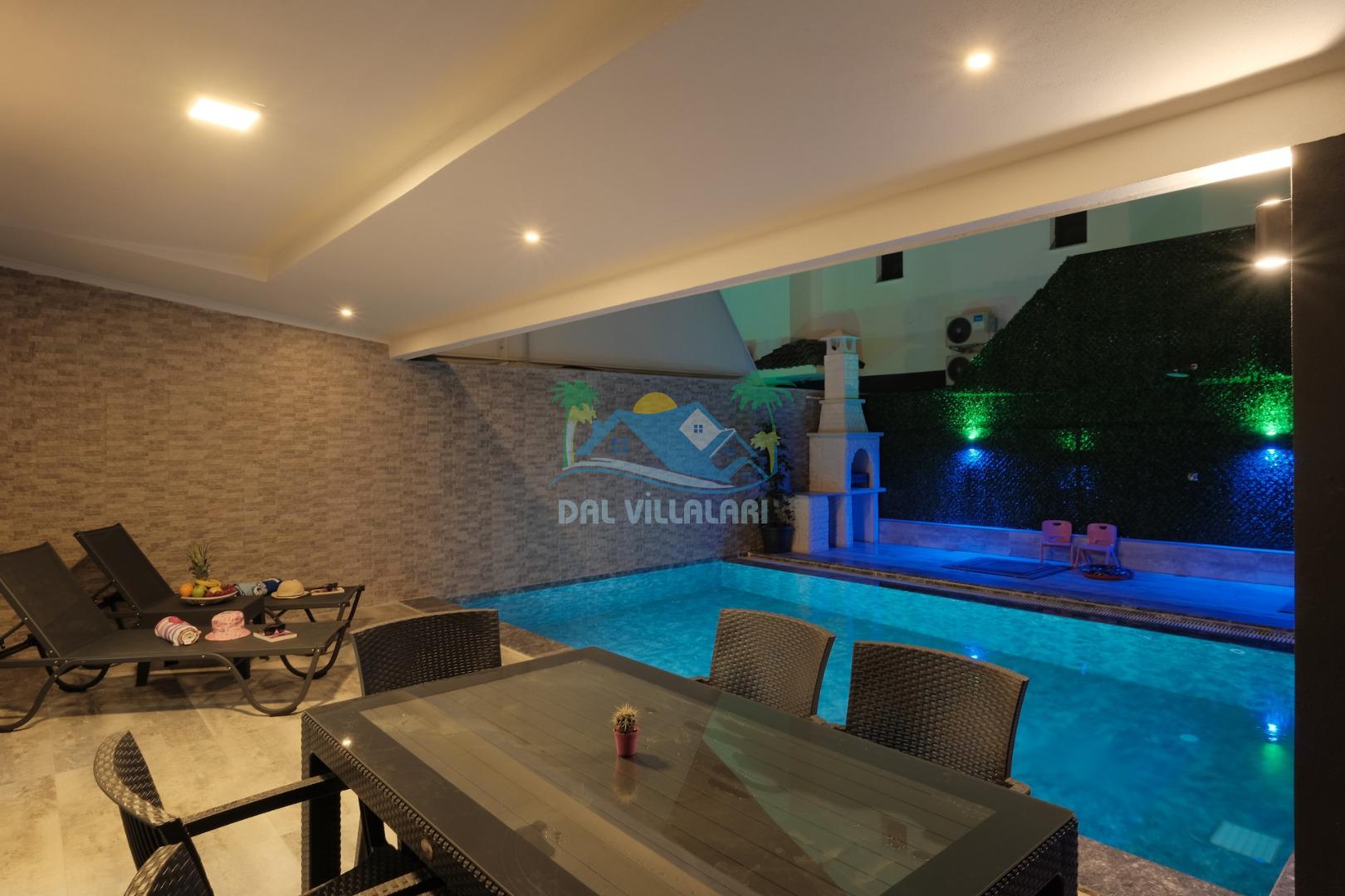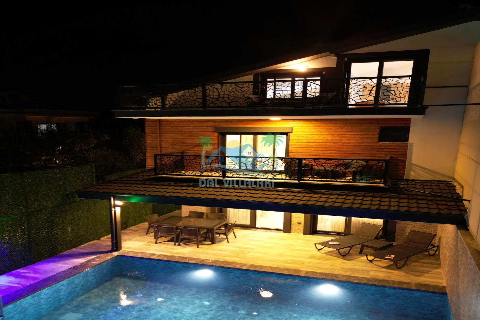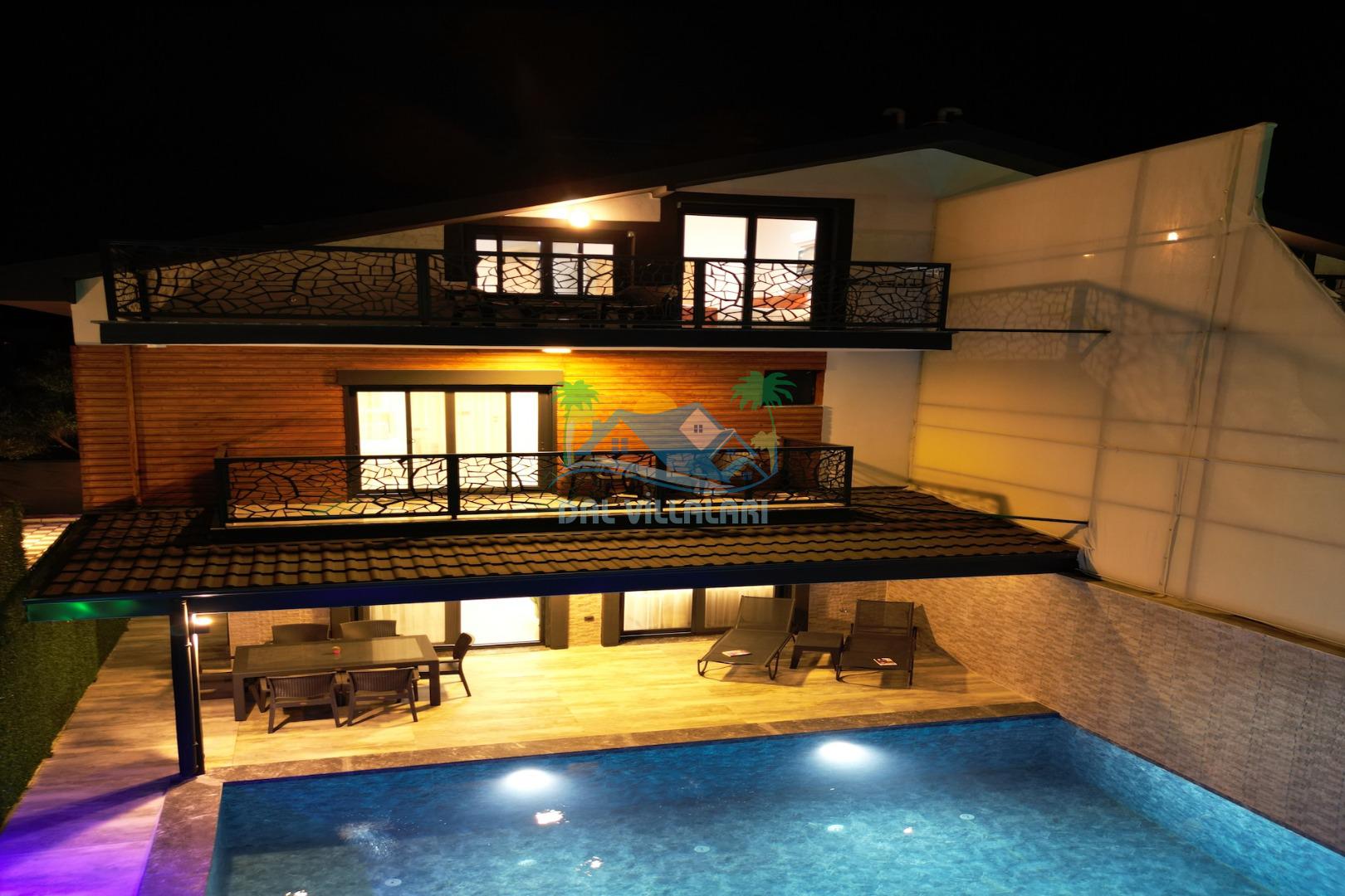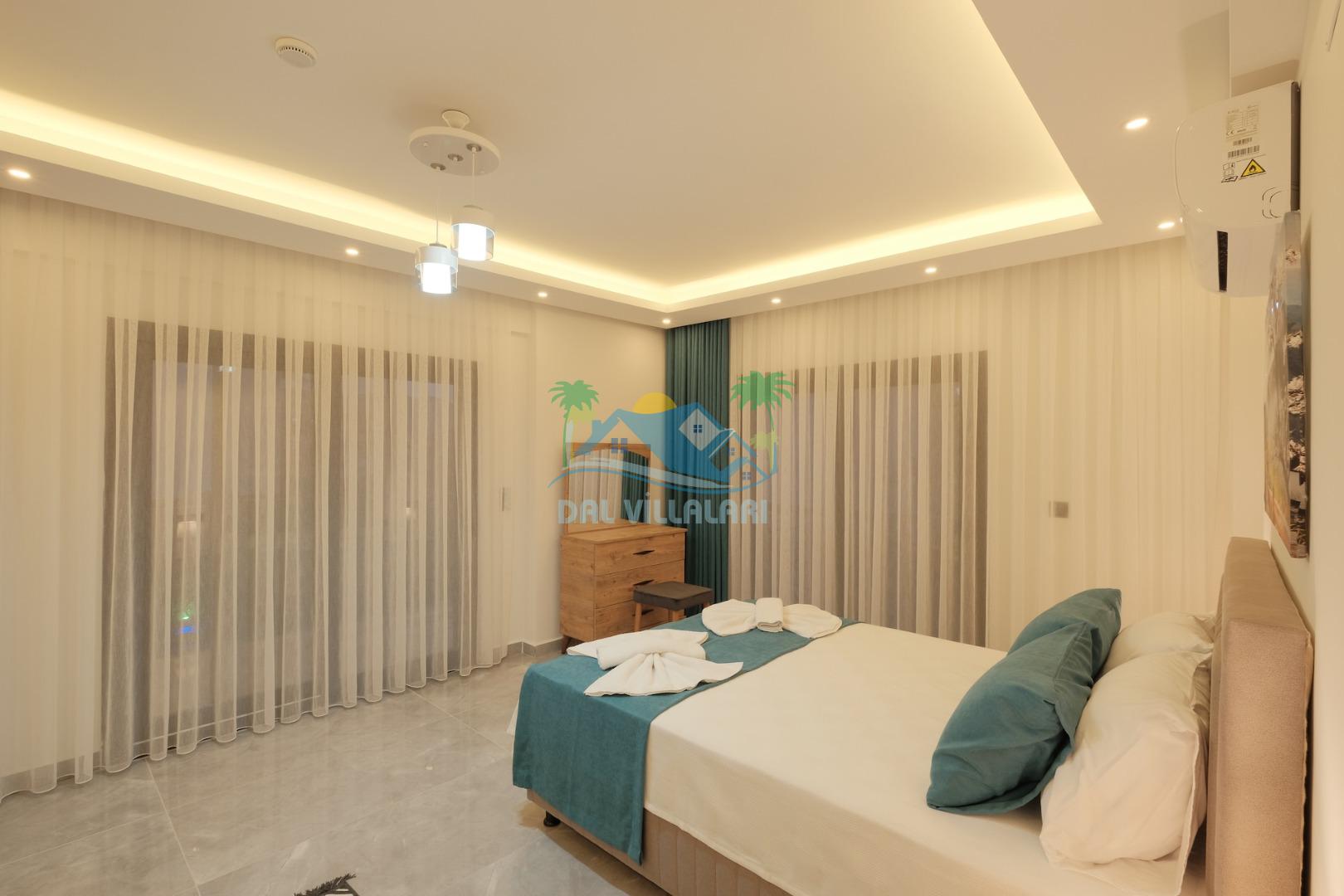 Merkezi noktalara rahat olaşabileceğiniz, sevdiklerinizle birlikte güvenli ve huzurlu bir tatilin keyfini sürebileceğiniz, güneşin ve temiz havanın tadına doyacağınız villanın havuz terasında şezlong takımı, oturma grubu, salıncak ve barbekü alanı bulunmaktadır. Yine havuz terasına açılan konforlu oturma odası ve açık mutfağı; birinci yatak odasında çift kişilik yatak, ebeveyn banyosu, ikinci yatak odasında çift kişilik yatak ve banyo, diğer odasında ise iki tek kişilik yatak ve ebeveyn banyosu bulunmaktadır.