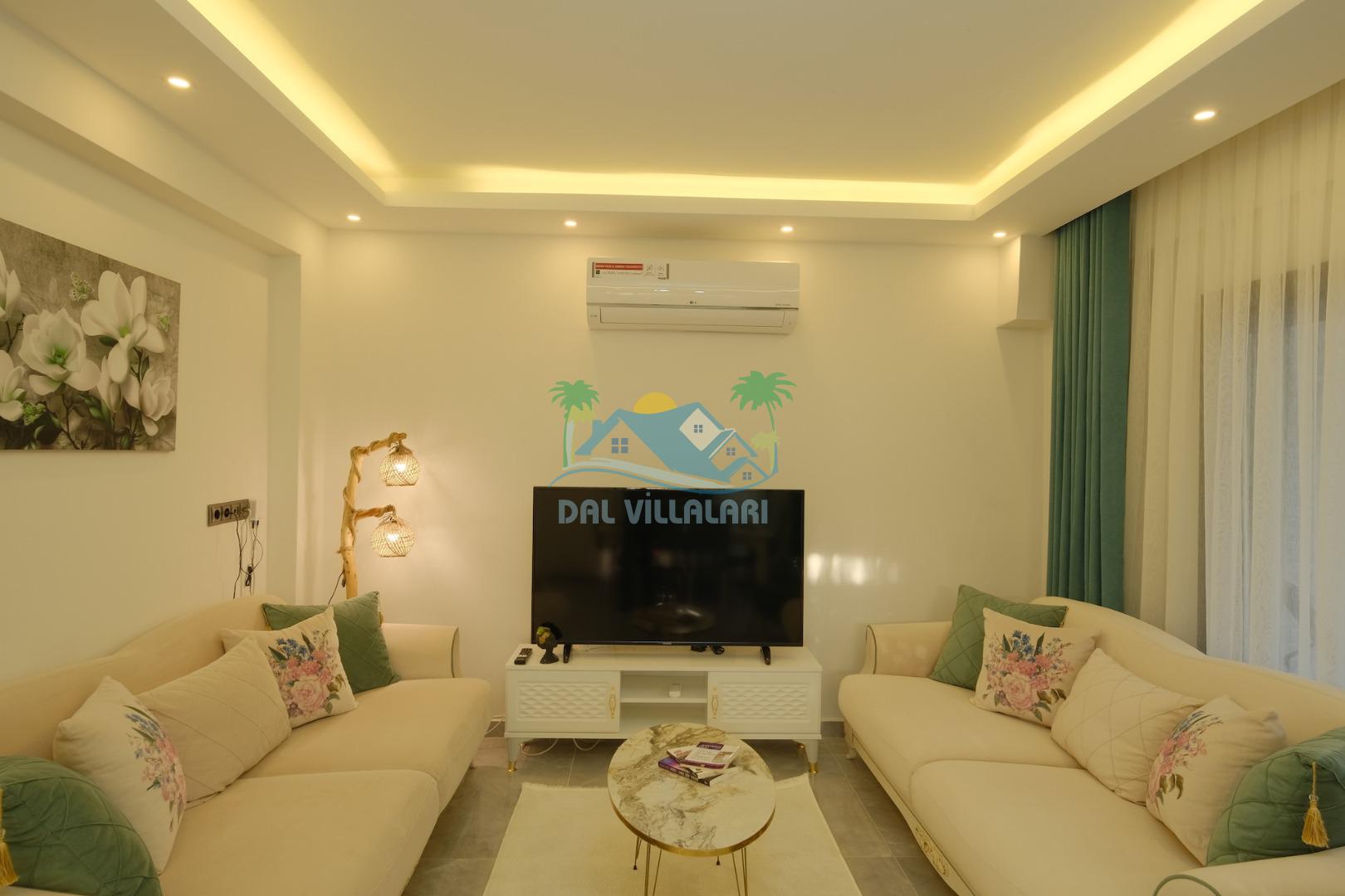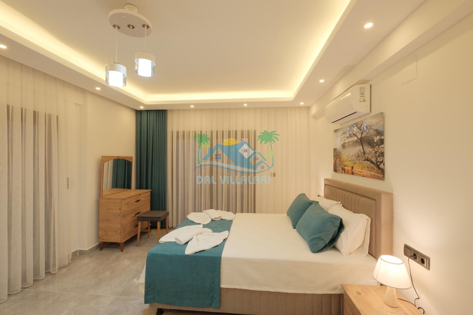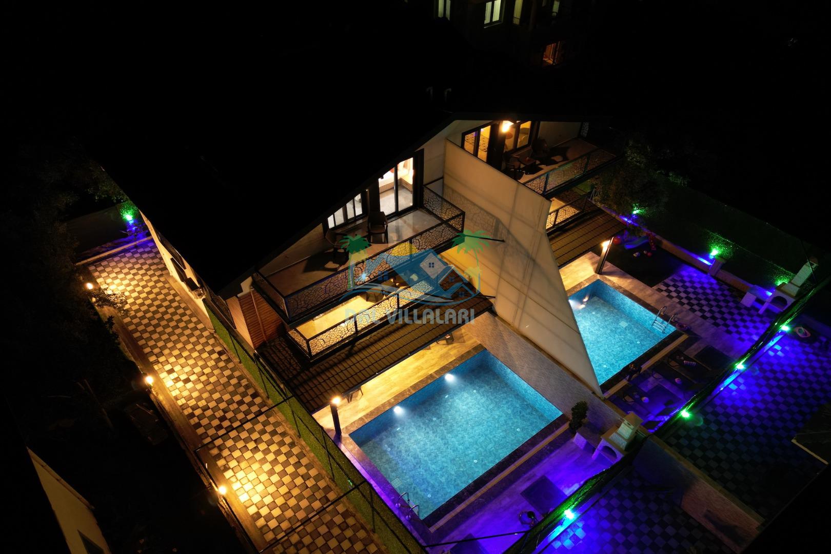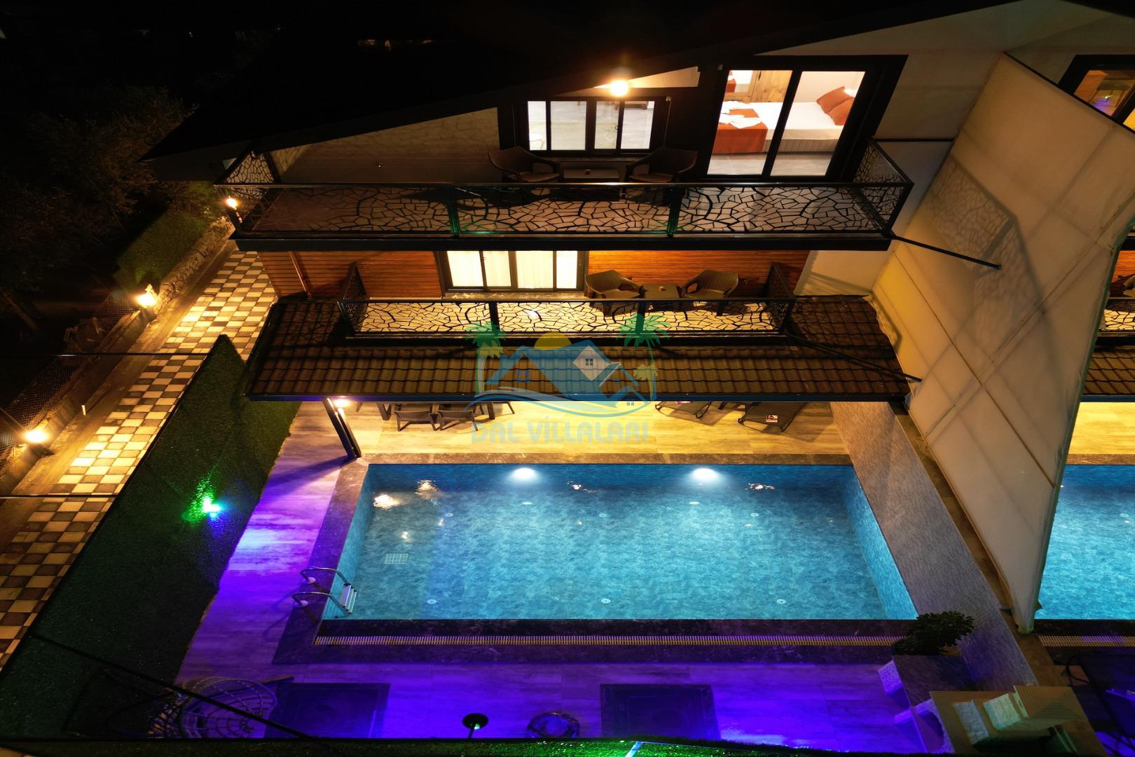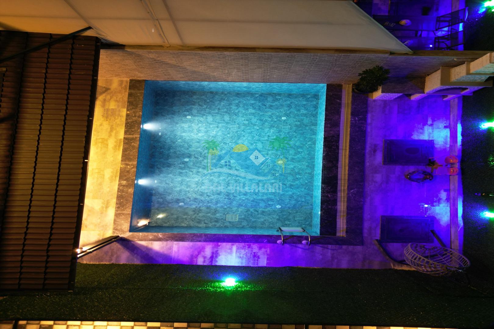 Merkezi noktalara rahat olaşabileceğiniz, sevdiklerinizle birlikte güvenli ve huzurlu bir tatilin keyfini sürebileceğiniz, güneşin ve temiz havanın tadına doyacağınız villanın havuz terasında şezlong takımı, oturma grubu, salıncak ve barbekü alanı bulunmaktadır. Yine havuz terasına açılan konforlu oturma odası ve açık mutfağı; birinci yatak odasında çift kişilik yatak, ebeveyn banyosu, ikinci yatak odasında çift kişilik yatak ve banyo, diğer odasında ise iki tek kişilik yatak ve ebeveyn banyosu bulunmaktadır.