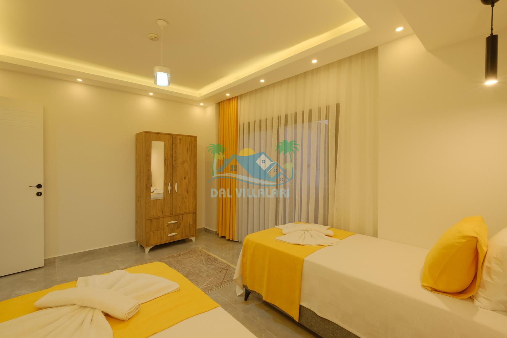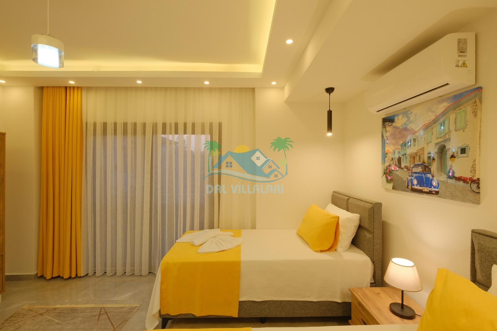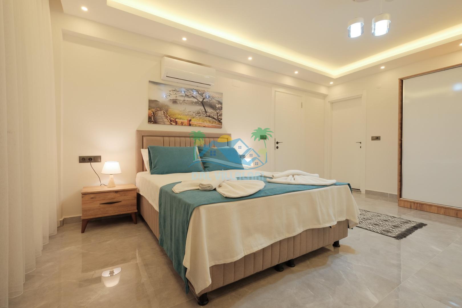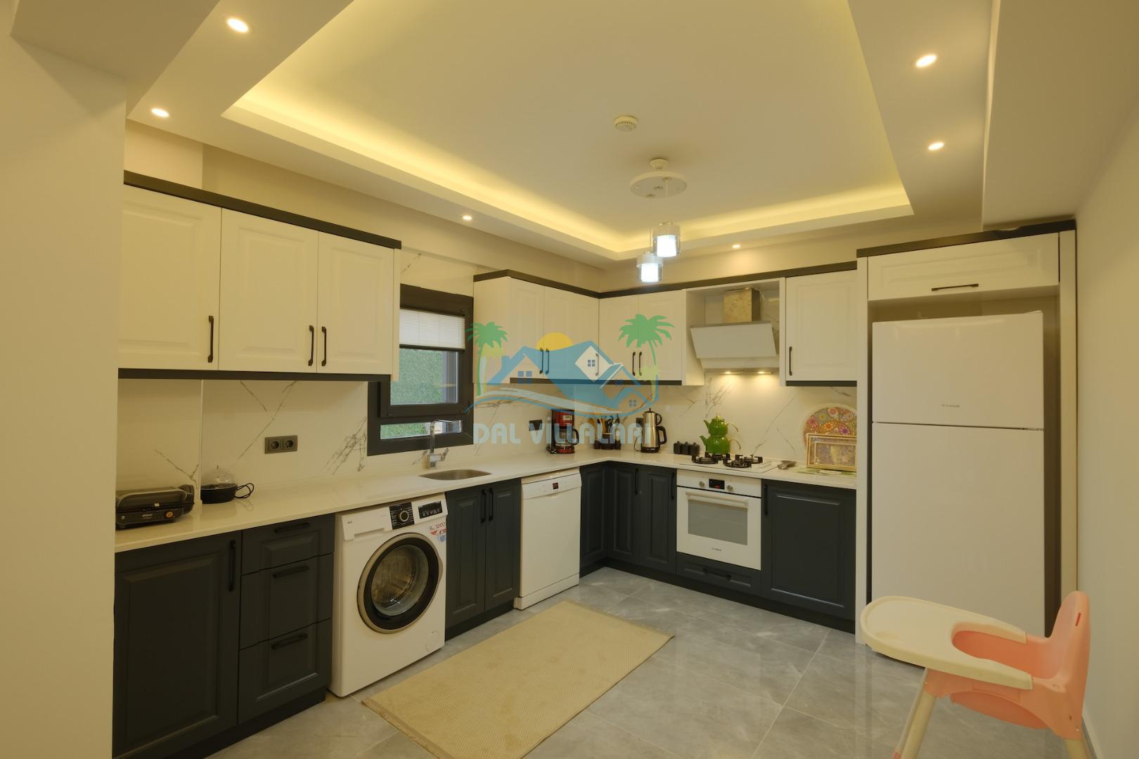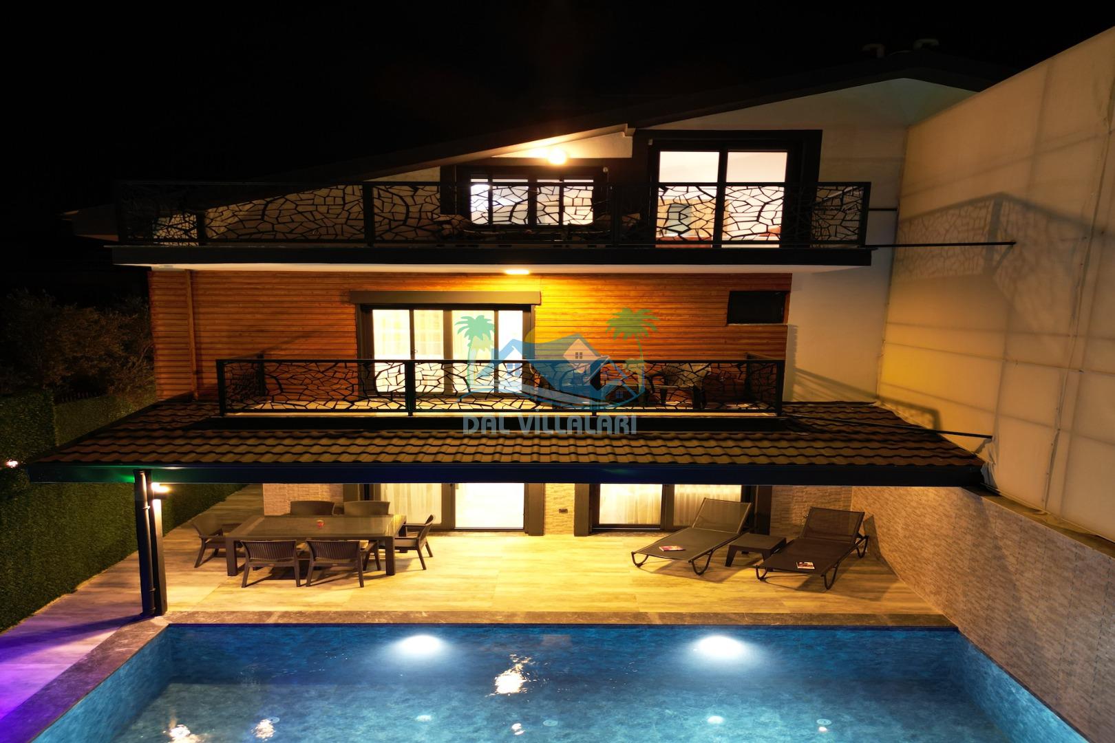 Merkezi noktalara rahat olaşabileceğiniz, sevdiklerinizle birlikte güvenli ve huzurlu bir tatilin keyfini sürebileceğiniz, güneşin ve temiz havanın tadına doyacağınız villanın havuz terasında şezlong takımı, oturma grubu, salıncak ve barbekü alanı bulunmaktadır. Yine havuz terasına açılan konforlu oturma odası ve açık mutfağı; birinci yatak odasında çift kişilik yatak, ebeveyn banyosu, ikinci yatak odasında çift kişilik yatak ve banyo, diğer odasında ise iki tek kişilik yatak ve ebeveyn banyosu bulunmaktadır.