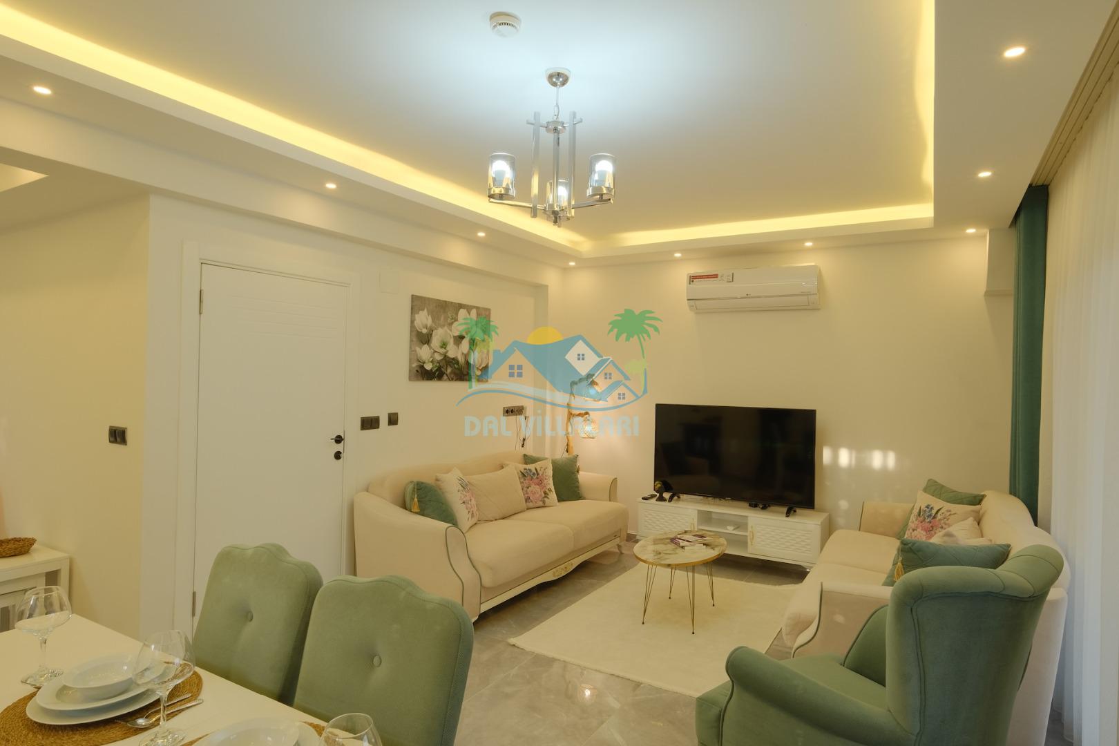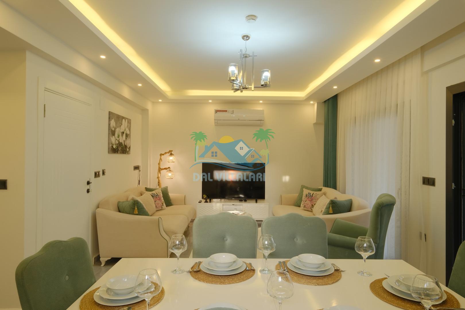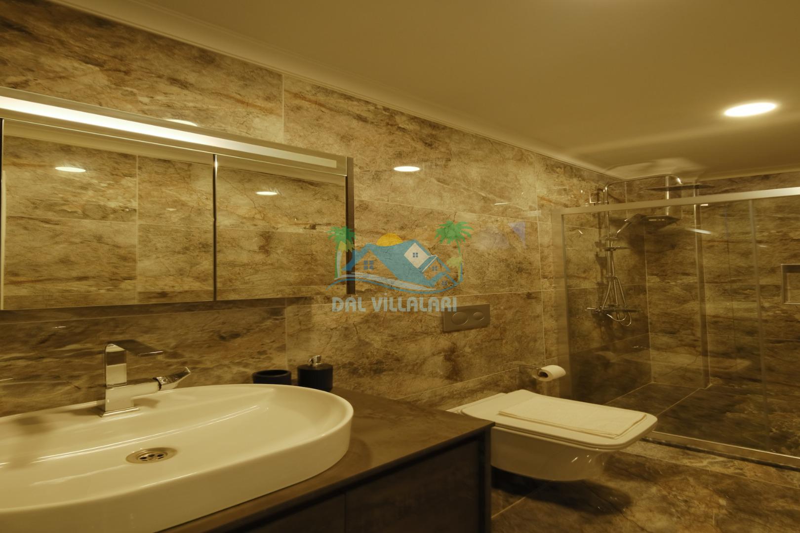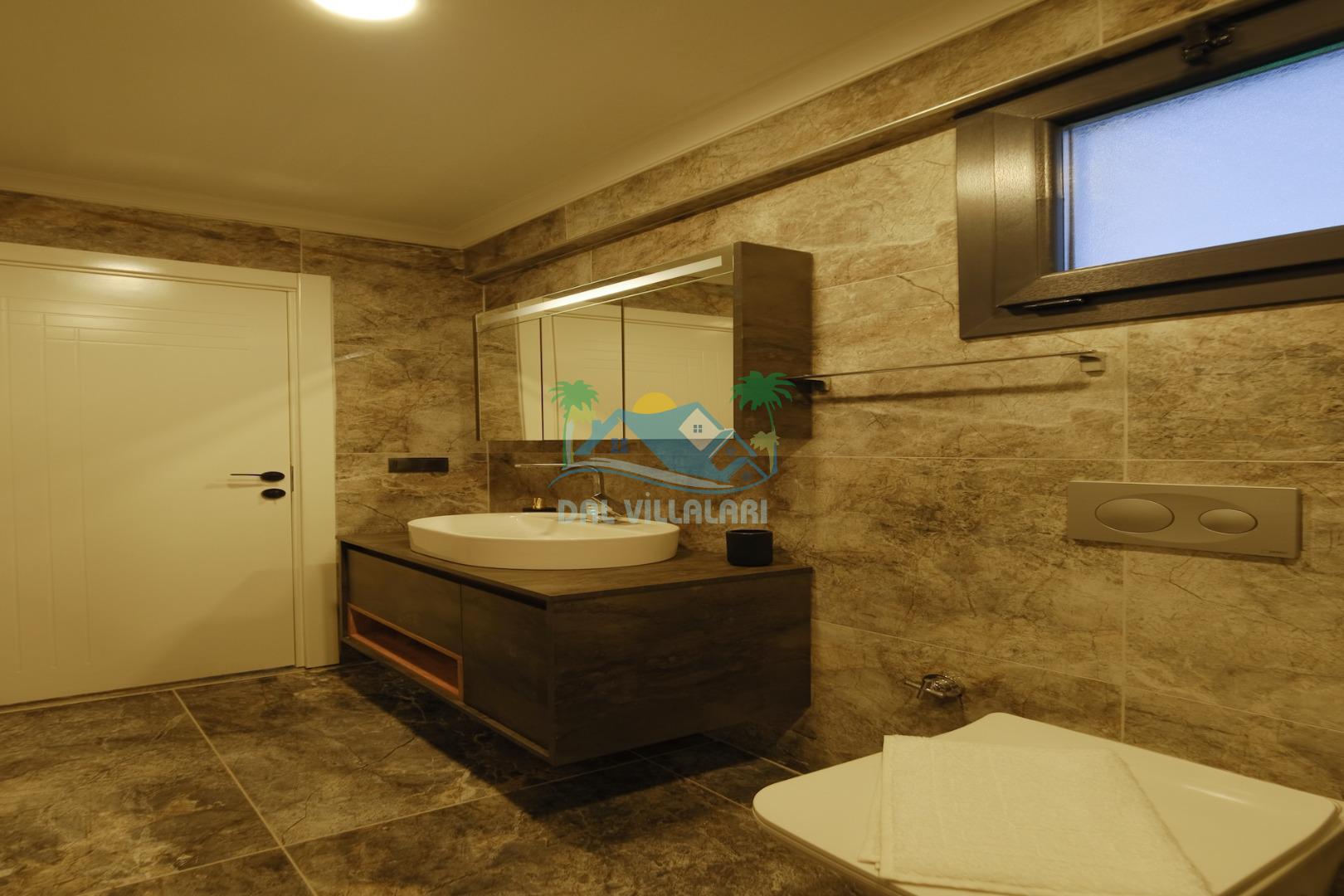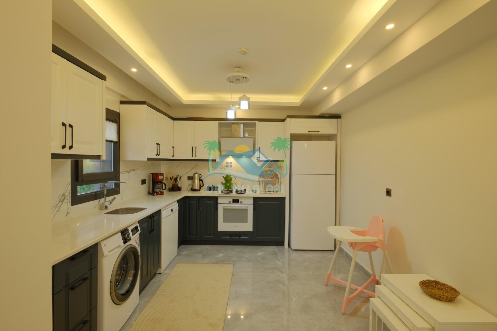 Merkezi noktalara rahat olaşabileceğiniz, sevdiklerinizle birlikte güvenli ve huzurlu bir tatilin keyfini sürebileceğiniz, güneşin ve temiz havanın tadına doyacağınız villanın havuz terasında şezlong takımı, oturma grubu, salıncak ve barbekü alanı bulunmaktadır. Yine havuz terasına açılan konforlu oturma odası ve açık mutfağı; birinci yatak odasında çift kişilik yatak, ebeveyn banyosu, ikinci yatak odasında çift kişilik yatak ve banyo, diğer odasında ise iki tek kişilik yatak ve ebeveyn banyosu bulunmaktadır.