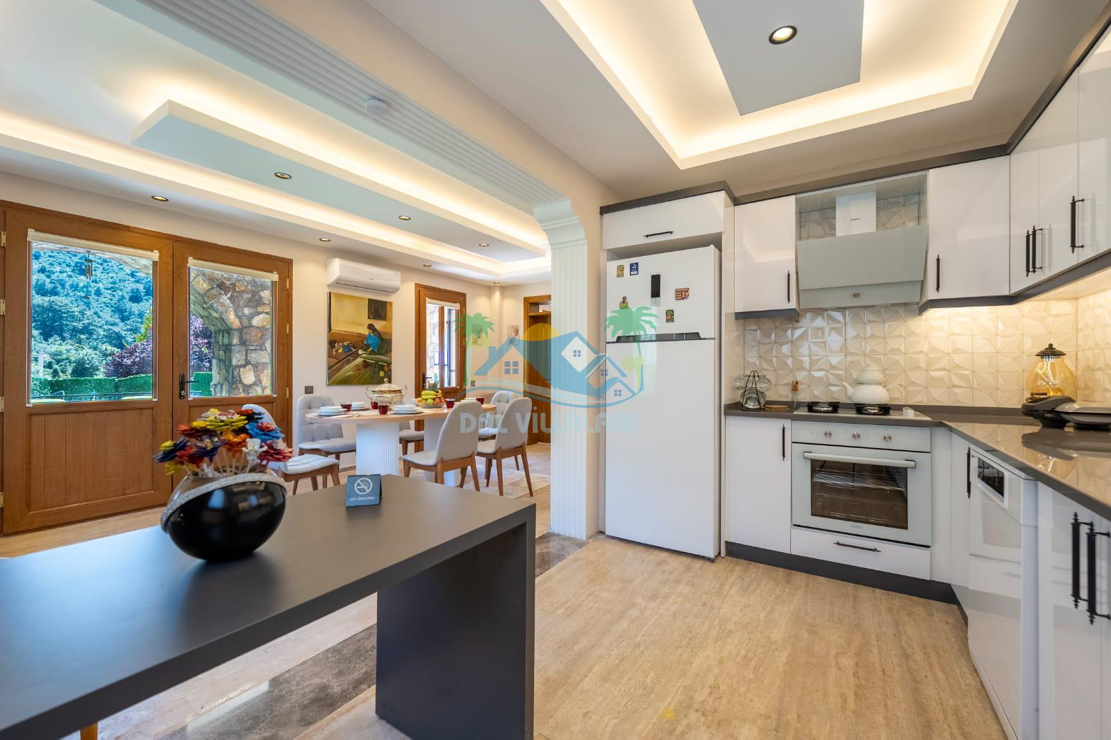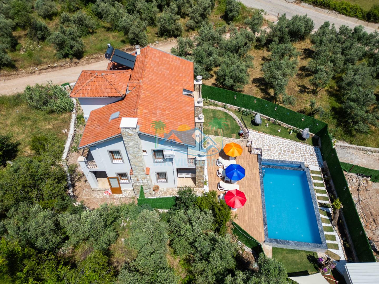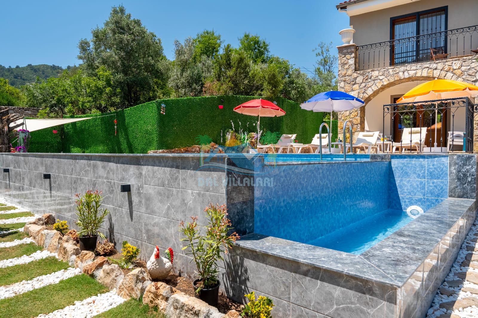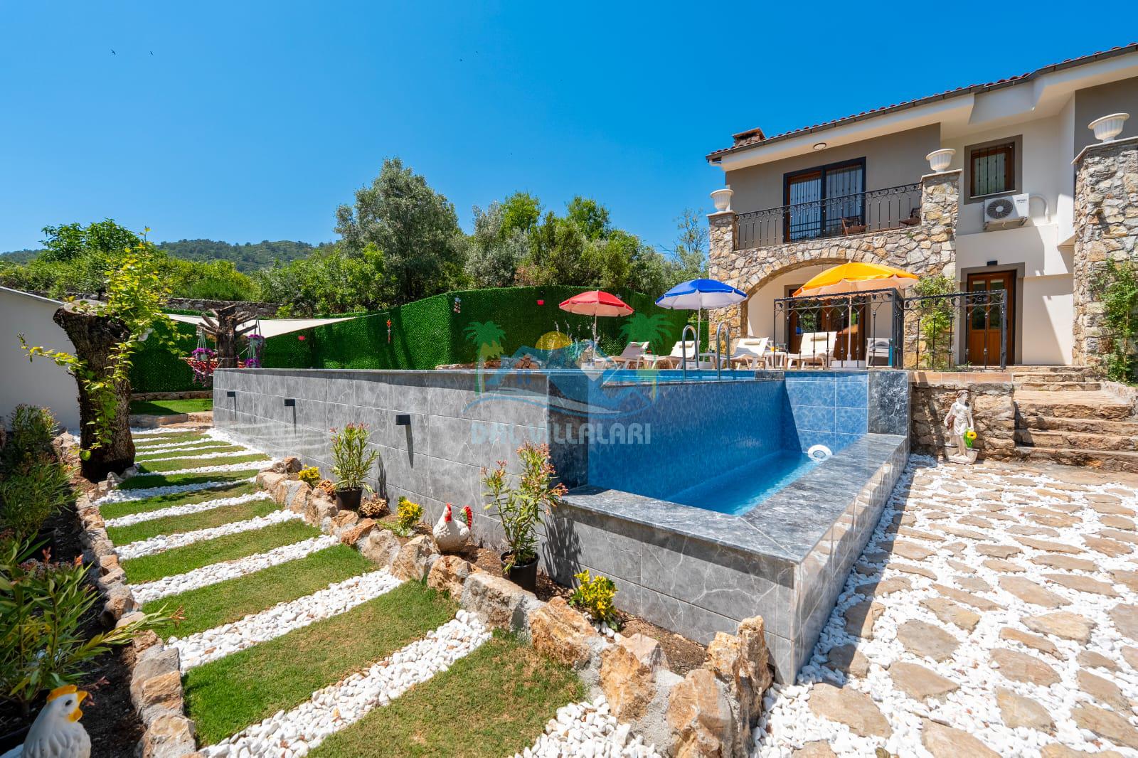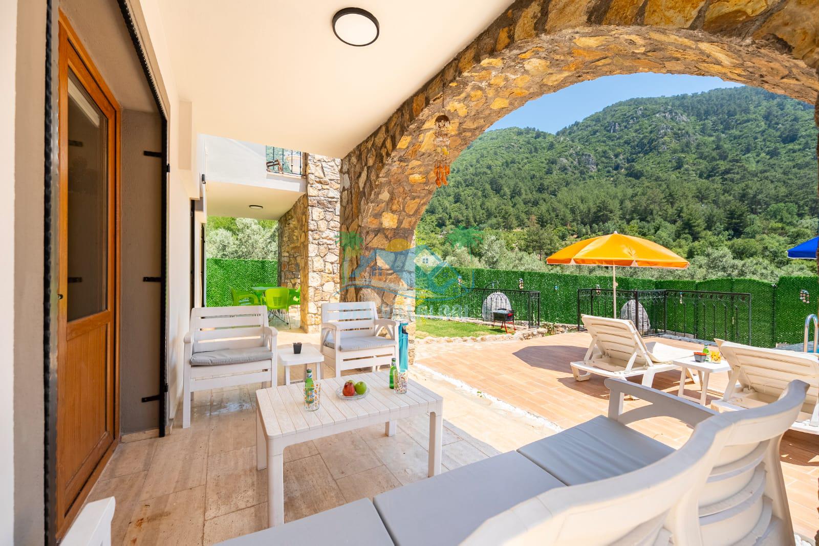 Geniş havuz alanı, konforlu oturma grubu ve özel barbekü alanına sahip olup iç mekanı da oldukça keyifli ve konforlu detaylar barındırmaktadır; oturma odası, donanımlı mutfağı; bir yatak odasında çift kişilik yatak; ikinci yatak odasında çift kişilik yatak;üçüncü yatak odasında ise bir adet iki kişilik ranza bulunan villa doğada güvenle ve huzurla planladığınız Fethiye tatiline ev sahipliği yapacaktır. Konforunuz döz önünde bulundurularak dizayn edilmiş bahçe alanı geniş havuz terasında sahiptir ve havuz bahçe alanında doğanın ve gökyüzünün tadını çıkarabileceğiniz bir havuz alanı bulunmaktadır. Geniş bahçe alanında keyifli zaman geçireceğiniz villa da havuz keyfinize doyamayacağız anlar geçireceksiniz.