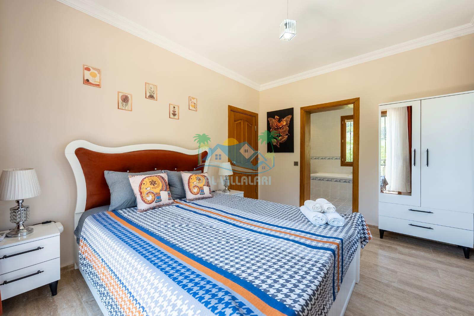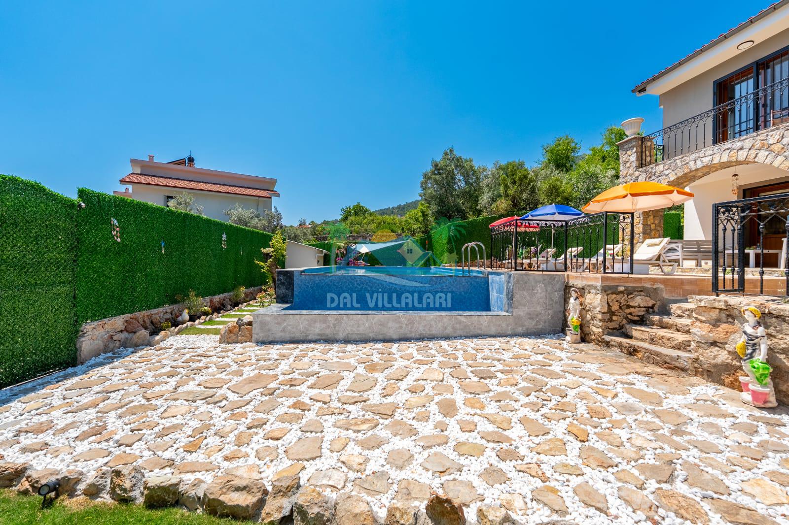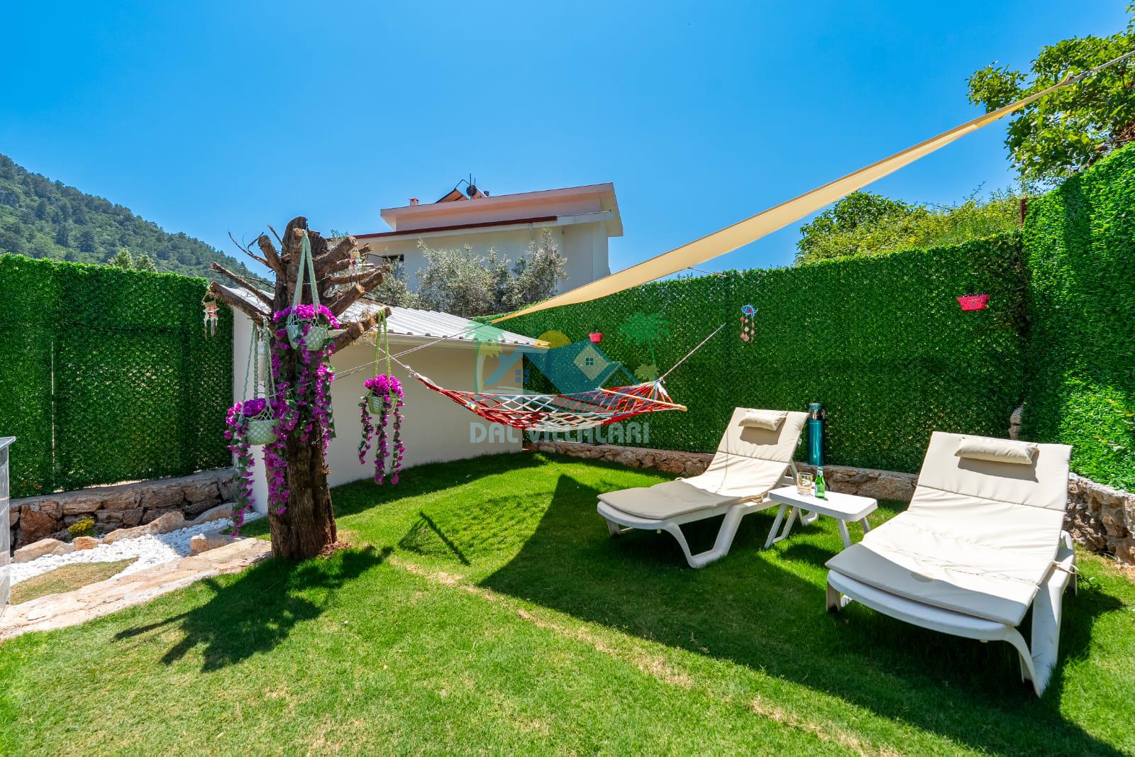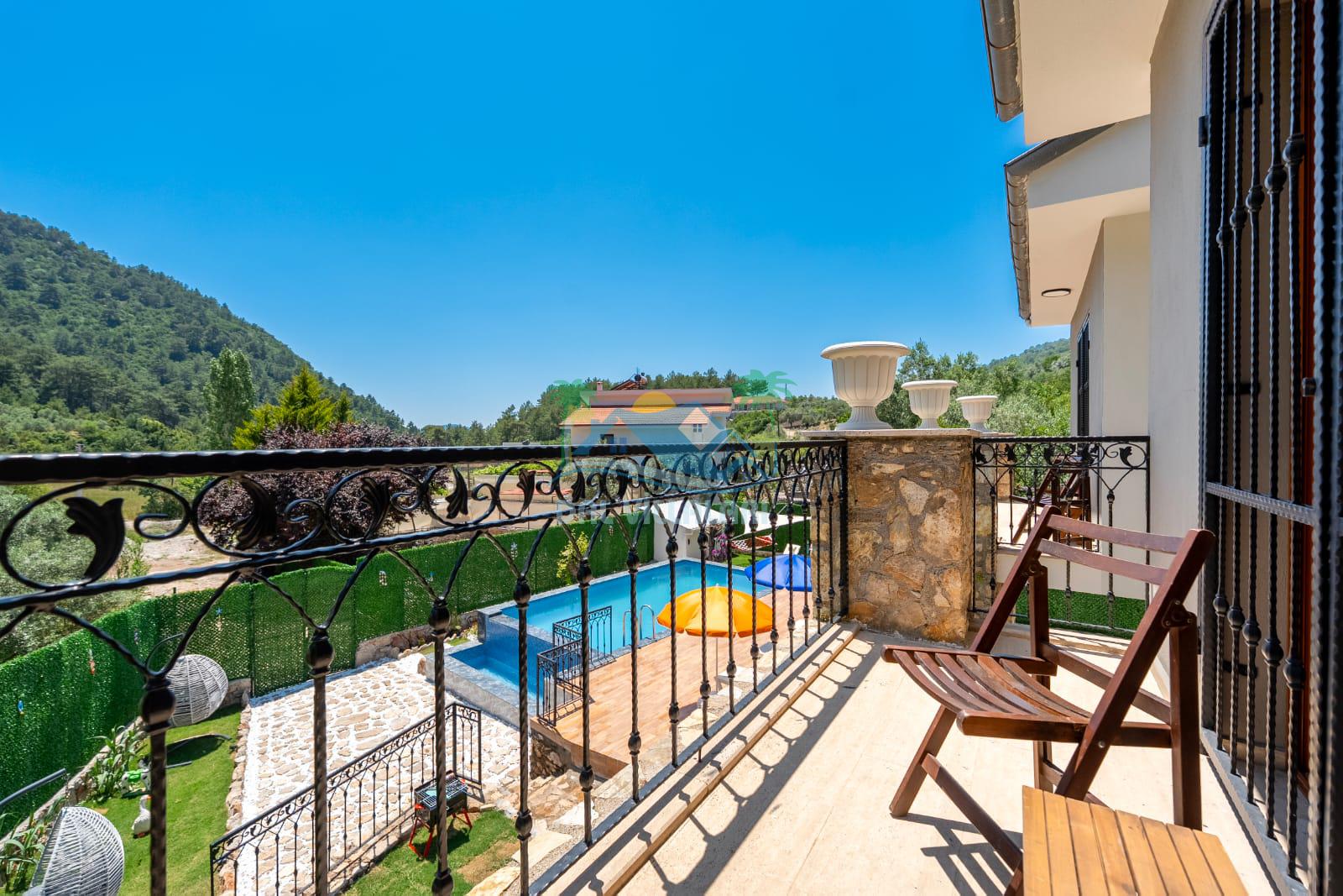 Geniş havuz alanı, konforlu oturma grubu ve özel barbekü alanına sahip olup iç mekanı da oldukça keyifli ve konforlu detaylar barındırmaktadır; oturma odası, donanımlı mutfağı; bir yatak odasında çift kişilik yatak; ikinci yatak odasında çift kişilik yatak;üçüncü yatak odasında ise bir adet iki kişilik ranza bulunan villa doğada güvenle ve huzurla planladığınız Fethiye tatiline ev sahipliği yapacaktır. Konforunuz döz önünde bulundurularak dizayn edilmiş bahçe alanı geniş havuz terasında sahiptir ve havuz bahçe alanında doğanın ve gökyüzünün tadını çıkarabileceğiniz bir havuz alanı bulunmaktadır. Geniş bahçe alanında keyifli zaman geçireceğiniz villa da havuz keyfinize doyamayacağız anlar geçireceksiniz.