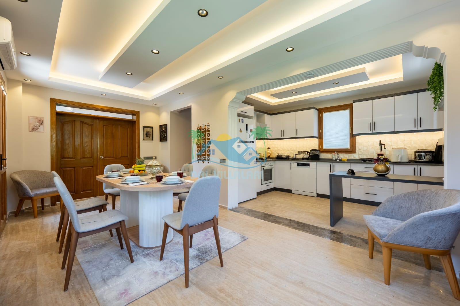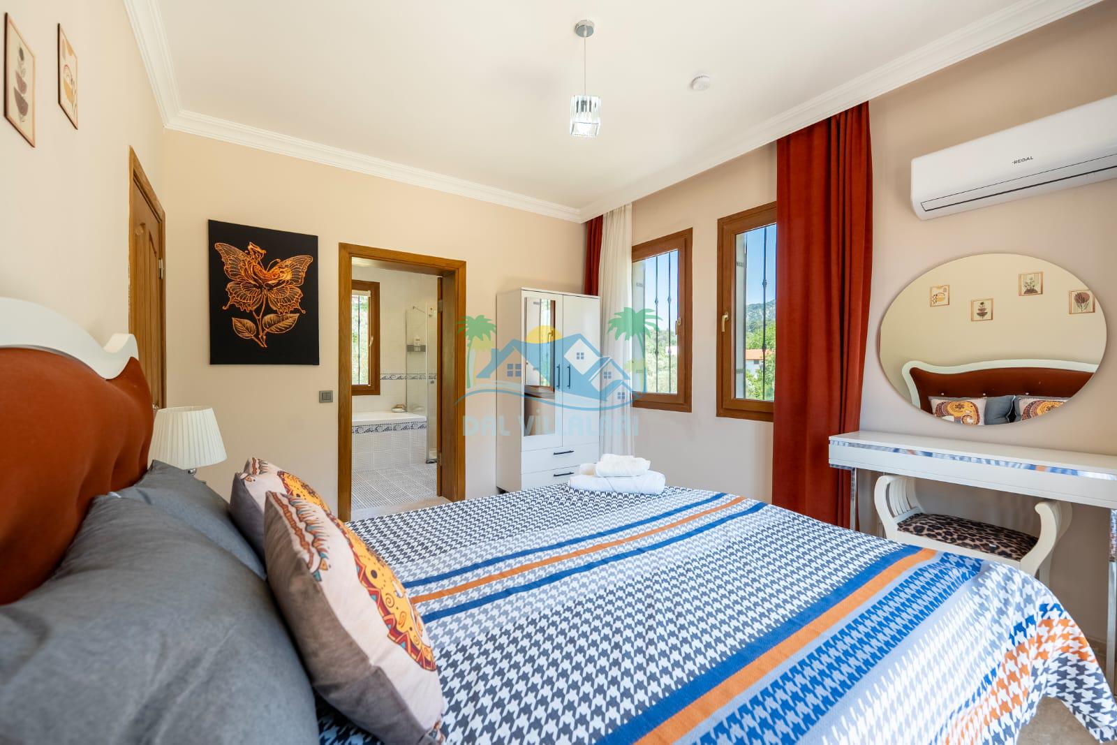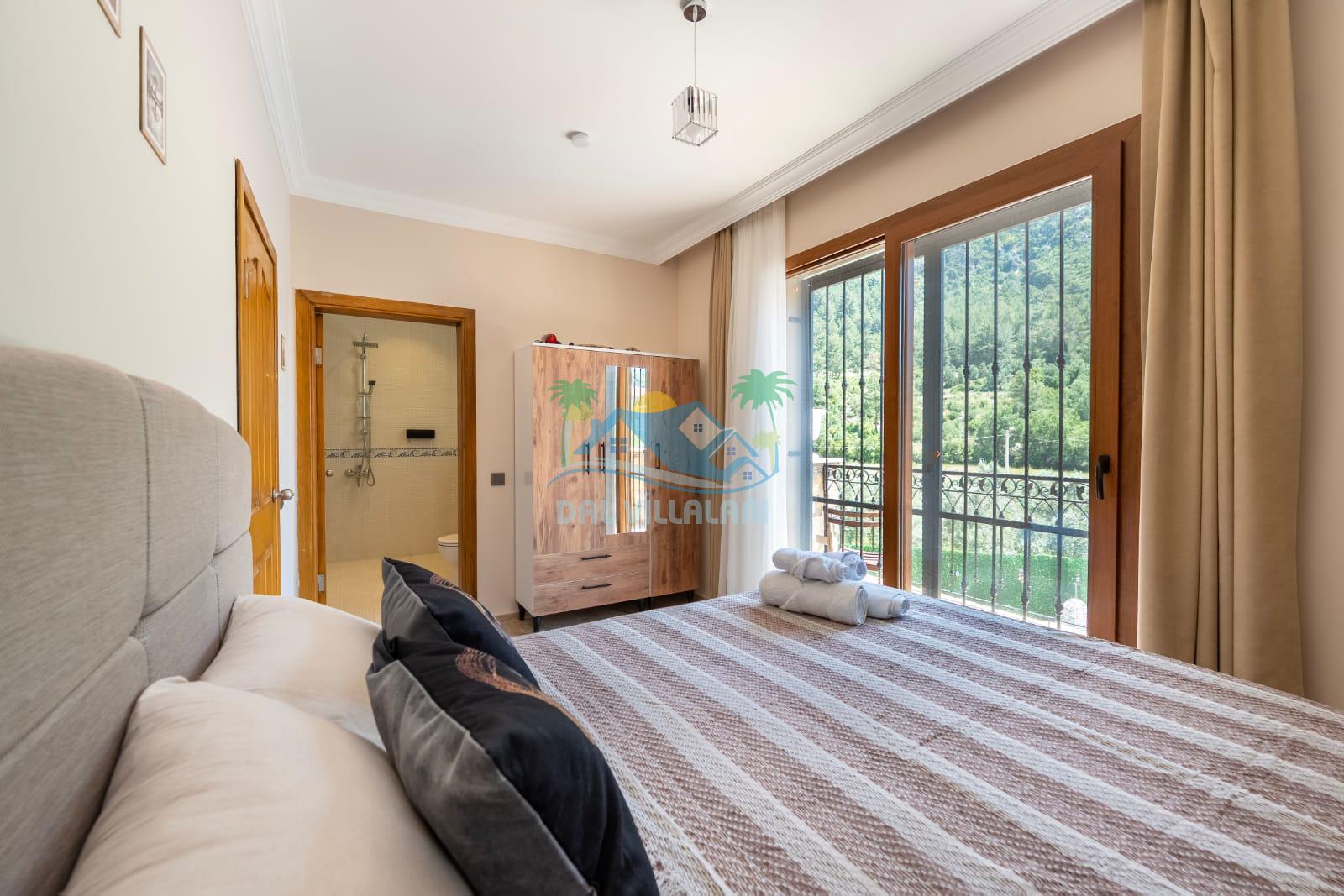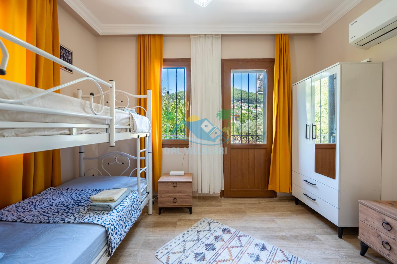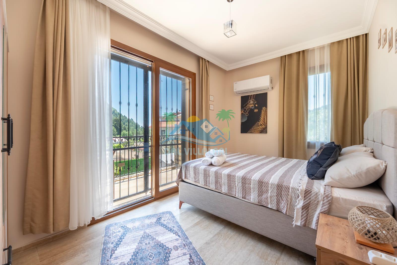 Geniş havuz alanı, konforlu oturma grubu ve özel barbekü alanına sahip olup iç mekanı da oldukça keyifli ve konforlu detaylar barındırmaktadır; oturma odası, donanımlı mutfağı; bir yatak odasında çift kişilik yatak; ikinci yatak odasında çift kişilik yatak;üçüncü yatak odasında ise bir adet iki kişilik ranza bulunan villa doğada güvenle ve huzurla planladığınız Fethiye tatiline ev sahipliği yapacaktır. Konforunuz döz önünde bulundurularak dizayn edilmiş bahçe alanı geniş havuz terasında sahiptir ve havuz bahçe alanında doğanın ve gökyüzünün tadını çıkarabileceğiniz bir havuz alanı bulunmaktadır. Geniş bahçe alanında keyifli zaman geçireceğiniz villa da havuz keyfinize doyamayacağız anlar geçireceksiniz.