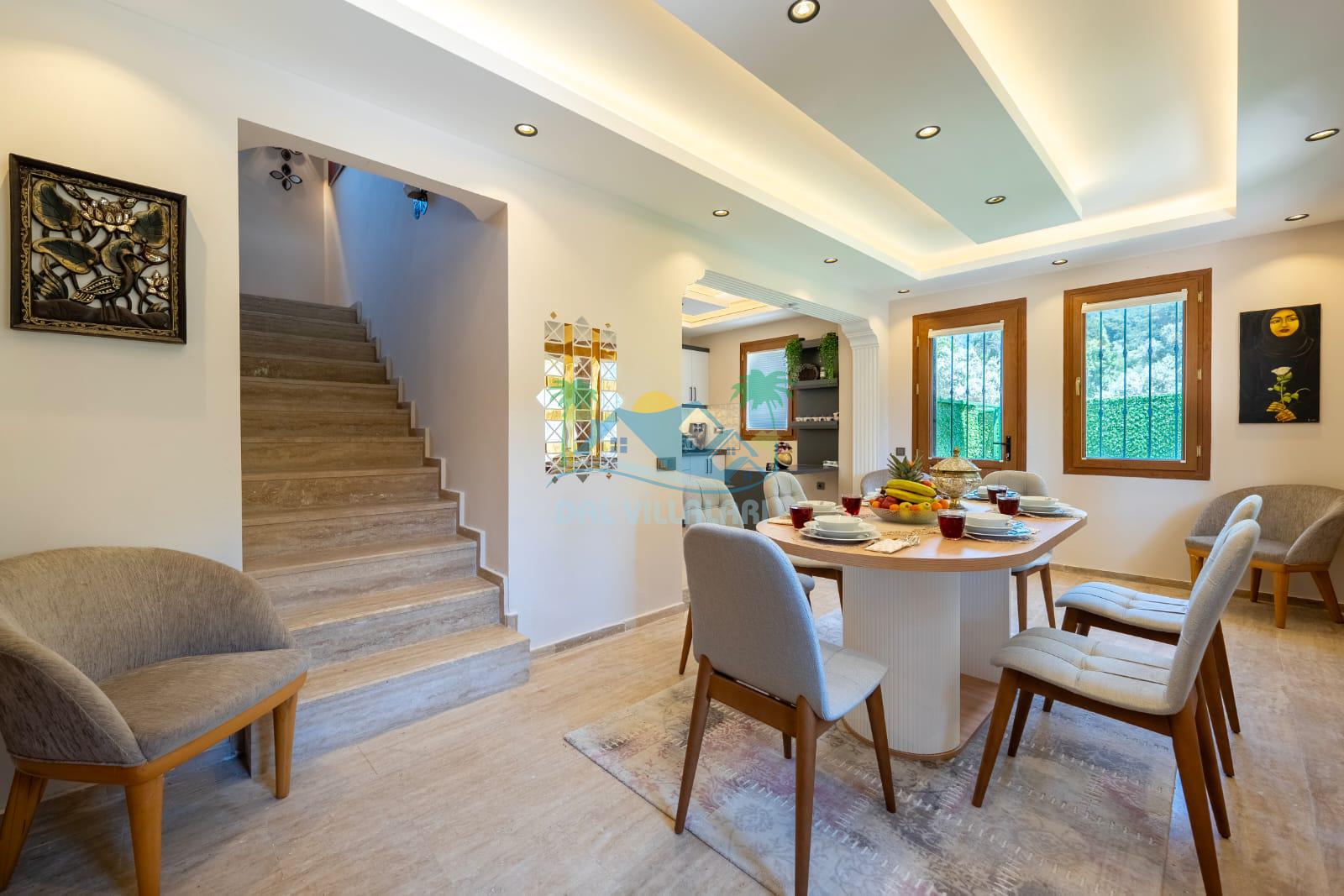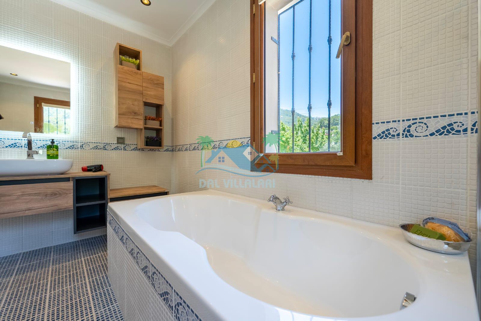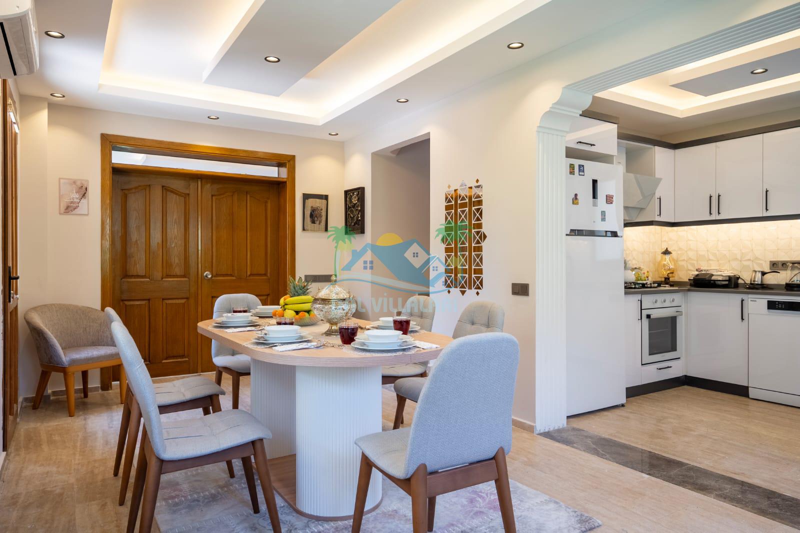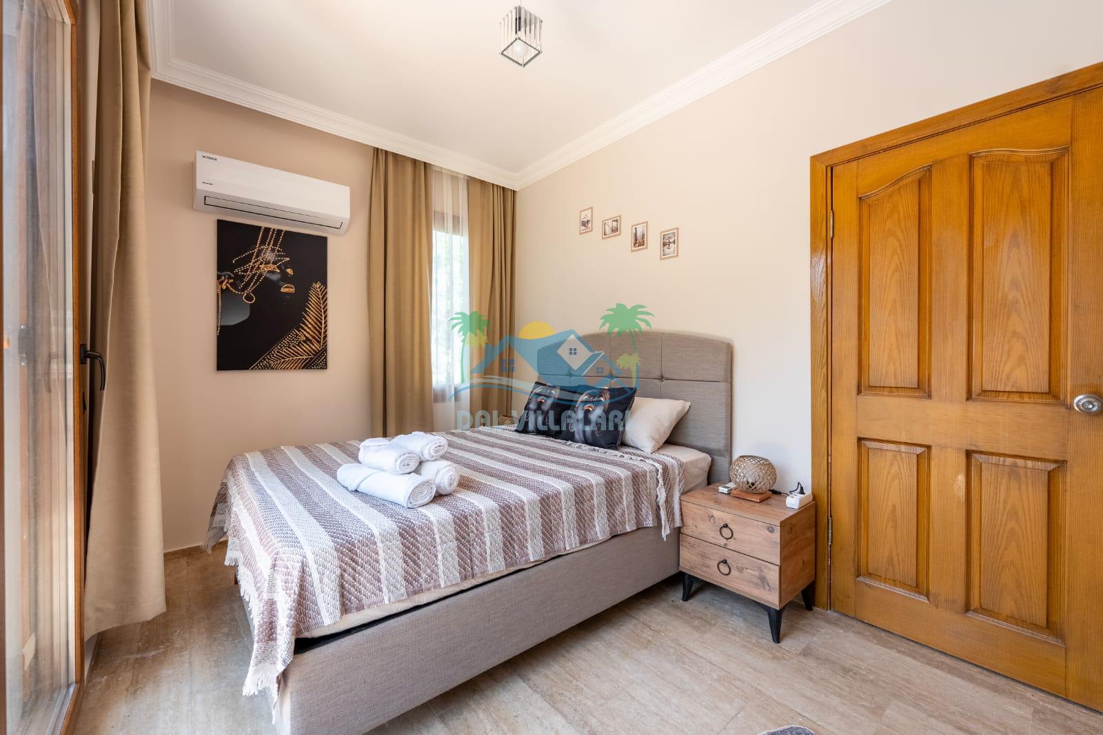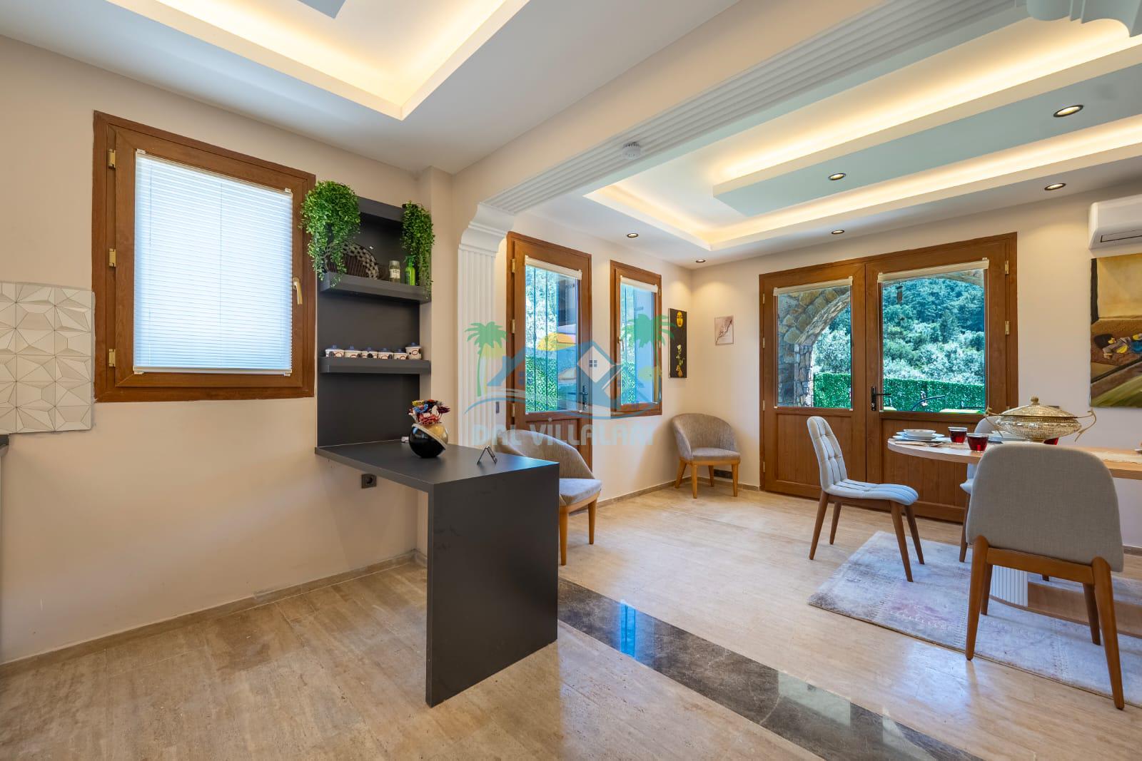 Geniş havuz alanı, konforlu oturma grubu ve özel barbekü alanına sahip olup iç mekanı da oldukça keyifli ve konforlu detaylar barındırmaktadır; oturma odası, donanımlı mutfağı; bir yatak odasında çift kişilik yatak; ikinci yatak odasında çift kişilik yatak;üçüncü yatak odasında ise bir adet iki kişilik ranza bulunan villa doğada güvenle ve huzurla planladığınız Fethiye tatiline ev sahipliği yapacaktır. Konforunuz döz önünde bulundurularak dizayn edilmiş bahçe alanı geniş havuz terasında sahiptir ve havuz bahçe alanında doğanın ve gökyüzünün tadını çıkarabileceğiniz bir havuz alanı bulunmaktadır. Geniş bahçe alanında keyifli zaman geçireceğiniz villa da havuz keyfinize doyamayacağız anlar geçireceksiniz.