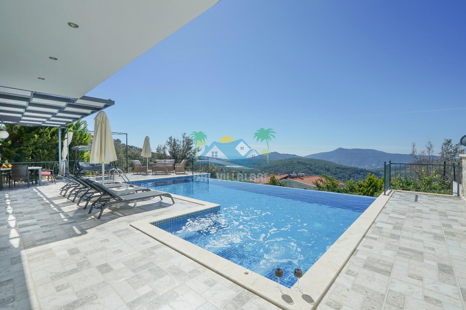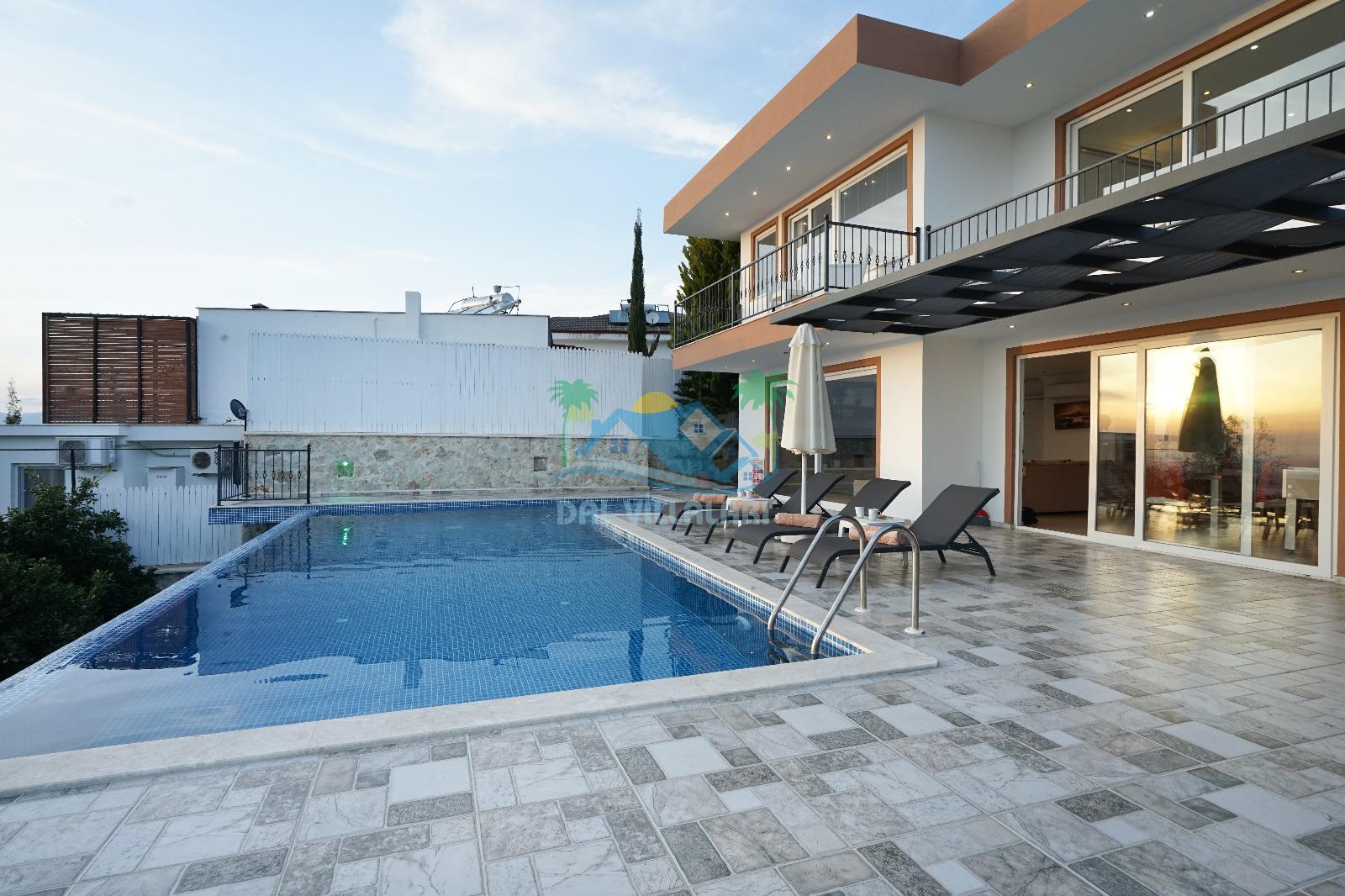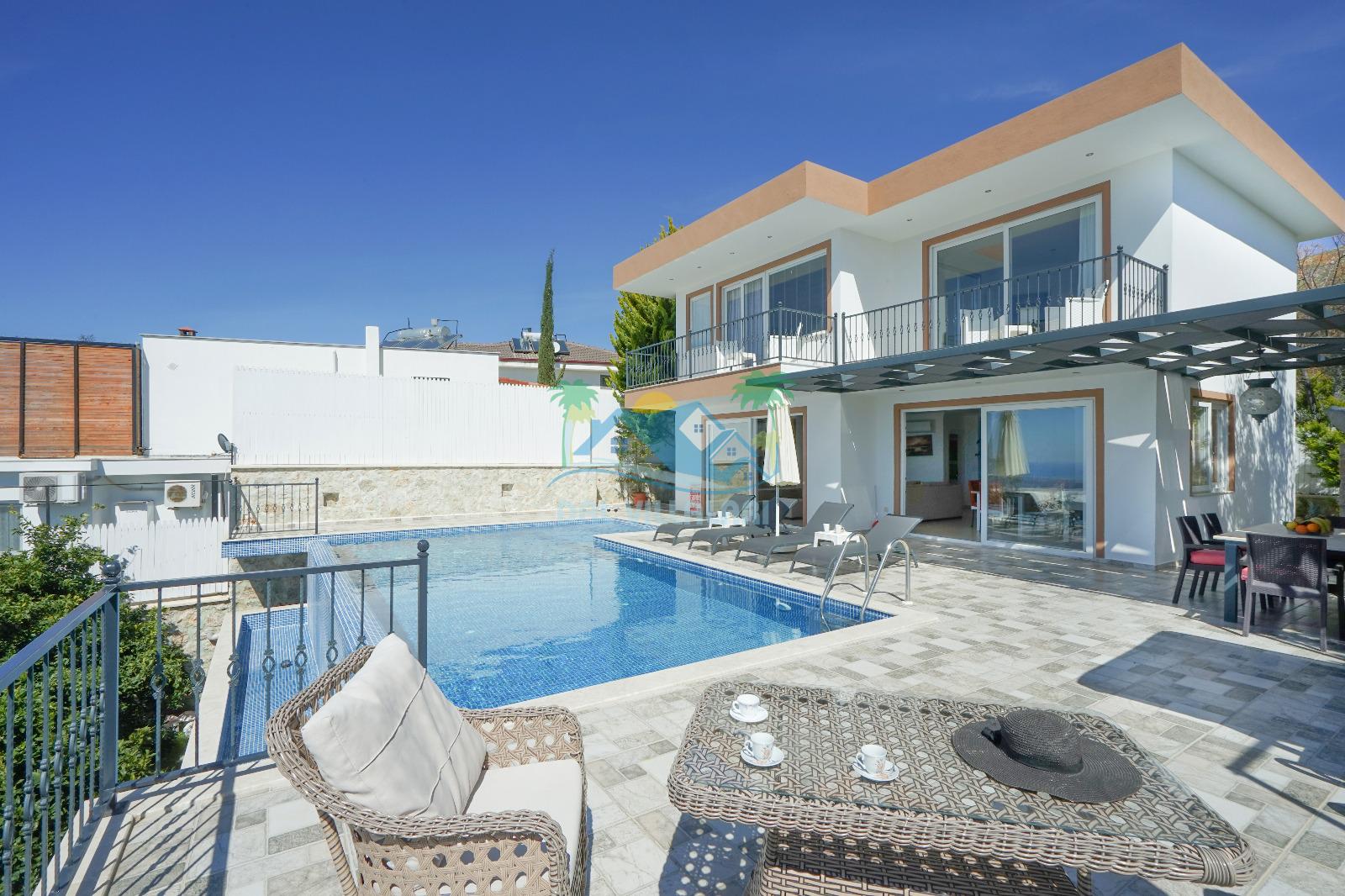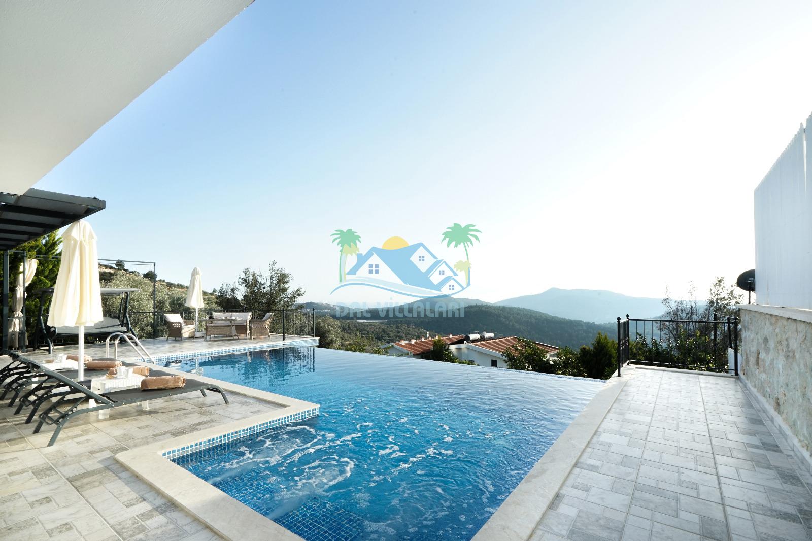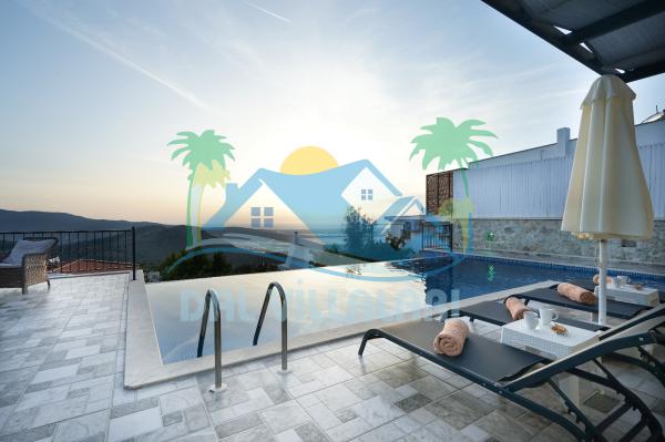 Villamız, Kalkan Üzümlü bölgesinde yer almaktadır. Eşsiz doğa manzarası ile iç içe tasarlanmış villamız 2 yatak odalı, 5 kişi kapasiteye sahiptir. son derece lüks eşyalar ile dizayn edilmiş villamız korunaklı ve muhafazakardır. Balayı çiftleri ve çekirdek ailelerin vazgeçilmezi olan bu villamız gün batımı manzarası ile siz değerli müşterilerimizi beklemektedir. unutulmaz tatil anıları biriktirmek istiyorsanız . Rezervasyon için geç kalmayın.